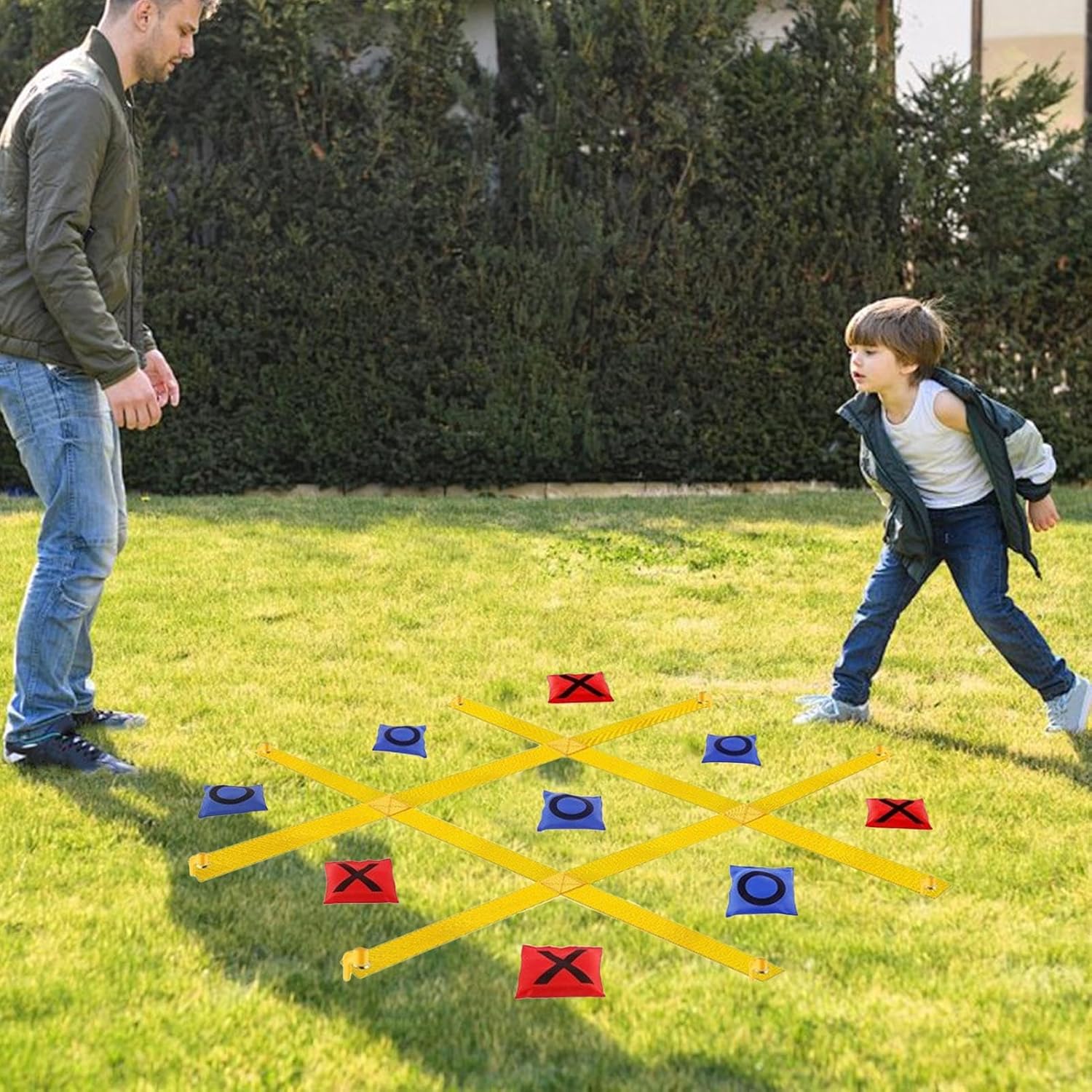 Gioco pronto per la squadra: incoraggia il lavoro di squadra e la coordinazione occhio-mano con questo gioco di sacco da lancio per campeggi o spiagge. Ideale per attività di gruppo, grazie al design pieghevole e facile da trasportare. Gioco strategico per famiglie: combina una tavola gigante colorata e un allenamento tattico di lancio, perfetto per socializzare con gli amici all'aperto Posizione flessibile: il design innovativo di fissaggio con occhiello in acciaio inox permette un rapido posizionamento su prati, terreni sabbiosi o superfici umide. Massima flessibilità con il minimo sforzo. Scenari di utilizzo flessibili: affidabile in diverse condizioni atmosferiche con robusto tessuto solare adatto per attività con amici o feste di famiglia in giardino o in giardino Soluzione di trasporto ottimizzata: la borsa da trasporto integrata con coulisse garantisce una facile mobilità per il kit Bean-Bag-Toss. Perfetto come gioco da giardino versatile per attività in famiglia o eventi per adulti all'aperto con divertimento duraturo.