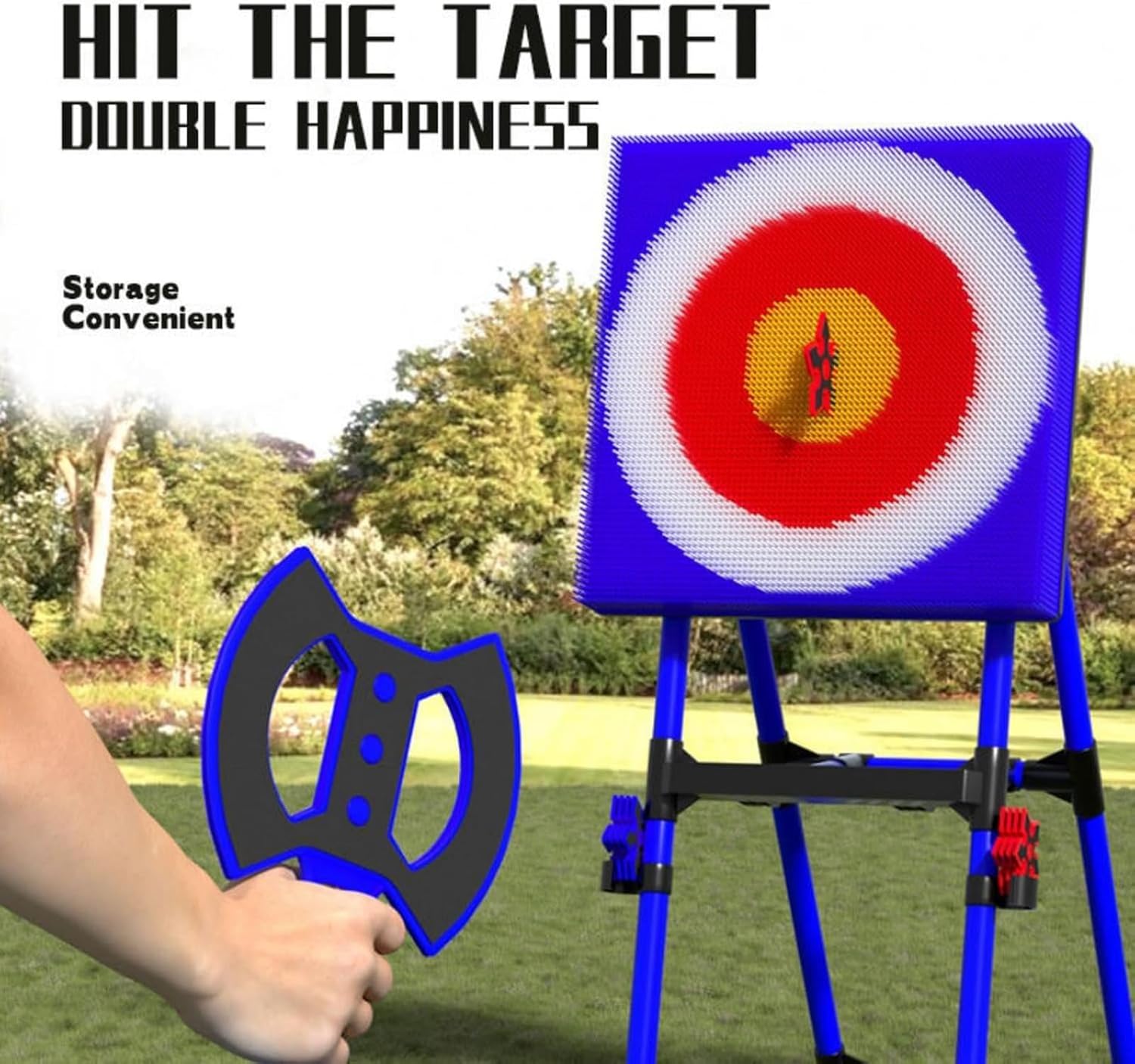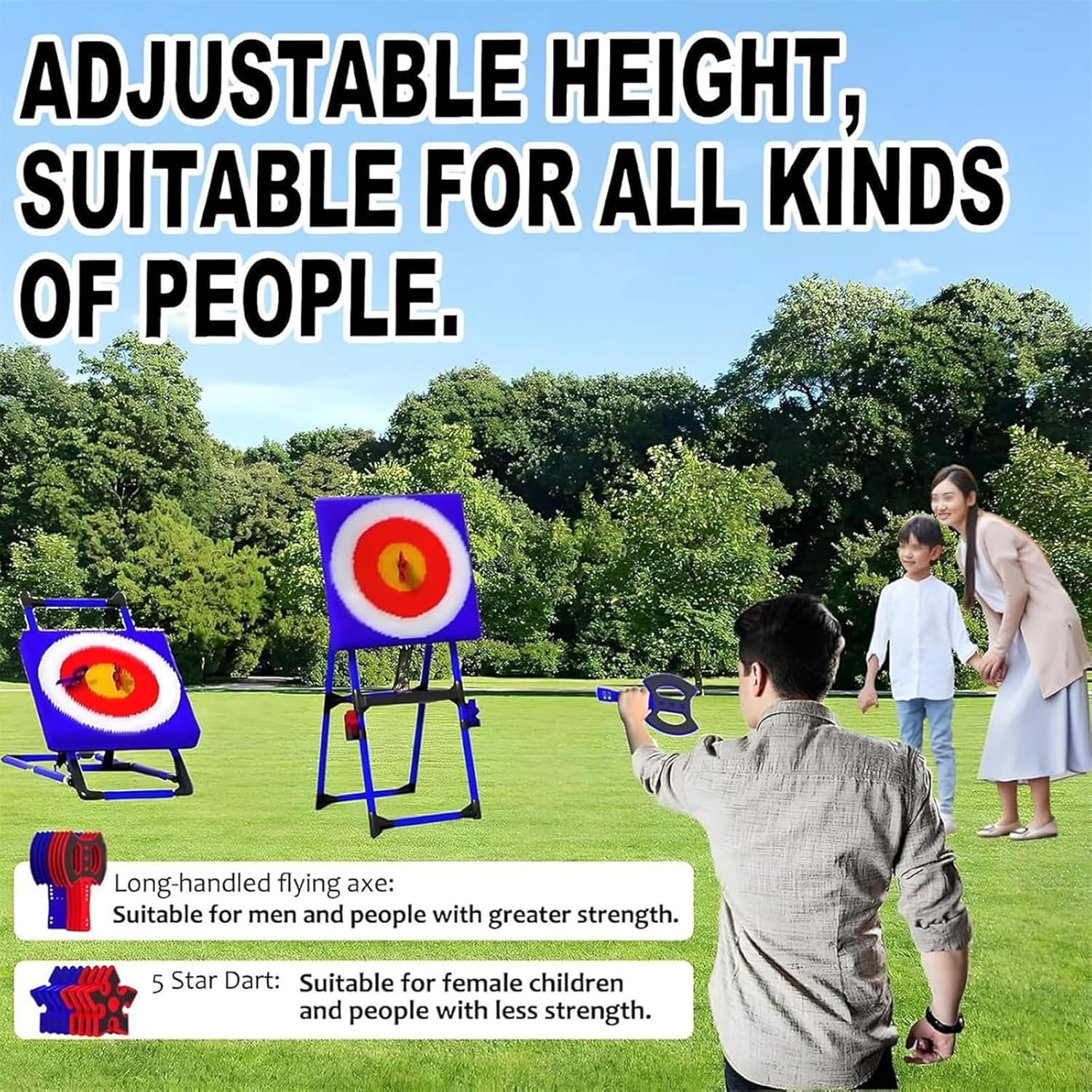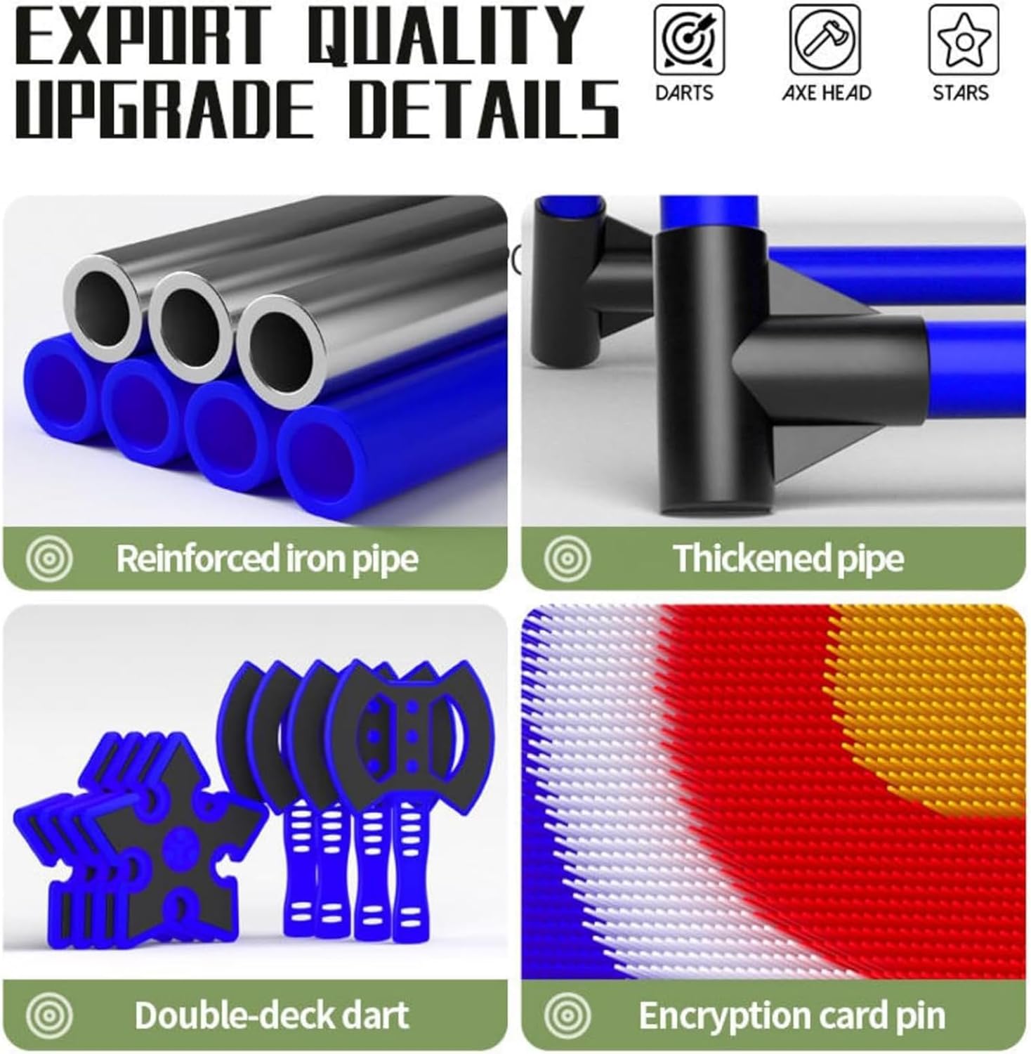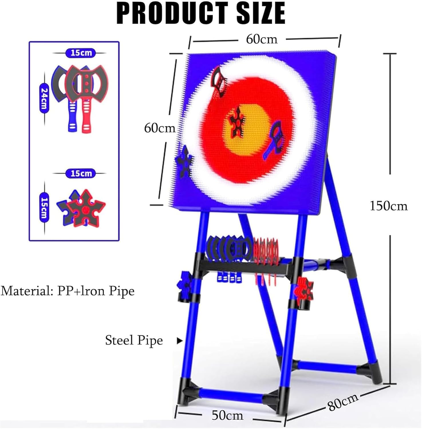 【Fantastico gioco all'aperto】Questo gioco di lancio di asce in plastica ha una doppia funzione, permettendo ai giocatori di divertirsi contemporaneamente con il lancio di asce e con il gioco delle freccette da giardino. Il suo design convertibile offre ore di divertimento e intrattenimento a familiari e amici. 【Massimo sollievo dallo stress e comfort】Immergiti nell'emozionante senso di realizzazione colpendo i tuoi bersagli con il nostro bersaglio per freccette. Il nostro design garantisce un'esperienza di gioco fluida e piacevole, offrendo una sensazione distinta e appagante a ogni lancio. È la soluzione perfetta per alleviare lo stress e divertirsi allo stesso tempo. 【Eccezionale durata e resistenza alle intemperie】 Costruito per resistere alla prova del tempo, con materiali robusti e di alta qualità. I tubi in ferro spesso non sono solo impermeabili, ma anche resistenti ai raggi solari. Con l'ulteriore vantaggio dei doppi scomparti, puoi goderti un intrattenimento senza fine, sia che tu stia giocando al chiuso che all'aperto. 【Stoccaggio pratico e intelligente】 Progettato per un trasporto senza problemi e un utilizzo efficiente dello spazio, questo set di freccette presenta un design pieghevole. Nonostante la sua comoda piegatura, non sacrifica la qualità dei pannelli spessi. Dopo una partita, riporlo è un gioco da ragazzi, il che lo rende una scelta eccellente per riunioni improvvisate o eventi ben organizzati.