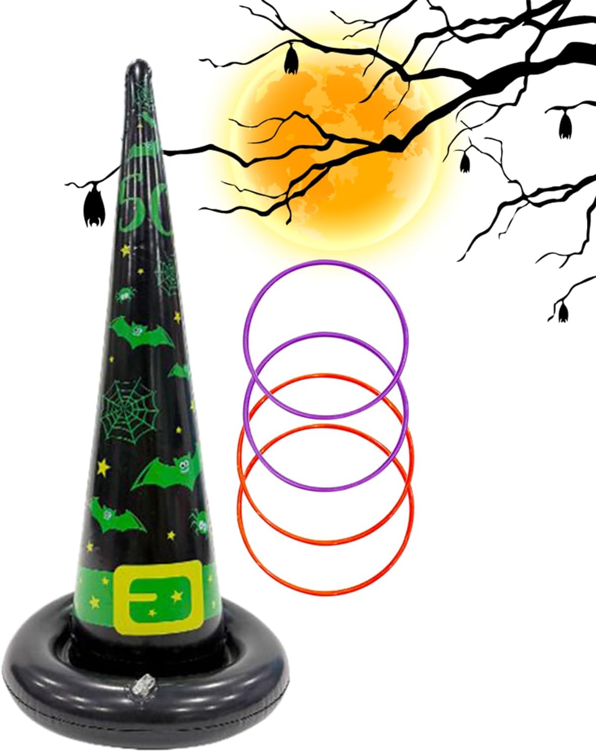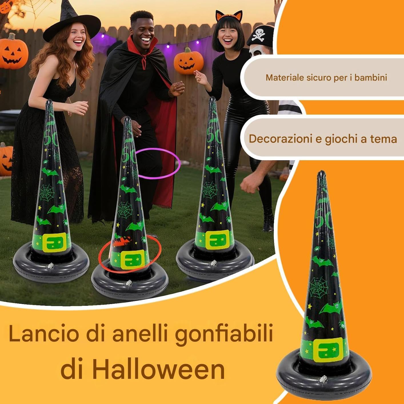 Attività Interattiva: Questo gioco del lancio degli anelli di Halloween incoraggia l'interazione genitore-figlio con un'attività divertente e facile da giocare che migliora la coordinazione occhio-mano. Lo rende ideale per le famiglie per godersi durante riunioni festive o momenti di gioco informali a casa. Adatto per Halloween, stimola la comunicazione e il divertimento in famiglia, offrendo un'esperienza e coinvolgente per tutti. Intrattenimento a Tema Spaventoso: Questo gioco di lancio Halloween offre un design a tema con stampe di fantasmi e zucche, creando un'attività coinvolgente che migliora l'ambientazione spaventosa ma alle feste di Halloween. Adatto per ospiti di tutte le età, garantisce divertimento e interazione, arricchendo l'atmosfera generale della festa con un tocco di mistero e allegria. Compatto e Portatile: Il gioco del lancio del cappello da è progettato per massimizzare la portabilità e l'efficienza spaziale. Grazie alle funzioni di gonfiaggio e sgonfiaggio rapidi, si piega in modo ordinato e compatto, riducendo al minimo l'ingombro durante il riposo. Questo design pratico lo rende facile da trasportare senza sforzo per eventi all'aperto come picnic, l o raduni familiari, garantendo divertimento immediato ovunque sia necessario. La sua natura portatile e compat Accessorio Ideale per Eventi: Questo gioco di lancio per Halloween offre un intrattenimento piacevole che accresce lo spirito festivo. Eccellente come per party o idea regalo, garantisce un'esperienza per i partecipanti a eventi di Halloween, feste e altre attività stagionali. Design Sicuro per il Gioco: Il gioco del cerchio di Halloween utilizza materiale gonfiabile sicuro e PVC ecologico, creando una struttura morbida e leggera senza punti appuntiti, offrendo un'esperienza di gioco coinvolgente e piacevole per i bambini durante le festività.