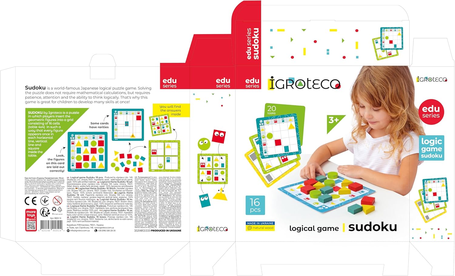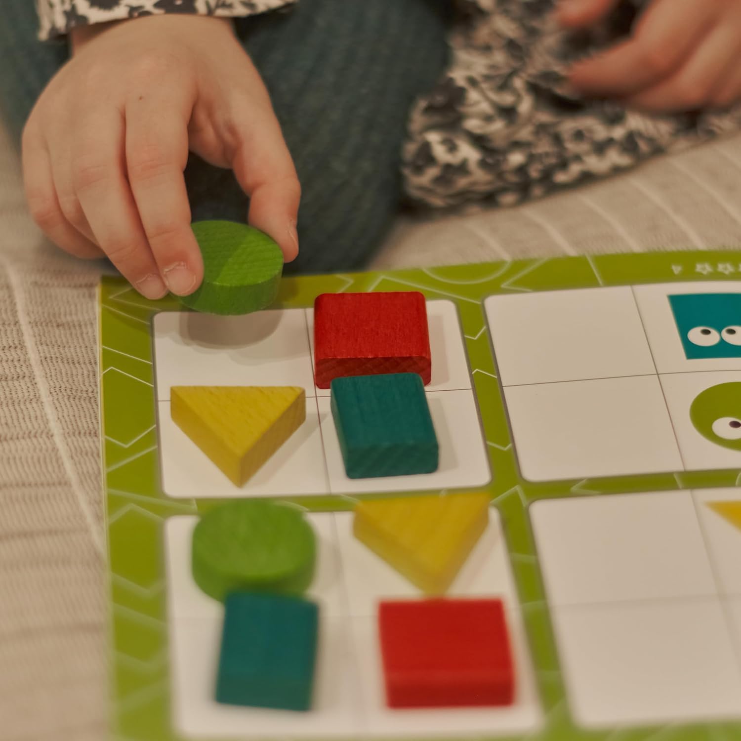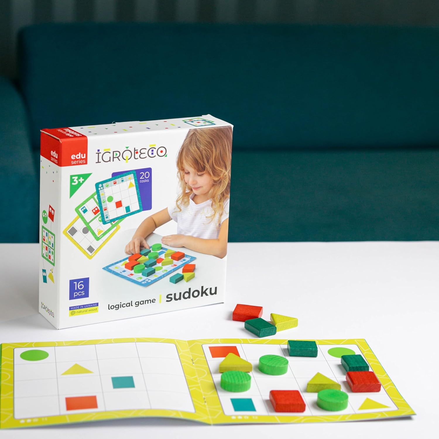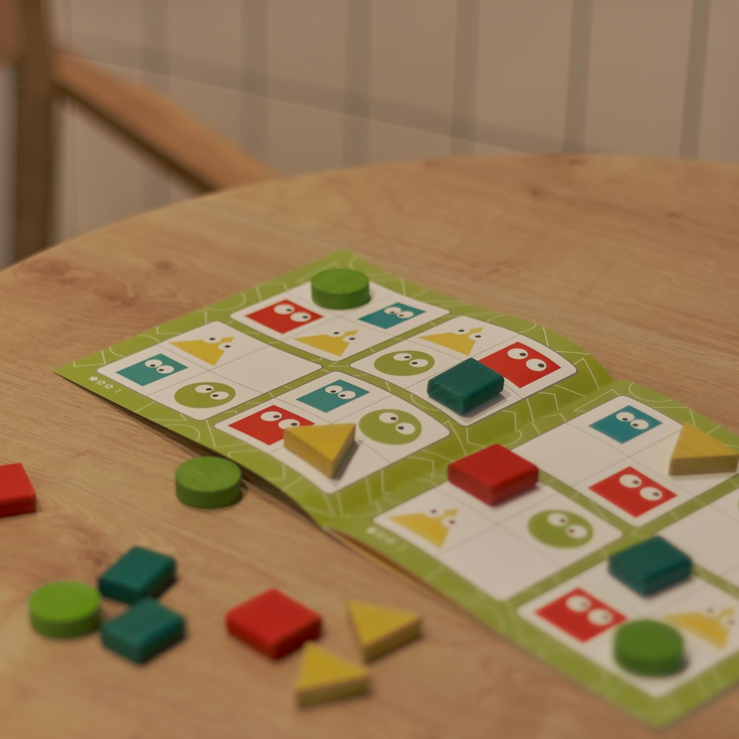 Sudoku geometrico per bambini – Versione Sudoku semplificata con forme colorate anziché numeri. Stimola la logica e la concentrazione: allena il pensiero logico, l'attenzione, la resistenza e le capacità di problem solving. 20 compiti con diversi livelli di difficoltà: per un gioco personalizzato a seconda del livello di sviluppo. Personaggi in legno colorato: 16 pezzi in legno massello, 10 mm di spessore, rivestiti con colori sicuri a base d'acqua. Supporta le capacità motorie fini e la percezione sensoriale: i bambini imparano movimenti precisi della mano e riconoscimento della forma. Versatile: per casa, asilo, scuola elementare o centri inclusi. Materiali naturali: legno durevole di alta qualità per giocattoli sostenibili. Regalo perfetto: gioco educativo per bambini dai 3 anni in su, ideale per promuovere la creatività e le abilità cognitive.