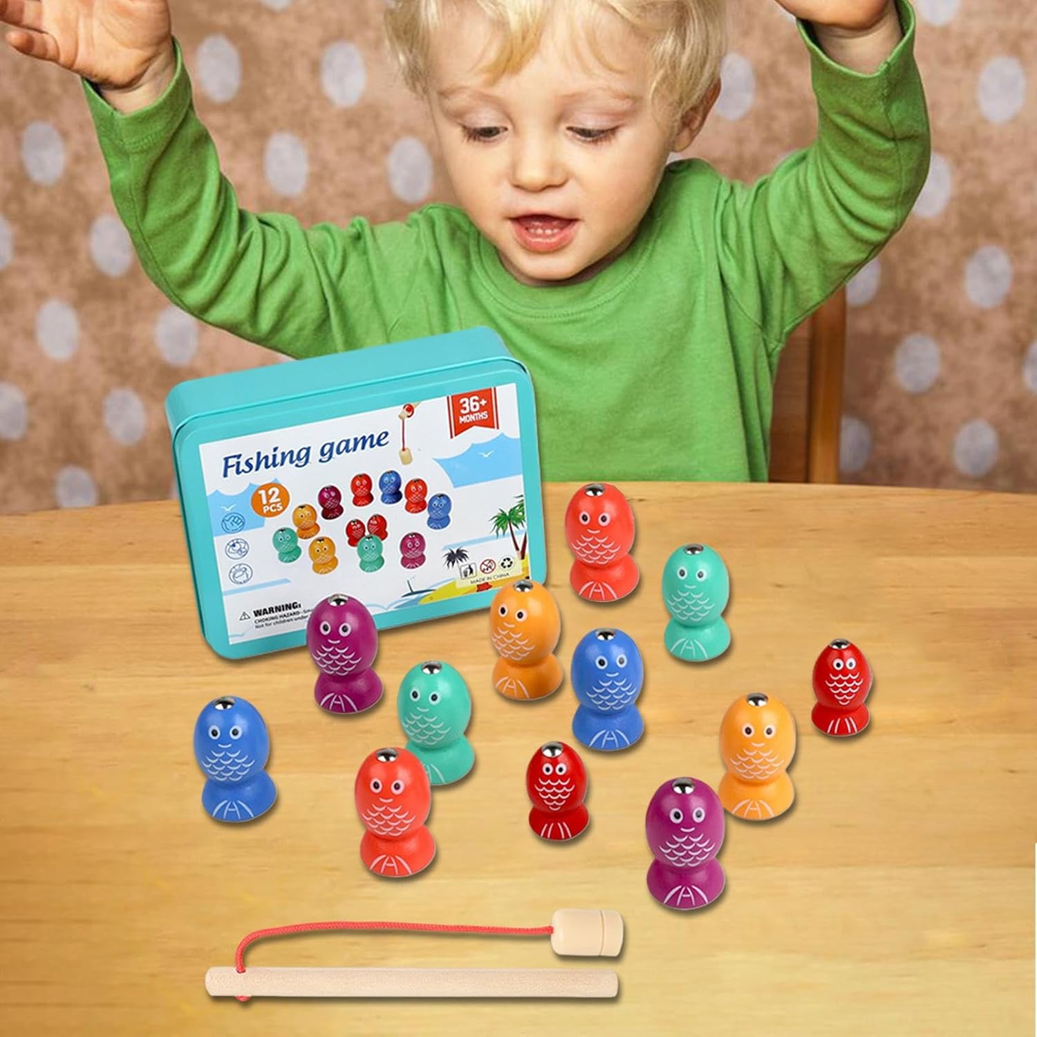 Esperienza di gruppo interattiva: incoraggia il gioco insieme alle feste di famiglia o ai compleanni dei bambini. Per ragazze e dai 2 anni in su, stimolano lo sviluppo grazie alle sfide adeguate all'età nel gioco. Promozione dei giochi di gruppo: il gioco di pesca con magneti motiva il gioco collaborativo, migliora la comunicazione di gruppo e offre attività educative con un elevato fattore di divertimento. Giocattolo sensoriale: questa pesca magnetica favorisce l'esplorazione attiva e l'apprendimento giocoso, supporta lo sviluppo della percezione sensoriale e migliora la capacità di concentrazione attraverso un gioco coinvolgente. Design stabile: combina legno robusto e colore sicuro per un divertimento duraturo. Garantisce un ambiente di gioco protetto durante il gioco di pesca magnetica per i bambini piccoli. Migliora le capacità motorie: aumenta le capacità motorie e allena la coordinazione occhio-mano con un divertente gioco di pesca magnetico che consente l'apprendimento dello sviluppo attraverso il gioco interattivo
