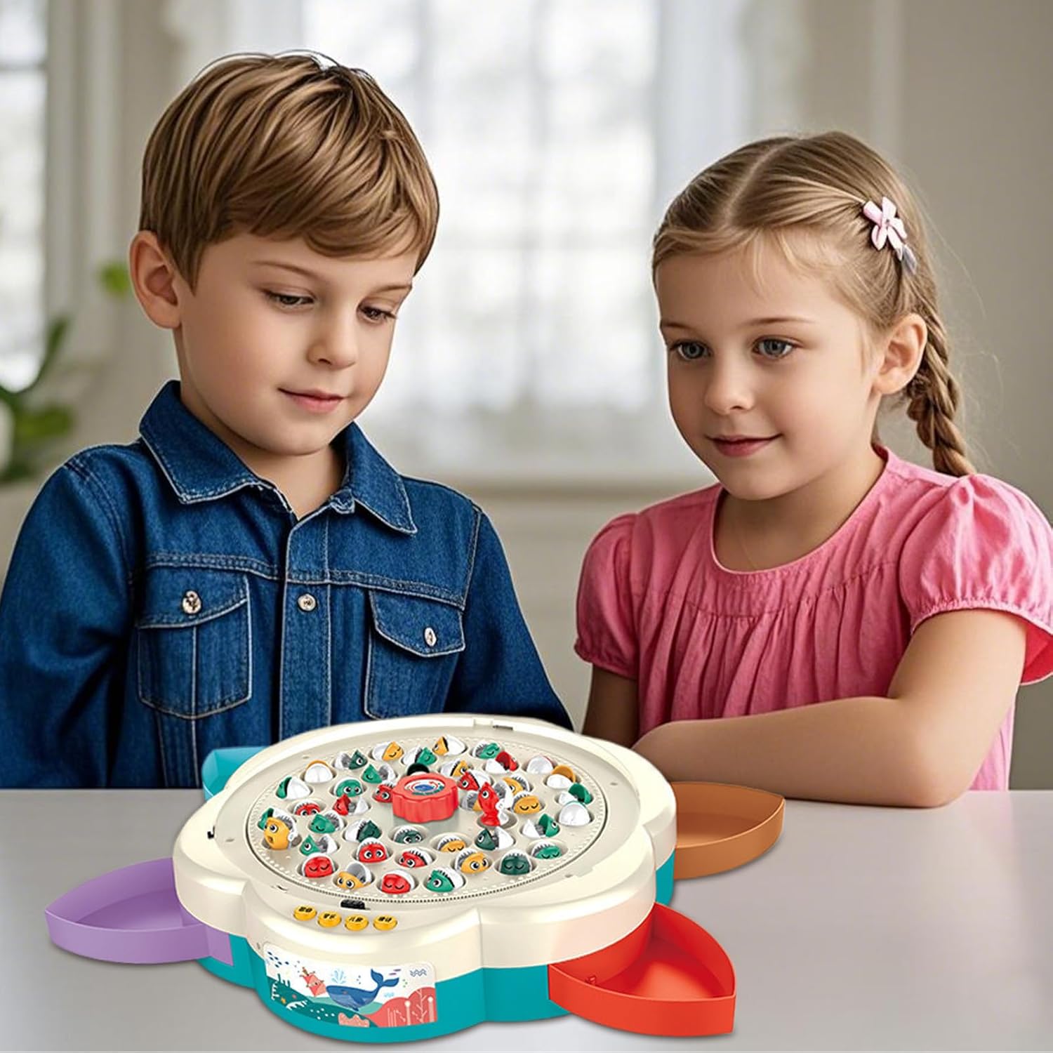 Integrazione del gioco di pesca: combina il divertimento della pesca magnetica con attività progettate per migliorare la coordinazione occhio-mano, coltivare la formazione sistematica dell'abitudine e migliorare il ragionamento logico nei giovani studenti Gioco uditivo coinvolgente: il gioco di pesca magnetico promuove l'educazione precoce attraverso percorsi di ritmo allegro e stimolazione dell'udito, migliorando il legame genitore-figlio, coinvolgendo le giovani menti nello sviluppo delle abilità Ambiente di gioco soddisfacente: unisce autentici effetti sonori con luci soffuse per emulare il flusso d'acqua naturale, promuovere l'eccitazione dell'attenzione a lungo termine e offrire una scena educativa accattivante incoraggia l'esplorazione pratica durante i giochi di pesci magnetici Gioco di pesca amichevole da collezione: questo gioco di pesca magnetico promuove momenti interattivi genitore-figlio, supporta attività di legame emotivo attraverso la raccolta familiare di idoneità e presenta sfide di pesca guidate, tutte progettate per un'installazione facile e senza attrezzi Sicurezza arrotondata dei bordi: il gioco di pesca magnetico con un design intelligente e diviso garantisce che i giocattoli siano ordinatamente ordinati e facilmente accessibili, migliorando l'efficienza del tempo di gioco promuovendo le capacità organizzative dei bambini
