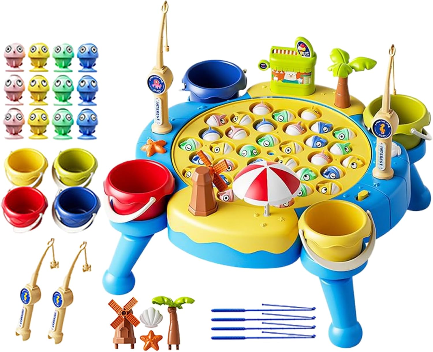 Piacere di pesca magnetica: dotato di un meccanismo magnetico e una piastra girevole a 360°, questo gioco simula azioni di pesca realistiche, promuove l'interesse per l'esplorazione della natura e migliora giocosamente la coordinazione occhio-mano per un'esperienza di gioco coinvolgente Sistema di mantenimento dell'ordine: supporta abitudini di ordine sostenibili con un secchio di conservazione che mantiene i componenti magnetici della pesca al sicuro e rende la pulizia un'abitudine intuitiva Altezza regolabile: dotato di gambe regolabili in altezza per un uso versatile, garantisce materiali sicuri inodore e bordi lisci per ottimizzare lo spazio, consentendo ai genitori un'esperienza di gioco tranquilla Utilizzo senza problemi: la promozione delle competenze matematiche di base attraverso giochi di conteggio esigenti, caratteristiche operative efficienti dal punto di vista energetico e costruzione robusta garantiscono un divertimento duraturo nel gioco e nell'apprendimento Strumento di apprendimento giocoso: incoraggia l'apprendimento con giochi di pesca magnetici per l'invenzione della storia, il divertimento di selezione dei colori e le competizioni di conteggio per costruire forti abilità sociali attraverso esperienze condivise