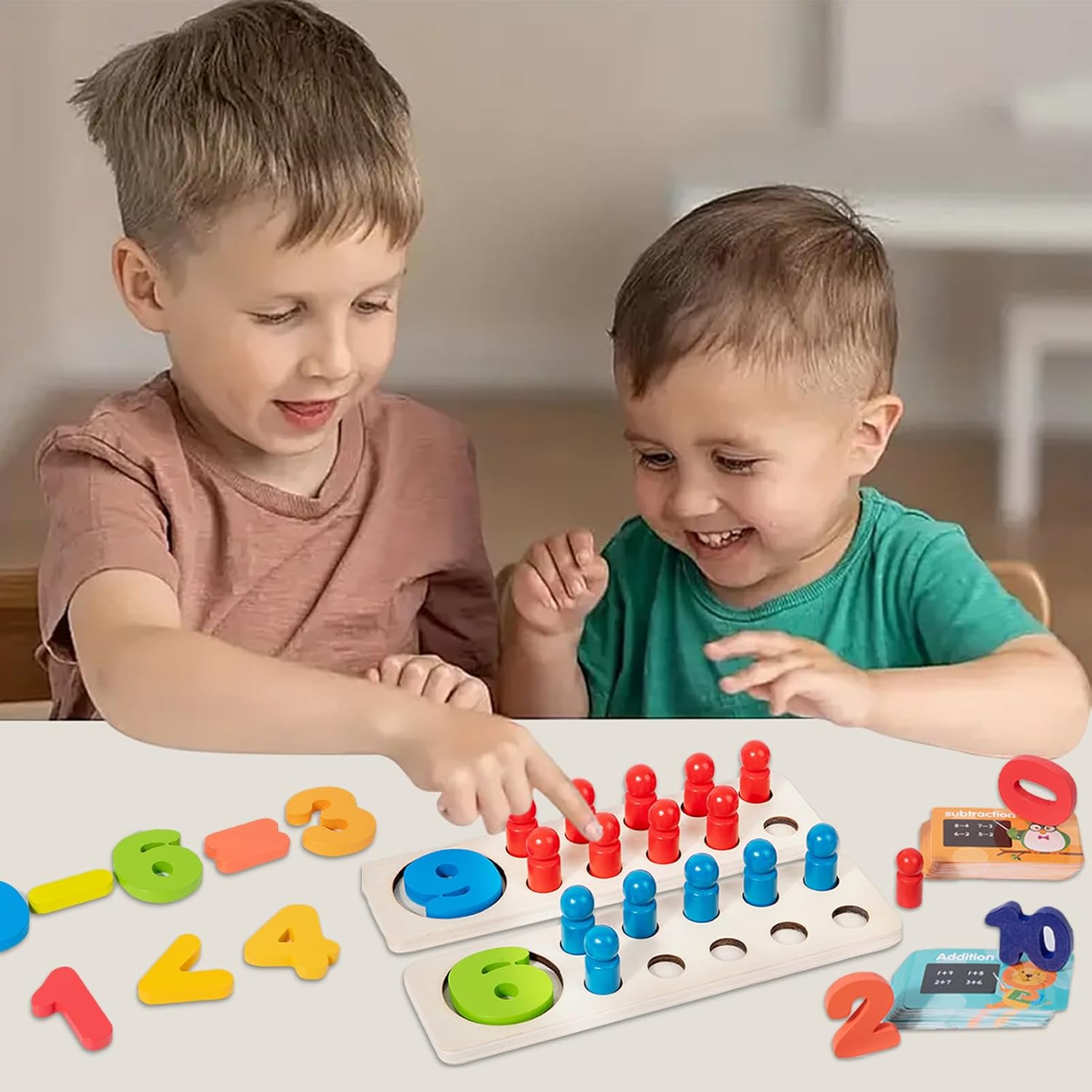 Coinvolgente set di giochi di matematica in legno: progettato per i bambini dai 5 ai 7 anni, questo colorato set in legno insegna addizioni e sottrazioni attraverso il gioco interattivo. Ogni pezzo incoraggia l'apprendimento pratico, aiutando i bambini ad apprendere i primi concetti di matematica in modo divertente e tattile. Divertimento educativo e di sviluppo: combina giocattoli di conteggio e sfide aritmetiche che promuovono il pensiero logico, la coordinazione occhio-mano e il riconoscimento dei numeri: ideale per la scuola materna, l'istruzione domiciliare o l'arricchimento della classe. Sicuro, robusto e adatto ai bambini: realizzato in legno liscio con bordi arrotondati, questo giocattolo matematico è sicuro per le mani dei più piccoli. Costruito per resistere all'uso ripetuto, è perfetto per l'apprendimento quotidiano e per giocare con la famiglia o i colleghi. Perfetto per il gioco di gruppo o da solo: durante i momenti tranquilli, le feste di compleanno o le serate di giochi in famiglia, i bambini possono divertirsi imparando la matematica in modo indipendente o collaborativo, migliorando le abilità sociali e la sicurezza con ogni numero che risolvono. Growing Minds: un regalo premuroso per compleanni, vacanze o traguardi educativi. Questo set di attività matematiche rende l'apprendimento precoce emozionante e stressante, supportando la crescita accademica a casa o a scuola.