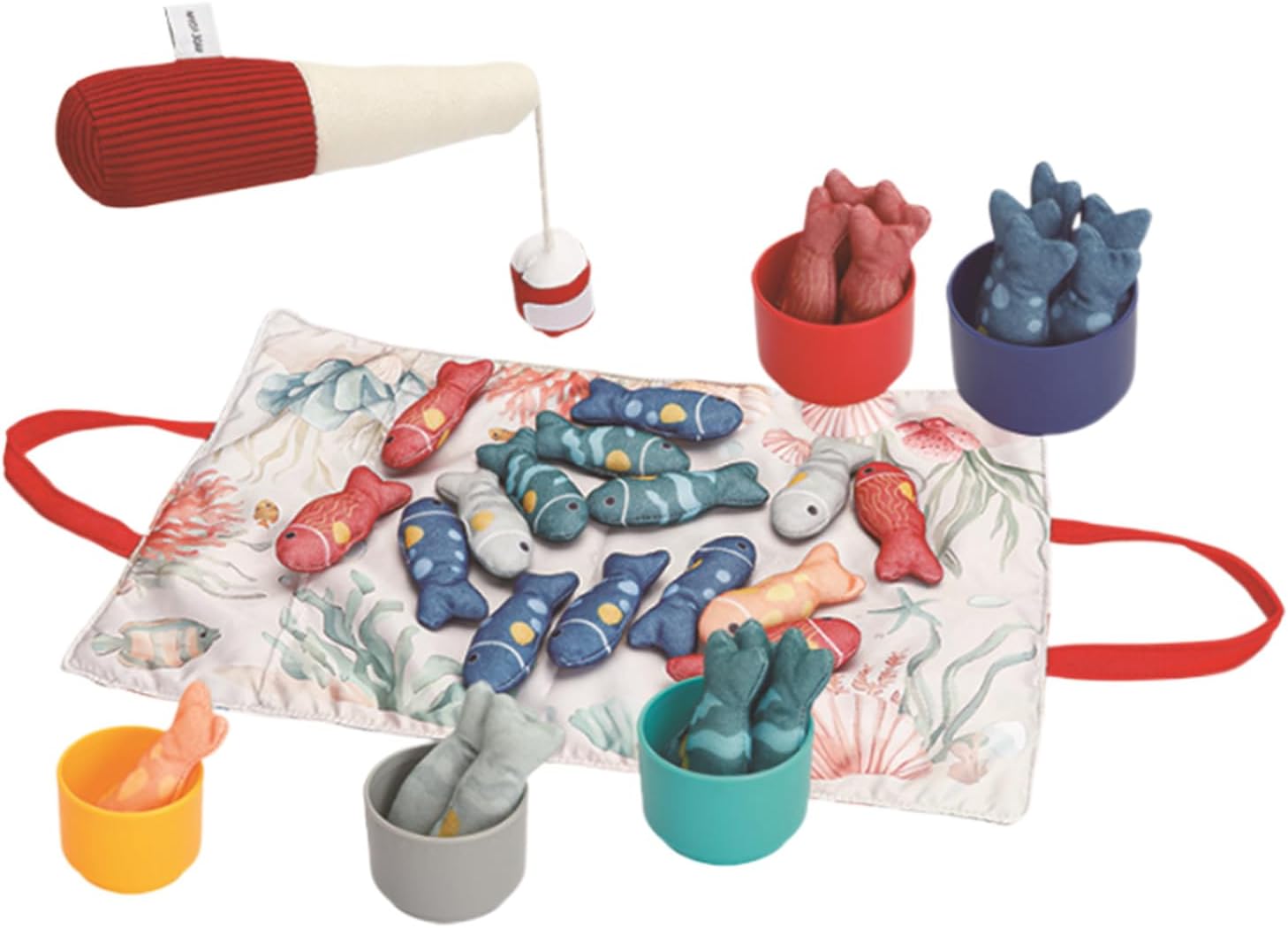 Imparare la biologia marina: questo gioco di pesca trasmette contenuti educativi sulla vita marina, rafforza il pensiero logico e promuove i giochi di ruolo, con angoli arrotondati sicuri e colori per alimenti per un gioco di scoperta senza preoccupazioni Compatto e leggero: tappetino pieghevole in tessuto con paesaggio completo per un facile stoccaggio e un utilizzo flessibile su tavoli o pavimento durante le attività di pesca Impegno sicuro dei tasti: i colori stimolanti stimolano il senso visivo dei bambini quando i tappeti da gioco sono compatibili, con superfici in rilievo per esplorazione tattile in tessuto morbido che dà priorità alla protezione della pelle sensibile del bambino Promozione delle capacità motorie: con innovativi adesivi tattili e livelli di difficoltà progressivi, questo gioco di pesca supporta lo sviluppo della coordinazione occhio-mano. Promuove giocosamente le capacità motorie e crea divertenti esperienze condivise per genitori e figli. Piacere di pesca magnetica: sviluppa le capacità motorie grazie alla cattura precisa con la pesca magnetica, promuove e stimola la pazienza durante il gioco interattivo con i pesci adesivi stimolanti