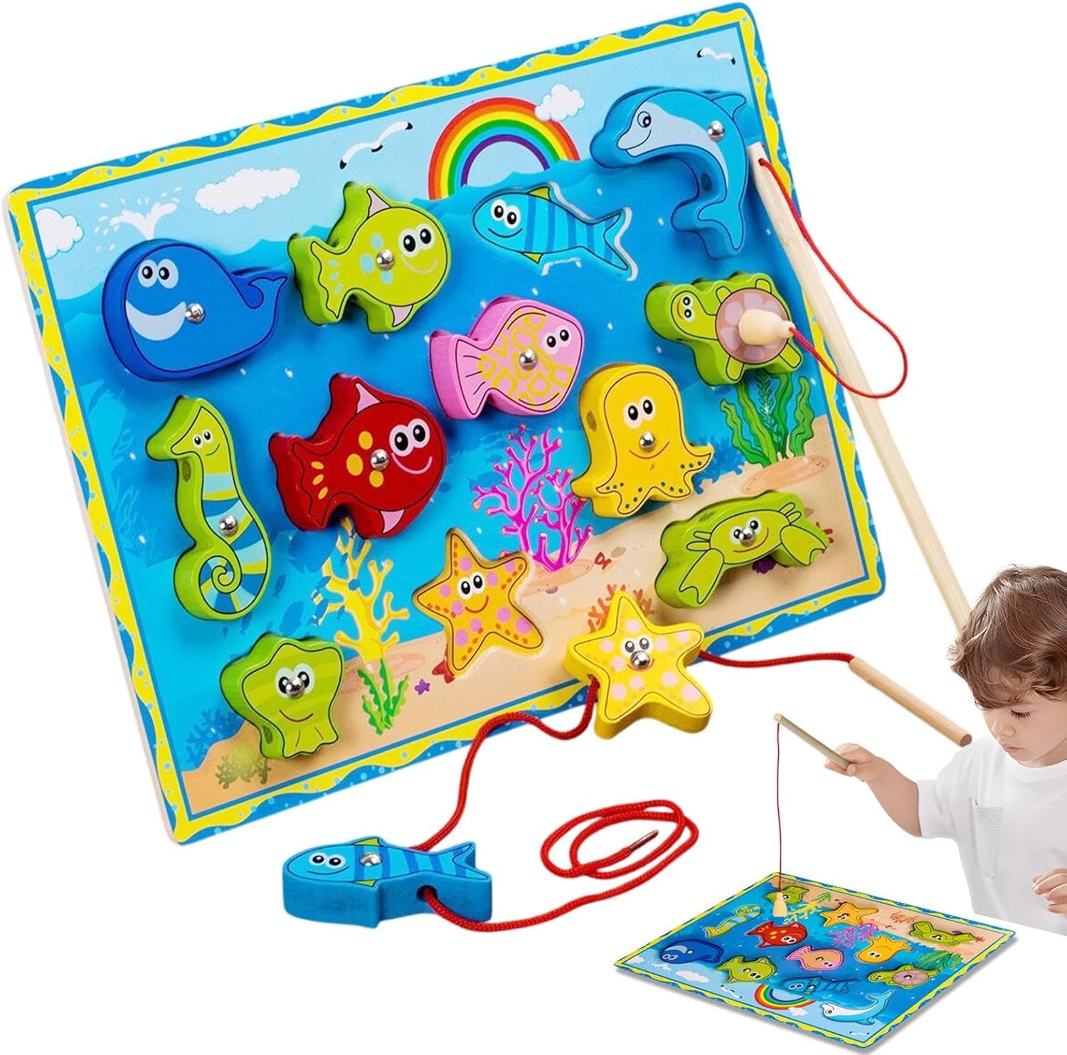 Usi versatili: con questo gioco di pesca magnetico, i bambini possono catturare pesci con una canna, risolvere enigmi abbinando le parti alle slot e ai blocchi di archi corrispondenti attraverso i fori per promuovere la coordinazione occhio-mano e il pensiero creativo Rafforza il movimento fine: il nostro gioco di pesca magnetico è progettato per sviluppare il pensiero critico e le abilità di tuo figlio. Li aiuta a capire le relazioni causa-effetto e promuove il gioco fantasioso, la creatività e la comunicazione per promuovere Incoraggia il pensiero logico: coinvolgi le giovani menti con sfide cognitive come l'identificazione di forme, colori e animali per migliorare le capacità di problem solving e stimola la curiosità e l'esplorazione Proteggi il bambino: il nostro gioco di pesca magnetico è costruito con eccellenti materiali in legno e con superfici lisce e garantisce la massima sicurezza e durata per un età compresa tra 1 e 3 anni. La componente magnetica è solida Regalo meraviglioso: il gioco di pesca magnetico è il regalo perfetto per promuovere le associazioni familiari durante i compleanni e le vacanze. Fornisce cura e benedizione, offrendo allo stesso tempo comodità e divertimento per l'uso quotidiano, adatto per amici o familiari