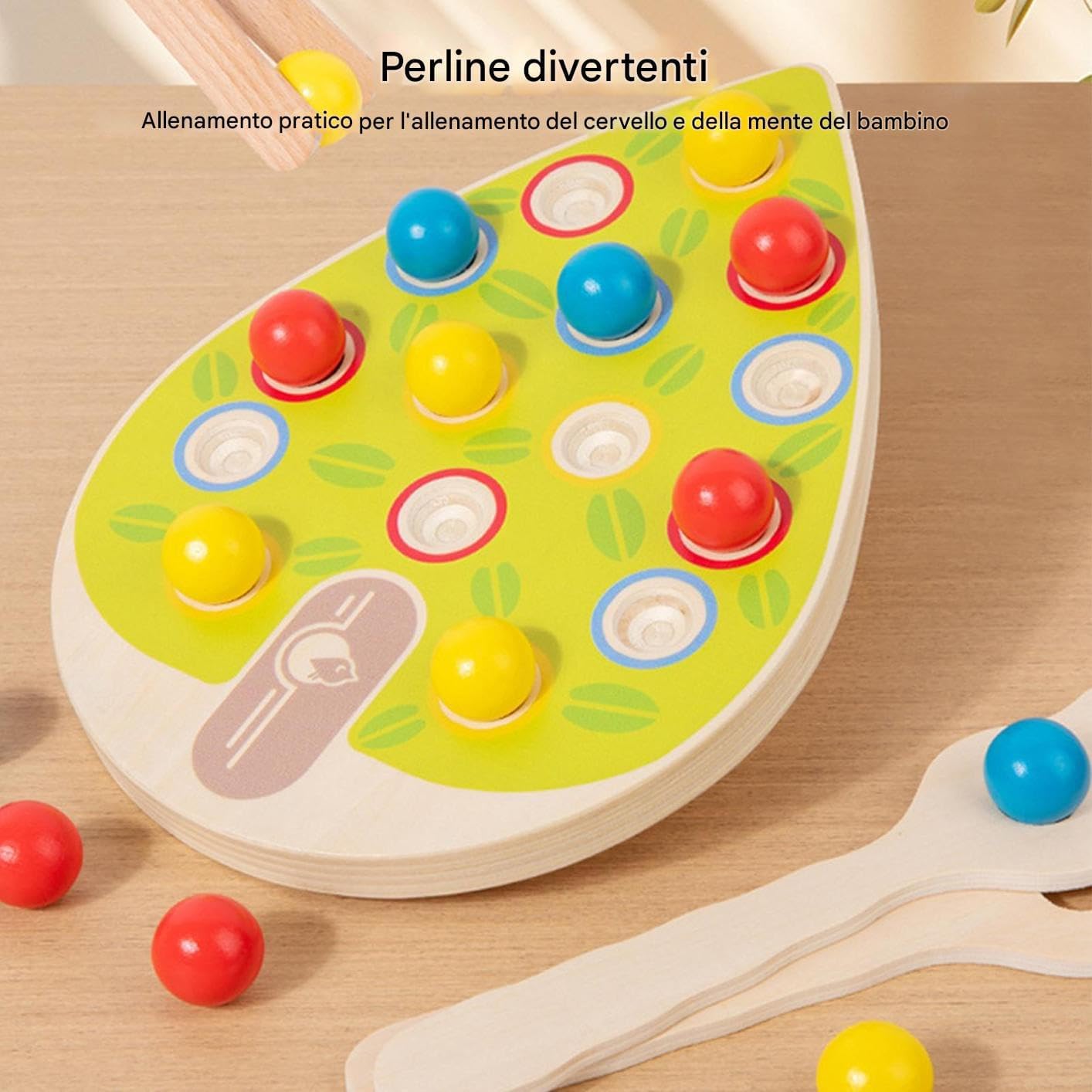 Esperienza di Gioco Educativa: Include due tipi di pinze per sviluppare coordinazione cognitivo-fisica, incrementare la destrezza manuale e rafforzare le abilità motorie fini tramite attività dinamiche e interattive Sviluppo interattivo: Unisce divertimento ed educazione, potenzia la coordinazione occhio-mano e favorisce il evolutivo con attività di gioco studiate per stimolare curiosità e miglioramento continuo Gioco Evolutivo: L'ispirato design ad albero di questo gioco di perle con pannello promuove la coordinazione mano-mente incoraggiando curiosità e scoperta, favorendo il pensiero critico e lo sviluppo intellettivo attraverso modelli di gioco coinvolgenti. Pattern vivaci: Combinazioni cromatiche intense favoriscono lo sviluppo della vista con un approccio innovativo alle capacità di identificazione dei colori per piccoli apprendisti Gioco Affidabile: Progettato in legno naturale finemente levigato, offre interazione sicura per i piccoli e ore di divertimento coinvolgente e affidabile con le perline colorate.