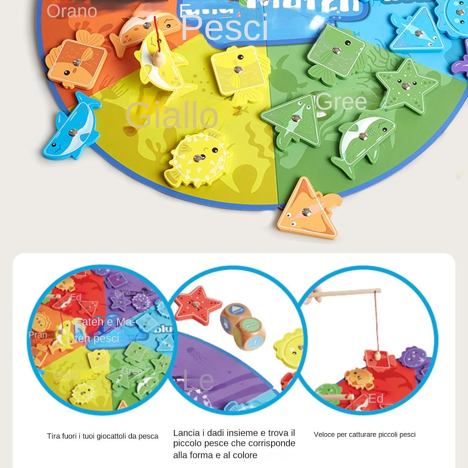 Migliora l'abilità pratica e la concentrazione: coinvolgi la curiosità dei bambini e la coordinazione occhio-mano con il gioco di pesca magnetico, perfetto per i bambini in età prescolare. Aiuta a insegnare forme, colori e conteggio mentre sviluppa la destrezza fisica e le capacità di risoluzione dei problemi. Una grande aggiunta all'educazione della prima infanzia. Sviluppo di abilità: questo giocattolo da pesca magnetico li aiuta a sviluppare le capacità motorie, facilitando la collaborazione e l'interazione con altri bambini, migliorando le abilità sociali. Esecuzione squisita: questo gioco di pesca magnetico per bambini è costruito con una lavorazione senza compromessi che garantisce robustezza e sicurezza durante il gioco. Senza sbavature e superfici lisce, questo gioco è una scelta eccellente per i genitori che cercano un giocattolo di alta qualità che non si rompa si deformi facilmente. Porta divertimento nella tua vita: questo gioco di pesca magnetico è perfetto per i genitori che vogliono rafforzare il loro legame con i propri figli, creando momenti divertenti e piacevoli che rafforzeranno la loro relazione. Regalo meraviglioso: questo fantastico gioco di pesca magnetica offrirà più divertimento ai bambini durante la Giornata dei bambini. È un regalo perfetto per i compleanni di ragazzi e ragazze e aggiunge entusiasmo alle celebrazioni di Pasqua e del Ringraziamento.