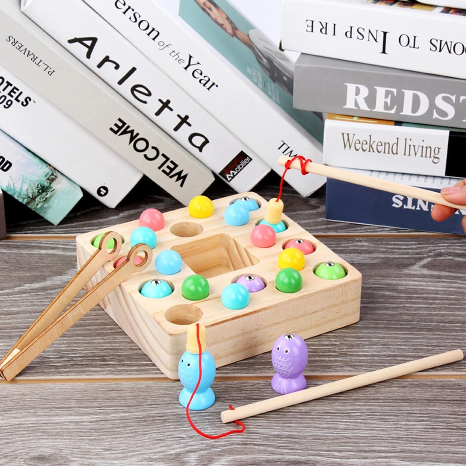 Bordi lisci: realizzato con cura in materiale di legno sicuro e robusto con bordi lisci, questo set da gioco di pesca è perfetto per il di gioco dei bambini piccoli. È progettato per aiutare a migliorare la coordinazione occhio-mano, rendendolo un'eccellente aggiunta alla collezione di giocattoli di ogni bambino Stampa meravigliosa: coinvolgi i bambini con colori vivaci e stampe meravigliose, insegnando loro a giocare a giochi di pesca che stimolano la percezione visiva e attirano l'attenzione dei bambini Design multifunzionale: trasforma la pesca in un'avventura mentre i bambini usano le aste magnetiche per catturare i giocattoli dei pesci e posizionarli nella scatola di legno. Possono anche optare per morsetti o posizionamento a palla per un divertimento ancora maggiore. Questo giocattolo multifunzionale promette più gioia e divertimento Sviluppo 'intelligenza: migliora le capacità cognitive di tuo figlio con questo set da gioco di pesca. Sviluppa progressivamente le loro capacità motorie, capacità di risoluzione dei problemi e coordinazione occhio-mano, divertendosi Regalo unico: questo set da gioco di pesca offre ai bambini la possibilità di sviluppare resilienza e grinta mentre lottano per catturare il pesce. Una fantastica idea regalo per ragazzi e ragazze, che li intrattiene e li impegna mentre sviluppano abilità di vita indispensabili. Ideale per il gioco al chiuso o all'aperto, questo set sarà sicuramente un successo