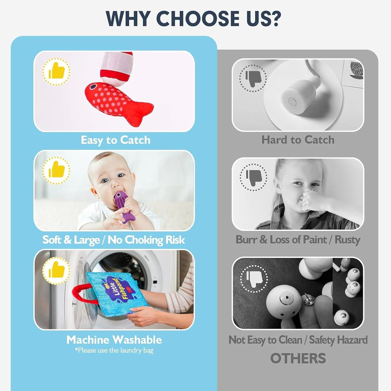 Materiale di alta qualità: il gioco di pesca dei bambini è realizzato con materiali in tessuto di alta qualità ed ecologici per garantire durata e sicurezza per un gioco infinito Promote lo sviluppo precoce: il nostro gioco di pesca per bambini è il giocattolo educativo perfetto che aiuta a migliorare la coordinazione degli occhi, il pensiero logico e le capacità di riconoscimento del colore, e promuove lo sviluppo delle prime abilità matematiche Design portatile: immagazzina il gioco di pesca per i bambini in una borsa o riponilo in un armadio grazie al suo design facilmente memorizzato. Perfetto per viaggiare e non occupare troppo spazio Ampia gamma di utilizzi: con infinite possibilità, ideali per giocare a casa, scuola prescolare, asilo o all'aperto, il gioco di pesca dei bambini è un giocattolo educativo indispensabile per ogni bambino curioso Presentazione educativa: promuovere lo sviluppo cognitivo e divertirsi con il gioco di pesca dei più piccoli, il regalo perfetto per i compleanni per , le vacanze o qualsiasi altro evento speciale