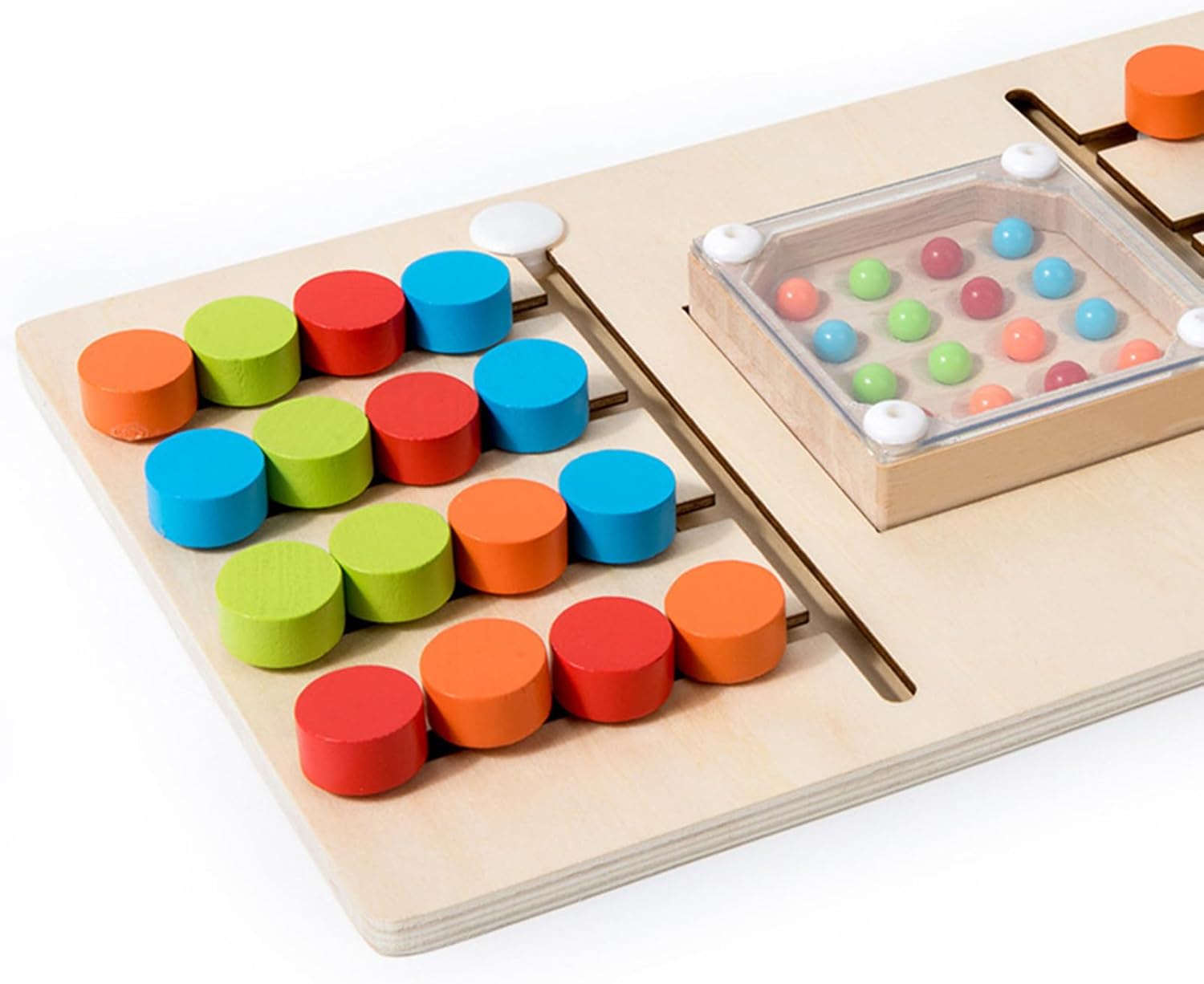 Design Compatto Puzzle: Il puzzle in legno per abbinamento colori presenta un design portatile e compatto, funzionando come un gioco da tavolo di piccole dimensioni che garantisce opportunità di intrattenimento e apprendimento accessibili ovunque. per le serate di gioco in famiglia o per scenari di viaggio, la sua praticità e versatilità lo rendono una scelta eccellente per momenti di svago educativi, senza richiedere molto spazio e adattandosi a diverse situazioni di utilizzo quotidian Potenzia le Abilità Motorie Fini: Questo puzzle scorrevole di abbinamento colori rafforza la coordinazione -manuale mentre i bambini muovono le perle lungo la pista scuotendo il dispositivo, migliorando la capacità di controllare i piccoli gruppi muscolari e promuovendo la coordinazione corporea. Offre un'esperienza di apprendimento interattiva e piacevole, perfetta per attività ludiche o in classe, contribuendo sviluppo delle capacità motorie fini in un contesto educativo e giocoso. Identificazione Colori Interattiva: La disposizione a colori del gioco puzzle scorrevole combina vivaci e contrasto marcato per aiutare i bambini a differenziare i colori, promuovendo una migliore consapevolezza cromatica mentre risolvono puzzle in aule o ambienti ricreativi. Questo gioco interattivo supporta l'apprendimento pratico e la percezione dei colori, rendendo ogni attività un'esperienza educativa e coinvolgente che rafforza le competenze di identificazione cromatica n Coinvolgimento Risoluzione Problemi: Il puzzle di scorrimento in legno incoraggia i giocatori a potenziare le abilità di risoluzione dei problemi e di pensiero logico pianificando attentamente ogni passo del processo di movimento delle perline. Offre un modo interattivo per costruire concentrazione e capacità cognitive in situazioni quotidiane, rendendo l'apprendimento piacevole e per lo sviluppo mentale. Esperienza di Gioco Sicura: Progettati con tecniche di lucidatura fine, questi puzzle scorrevoli in legno per bambini offrono una texture liscia e anti-schegge, garantendo sicurezza e durata allineate ai valori di protezione ambientale. un'esperienza coinvolgente di risoluzione di puzzle negli asili o durante picnic all'aperto, stimolando la creatività e le capacità di problem-solving in ambienti diversi, con un design pensato per la massima sicurezza infantile.