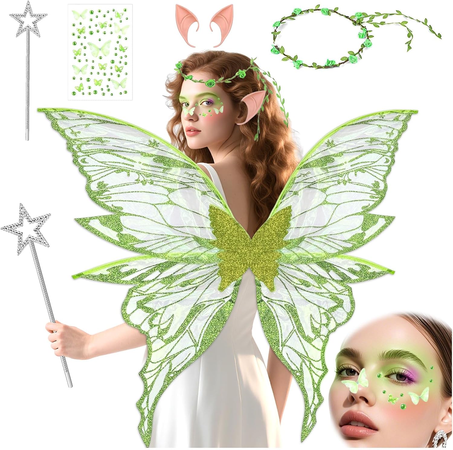 【Multiuso】 L'ala cosplay della fata della cicala è adatta a varie occasioni come Halloween, giochi di ruolo e spettacoli teatrali, rendendoti al centro dell'attenzione ovunque. 【Leggero e confortevole】: il costume cosplay è comodo da indossare e non sarà gravoso anche se indossato per lungo tempo. 【Facile da trasportare】: La cicala è leggera e comoda da portare in giro, il che può anche aggiungere magia a qualsiasi outfit 【Caratteristica】: La trama realistica crea ali di cicala realistiche e aumenta l'autenticità del tuo outfit cosplay
