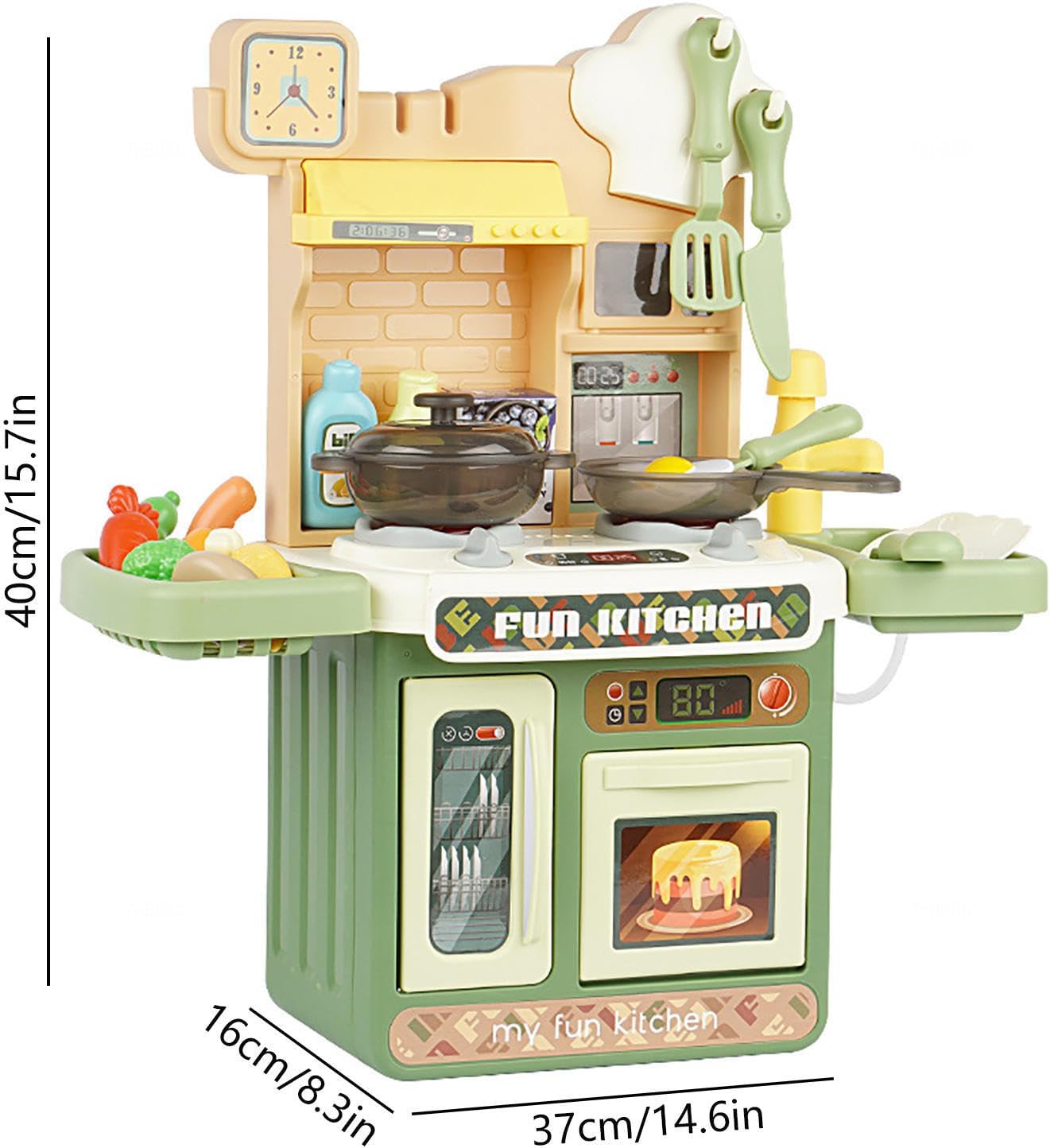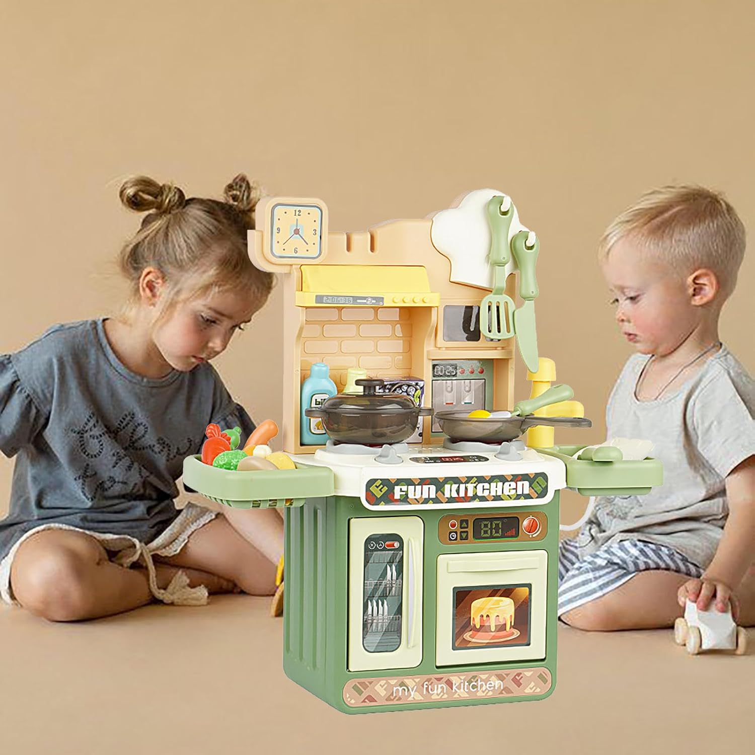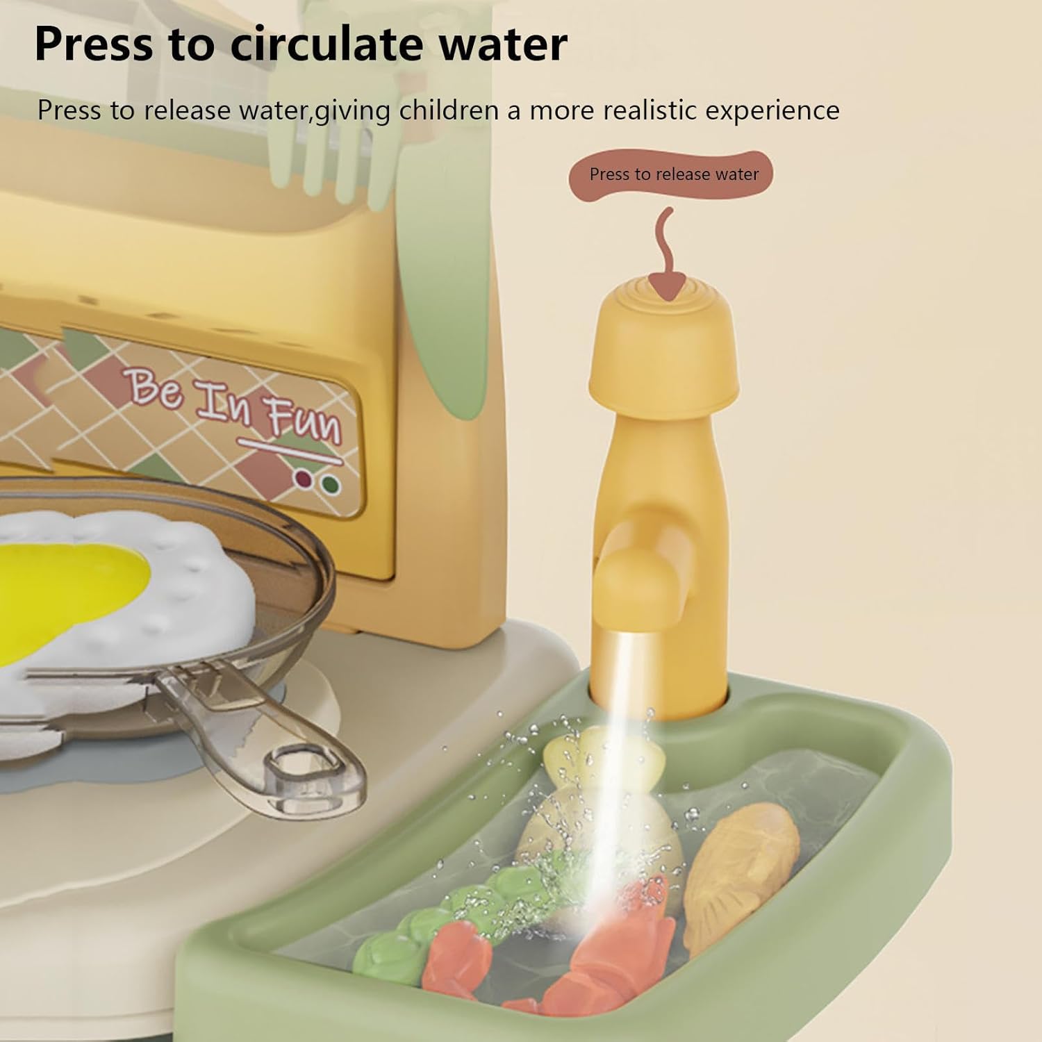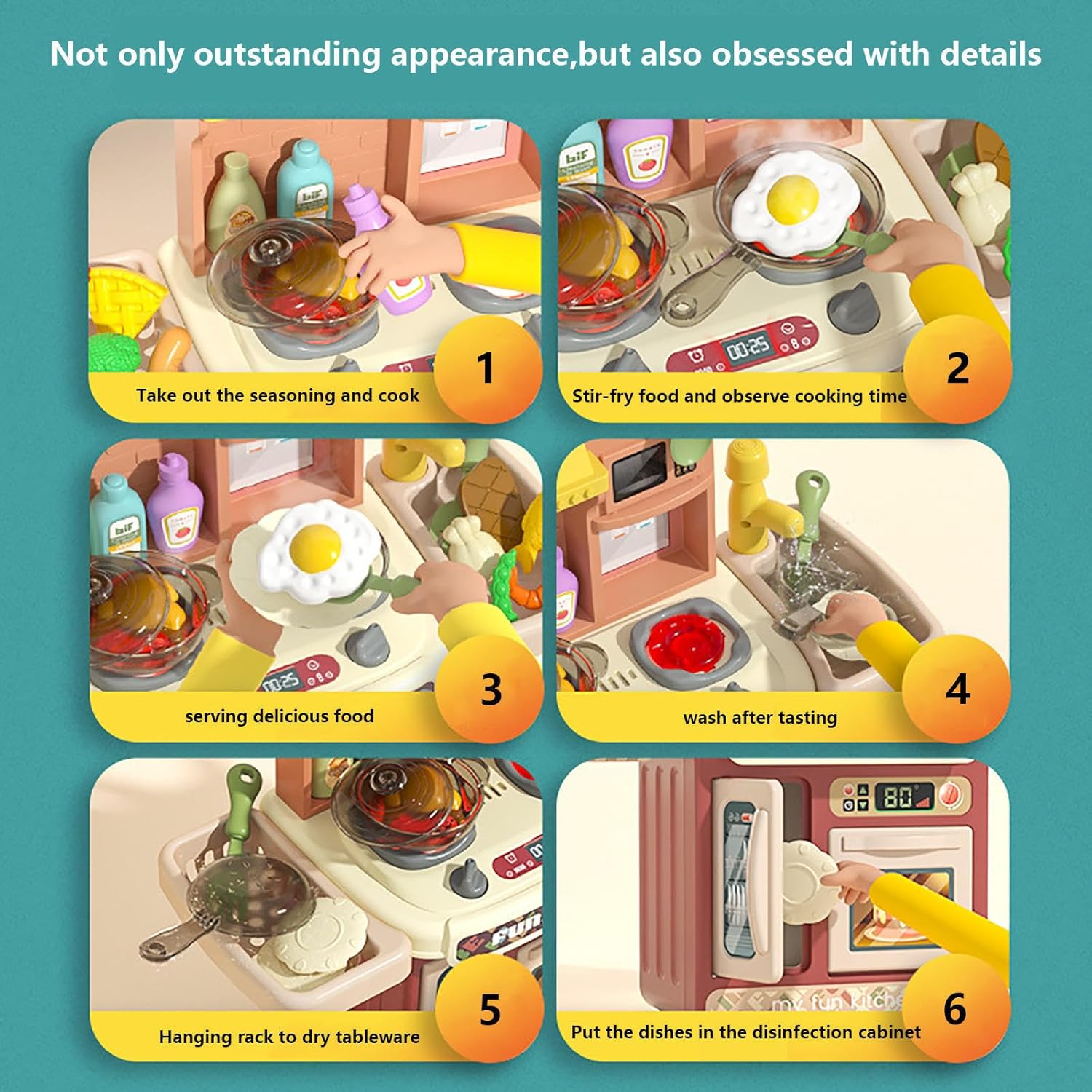 DIVERTIMENTO GIOCO DI RUOLO:La Cucina per Bambini Consente a Diversi Bambini E Genitori Di Unirsi,Il Che PUò Promuovere Le Relazioni Sociali E Genitore-Figlio.I Bambini Danno Pieno Gioco Alla Loro Immaginazione E Creano Ore Di Divertimento E Tempo Di Gioco. PRONTO PER GIOCARE IMMEDIATAMENTE:Il Set Da Cucina è Dotato Di Molti Accessori Tra Cui Fornello Elettronico, Lavello E Dotato Di Una Varietà Di Utensili Da Cucina Realistici E Modelli Di Alimenti Vegetali. VERA ESPERIENZA IN CUCINA:Il Set Da Gioco per La Cucina per Bambini Presenta Luci E Suoni Elettronici Realistici.Posiziona La Pentola E La Padella Sul Fornello,Accendi Il Pulsante,Luci Di Lavoro,Simulazione Di Spray E Lavello Da Gioco Aggiungi Al Divertimento! CIRCOLAZIONE DELL'ACQUA:Il Lavello Di Questo Set Da Cucina per Bambini Adotta Un Sistema Di Circolazione Dell'acqua per Risparmiare Acqua.Una Volta Terminata La Cottura,Il Tuo Piccolo Chef PUò Pulire I Piatti Nei Contenitori Del Lavello. SICURO E DUREVOLE:Il Set Da Gioco per Cucina per Bambini è Realizzato Con Materiali Di Alta Qualità,Facile Da Montare E I Bordi Sono Lisci E Privi Di Sbavature,Non Devono Mai Preoccuparsi Di Scheggiature,Sbiadimenti O Sbucciature,Consentendo Ai Bambini Di Giocare in Sicurezza.