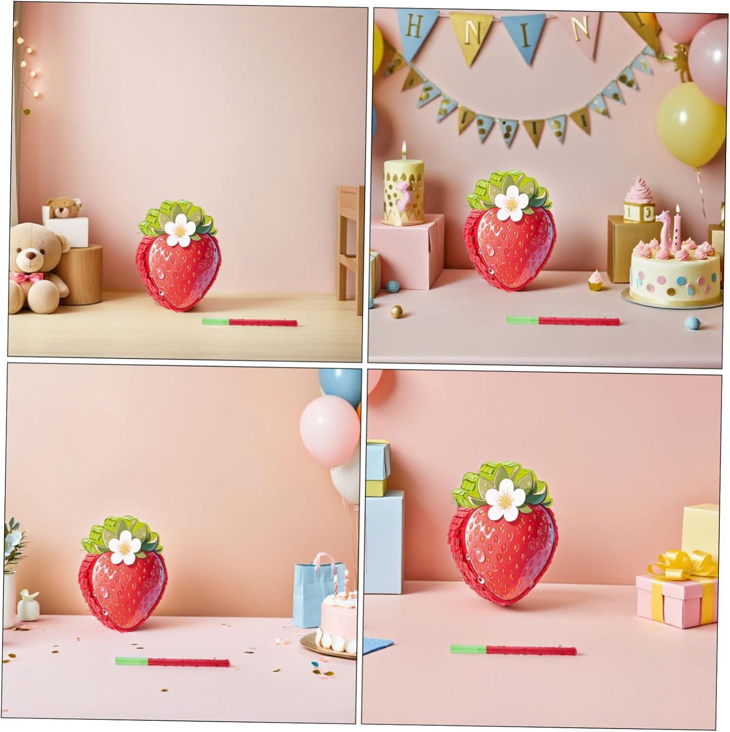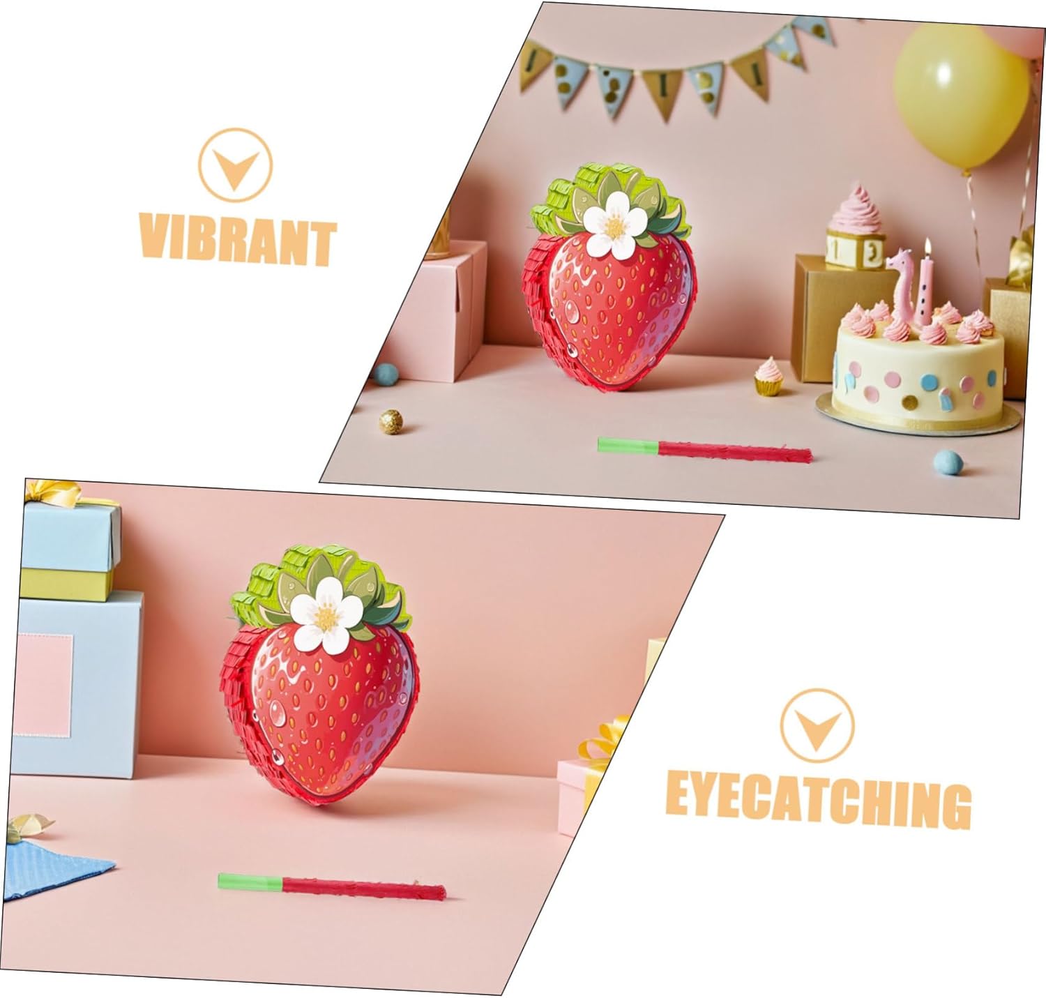 Costruzione robusta e attraente: questa piñata alle fragole è realizzata in cartone e decorata con carta crespa. Fornisce resistenza e un aspetto colorato e festoso per decorazioni di compleanno alla fragola, piñata per feste di compleanno e decorazioni per feste a tema fragola. MULTIUSO: Serve come decorazione per regali di compleanno con fragole o una festa con fragole e migliora l'atmosfera delle decorazioni per feste a tema fragola, dei giochi gastronomici Cinco de Mayo e delle decorazioni per la festa del primo compleanno con fragole Configurazione semplice: presenta un robusto anello per appenderlo e un'apertura di riempimento con un adesivo di apertura che consente un facile riempimento con caramelle o coriandoli. Decorazioni per feste con fragole, festa a tema fragole, giochi di piñata con gli occhi bendati Per ogni evento: ideali come decorazioni per piñata per il Cinco de Mayo, decorazioni per la festa del primo compleanno con fragole o come attività di piñata con cibo per feste di compleanno. Questo rende ogni celebrazione qualcosa di speciale. Come bomboniera con fragole e decorazione 3D per feste di compleanno Facile da usare: dotato di un anello per appenderlo e un foro di riempimento, è facile da riempire con coriandoli, regali di compleanno, caramelle o per decorazioni per feste a tema fragole, piñata Cinco de Mayo e giochi di feste con fragole