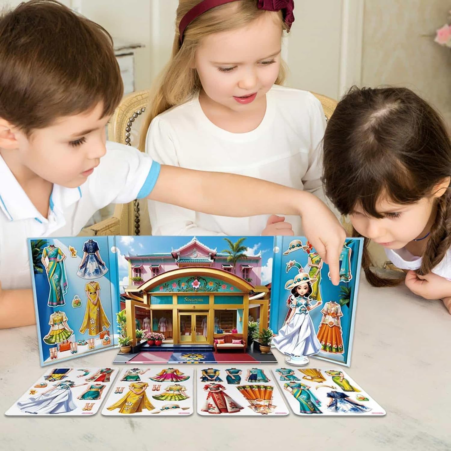 Sorpresa giocosa: delizia i giovani esploratori con set da gioco magnetici Dress-up come set regalo da principessa e haves per le vacanze, ideali per feste di Natale o sorprese di compleanno piene di narrazione e gioco interattivo Divertimento magnetico all'aperto: con una presa sicura per le mani piccole, questi giochi magnetici sicuri sono leggeri e portatili. Offrono un divertimento immediato ovunque e garantiscono un intrattenimento senza preoccupazioni a casa o in viaggio. Passaporto portatile: i giocattoli magnetici combinano adesivi con sfondo 3D con temi delle principesse per un gioco di ruolo creativo, perfetto per viaggiare o a casa come occupazione coinvolgente Giocattolo educativo interattivo: promuove il pensiero logico, la coordinazione degli occhi e il riconoscimento del colore grazie a giochi magnetici calmi che consentono un'esperienza di gioco concentrata e silenziosa Avventure interattive a tema: i giochi di slot da principessa includono accessori di sfondo tematici e abiti magnetici che stimolano i bambini a esplorare la creazione di storie e aprono ulteriori opportunità di gioco di ruolo