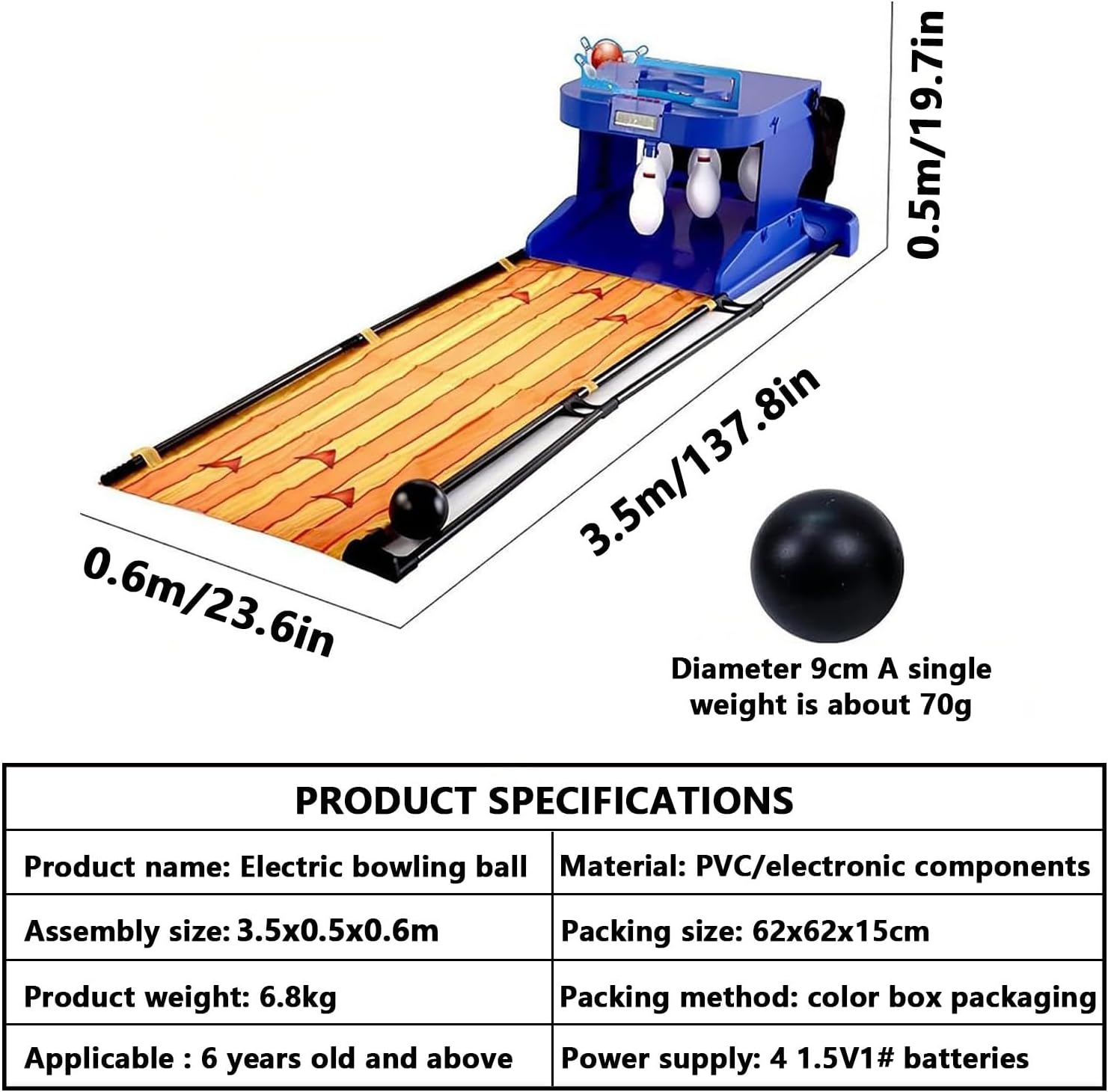 【SET DA GIOCO DA BOWLING ELETTRONICO】Prova l'emozione del bowling direttamente a casa con questo gioco da bowling elettronico a batteria! Progettato per la massima facilità d'uso, è dotato di un sistemas di ritorno automatico della pallina e di un sistemas di punteggio intelligente. Il set include 6 birilli in plastica resistenti di dimensioni standard e 2 bocce da bowling, tutti realizzati con materiali atossici di alta qualità per garantire un gioco sicuro e divertente per i bambini. 【VISUALIZZATORE LED INTELLIGENTE DEL PUNTEGGIO】Tieni traccia di ogni strike e spare con il segnapunti elettronico a LED integrato. Questo gioco da bowling elettronico registra automaticamente i tuoi punteggi, aggiungendo un tocco di competitività a ogni partita. Perfetto per l'allenamento in solitaria o per il divertimento in due, offre un'esperienza interattiva mentre cerchi di abbattere il maggior numero di birilli possibile! 【RITORNO E RESET AUTOMATICI DELLA pallina】Non è necessario recuperare la pallina manualmente: l'innovativo arco di ritorno della pallina te la riporta indietro dopo ogni lancio. In combinazione con effetti sonori realistici, questo gioco da bowling elettronico aumenta l'autenticità e la praticità, rendendo ogni round fluido e coinvolgente. 【INSTALLAZIONE RAPIDA E STOCCAGGIO PORTATILE】Ideale per l'uso domestico, questo gioco da bowling elettronico può essere assemblato in pochi secondi. Le palle sono progettate con una sensazione di peso realistica e un esterno liscio per una maneggevolezza confortevole. Quando il divertimento è finito, è sufficiente ripiegare la pista per riporla in modo compatto, risparmiando spazio senza bordi taglienti che intralcino. 【DIVERTENTE ATTIVITÀ DI LEGAME GENITORE-FIGLIO】Il bowling offre un perfetto mix di intrattenimento, sfida e sviluppo delle abilità. Questo gioco da bowling elettronico aiuta a rafforzare i legami familiari e funge da meraviglioso ponte di comunicazione tra genitori e figli. Condividi risate e momenti di gioia creando insieme ricordi armoniosi.