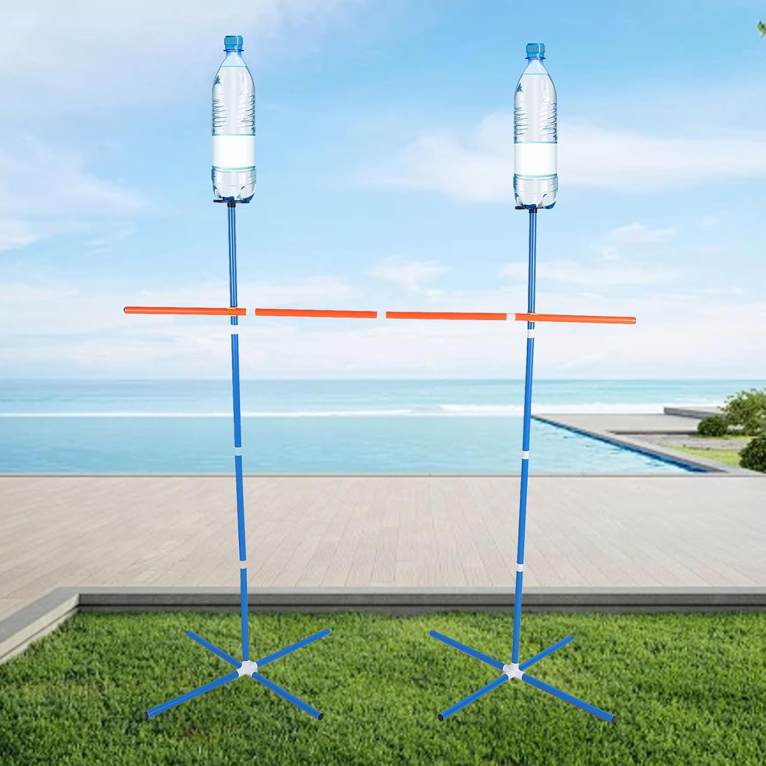 Gioco emozionante con punteggio: guadagna punti se bottiglie o dischi volanti vengono colpiti prima che tocchino terra quando vengono catturati da altre squadre. Gioco di lancio di bottiglie facile da imparare ma abbastanza impegnativo da farti tornare per averne di più. Installazione pratica e portabilità: ogni palo è composto da quattro parti per un rapido montaggio e smontaggio, completo di custodia per tenere tutti gli oggetti insieme e facilmente trasportabile per il divertimento in movimento. Divertimento versatile all'aria aperta ovunque: gioca a giochi di lancio del disco all'aperto posizionando il palo a terra in qualsiasi luogo, garantendo ore di divertimento e intrattenimento. Ampia gamma di applicazioni: adatto a vari ambienti come barbecue, gite in campeggio, spiagge e riunioni in giardino, offrendo un'esperienza divertente e coinvolgente da condividere con amici e familiari. Maggiore durata con palo più spesso: lo spessore del palo è stato aggiornato da 1 mm a 1,5 mm, fornendo maggiore elasticità e resistenza alla rottura, consentendo sia agli adulti che ai membri della famiglia di godersi attività di gioco all'aperto.