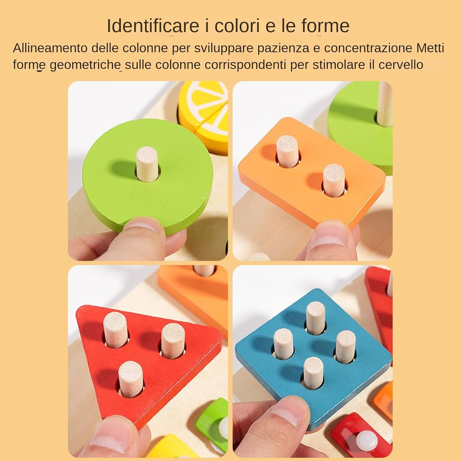 Regalo Creativo: Incoraggia lo sviluppo cognitivo infantile mentre sperimentano il divertimento di ordinare le forme, eccellente che dimostra attenzione e favorisce la loro creatività illimitata e uso immaginativo nelle fasi di crescita Finitura Preziosa: Legno robusto e spesso resistente alle crepe, lavorato con levigatura meticolosa per superfici lisce senza spigoli , assicura durabilità e protezione durante il gioco continuativo Materiali Solidi: Design in legno naturale con finitura ad acqua sicura, caratterizzato da superfici delicate che coccolano la pelle tenera per comfort continuativo. Obiettivi Diversificati:Con attività divertenti come abbinare forme, scoprire numeri e nominare frutti, migliora la concentrazione, affina le capacità motorie e accende la passione per la conoscenza nelle fasi di crescita infantile Operazione intuitiva: Grazie ai moduli interattivi, i bambini sviluppano pensiero logico e competenze fondamentali per l'apprendimento precoce, affinando movimenti precisi e potenziando la loro innata curiosità