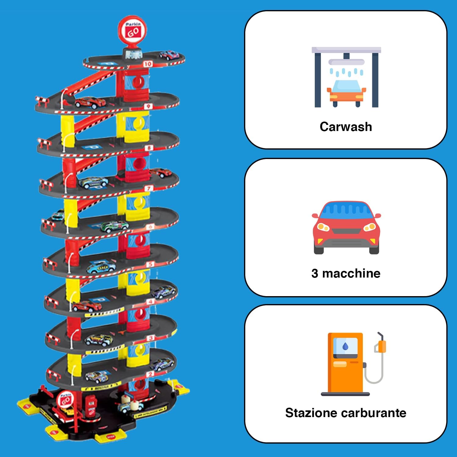 Esplorazione Urbana Verticale: City Garage alto 110cm con 10 livelli offre un'esperienza unica di gioco, permettendo ai bambini di esplorare la città in verticale e stimolando la loro immaginazione. Gioco Completo e Interattivo: Con 3 macchine, CarWash e stazione carburante, questo garage offre un gioco completo e interattivo, permettendo ai bambini di vivere avventure urbane senza fine. Stimola Creatività e Immaginazione: Progettato per stimolare la creatività, il City Garage offre un'ampia gamma di attività, dal parcheggio verticale al lavaggio auto e al rifornimento, favorendo lo sviluppo delle abilità cognitive. Dimensioni Realistiche 110cm: Le dimensioni realistiche di 110 cm portano autenticità all'esperienza di gioco, garantendo che ogni momento trascorso con il City Garage sia coinvolgente e memorabile. Regalo Indimenticabile: City Garage con 10 Livelli e 3 Macchine è il regalo perfetto per i giovani appassionati di auto, offrendo un'esperienza completa che sviluppa la coordinazione e incoraggia il gioco di ruolo.