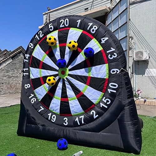 Freccette da calcio gonfiabili: montaggio rapido e comodo da riporre: il bersaglio gonfiabile da calcio può essere montato in meno di 2 minuti. Ricordarsi di chiudere la cerniera prima di gonfiarlo. Dopo l'uso, si sgonfia facilmente e può essere ripiegato in dimensioni compatte per un trasporto e uno stoccaggio senza problemi. Fare attenzione agli oggetti appuntiti per evitare danni durante lo spostamento. Bersaglio gonfiabile per freccette da calcio, design resistente e stabile: il nostro bersaglio gonfiabile per freccette misura 3 x 3 m ed è realizzato in tessuto Oxford 210D per una maggiore resistenza all'usura e all'elettricità statica. Le giunture a doppia cucitura migliorano la tenuta all'aria, garantendo una struttura più durevole e stabile rispetto ad altre opzioni. Freccette da calcio gonfiabili: semplici istruzioni di montaggio: gonfiare il bersaglio fino a riempirlo adeguatamente d'aria, quindi fissarlo a terra con dei picchetti per una maggiore stabilità. Assicurarsi di chiudere la cerniera inferiore per evitare perdite d'aria o di aprirla per uno sgonfiaggio rapido. Bersaglio gonfiabile per freccette da calcio. Utilizzo versatile: perfetto per chi vuole allenare le proprie abilità o per gruppi che competono per ottenere punteggi elevati, questo bersaglio gonfiabile per freccette è ideale per riunioni di famiglia, eventi di team building o festival comunitari, offrendo ore di intrattenimento in vari luoghi, come cortili, palestre, scuole e ambienti aziendali. Accessori tutto compreso per freccette da calcio gonfiabili: ogni set include un soffiatore elettrico, una pompa da calcio, un ago per palline, picchetti da terra, corde, un telo per riparazioni, una borsa per riporre le palline e sacchi di sabbia, per garantirti tutto il necessario per iniziare subito a giocare.