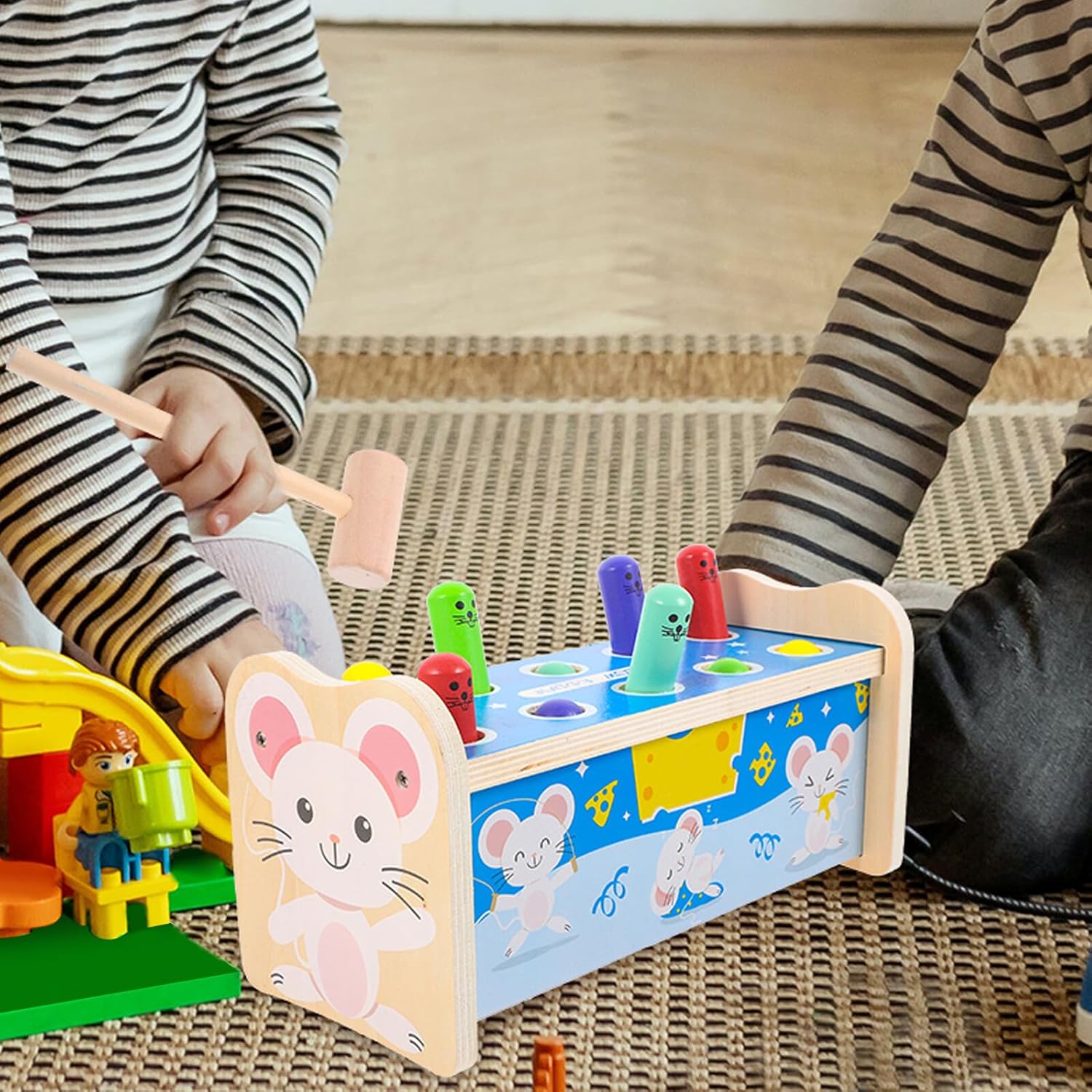 Gioco educativo per : Wooden gopher toys sono progettati come giocattoli per'apprendimento precoce, favorendo la discriminazione dei colori e sviluppo della coordinazione occhio-mano, per'esperienza di gioco formativa e coinvolgente Dimensioni compatte e design divertente: questo set di giocattoli di legno con forma a cartone animato ha dimensioni di 26x14,5x12,5 cm, ideali per mani dei , stimolando l'interesse e curiosità durante il gioco Materiali sicuri e duraturi: realizzati in legno robusto con verniciatura colorata liscia e atossica, questi giocattoli di percussione offrono una superficie protettiva, assicurando un utilizzo prolungato e di gioco sicuro Adatto a in età prescolare: ideale per ragazzi e ragazze nei primi anni, questo gioco di colpire aiuta a rafforzare le capacità motorie fini e coordinazione, supportando una crescita equilibrata attraverso un'attività ludica Stimola la creatività e divertimento: il design simpatico e colorato di questo gioco di legno incoraggia i piccoli a esplorare e divertirsi, trasformando momenti di gioco quotidiano in occasioni di apprendimento e gioia