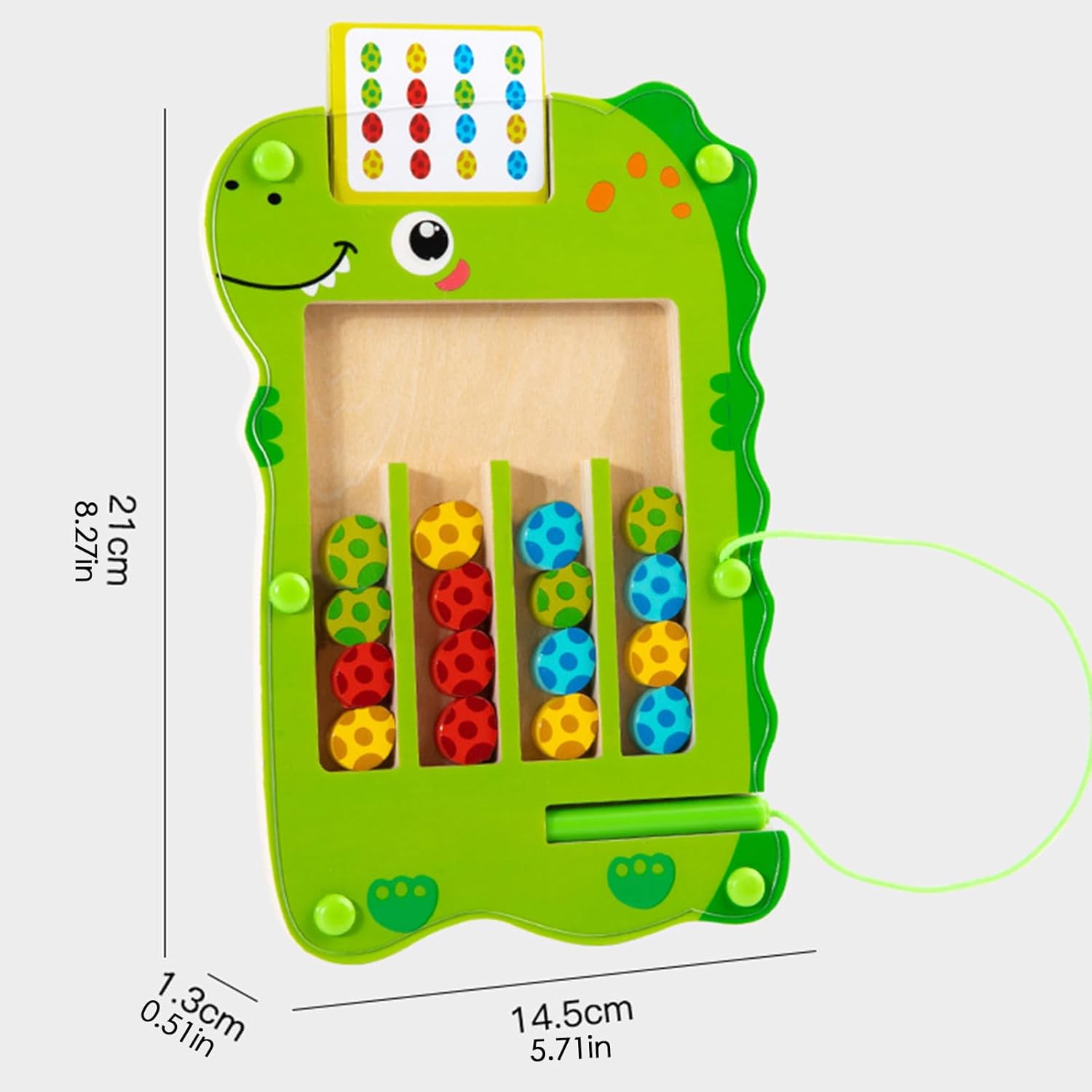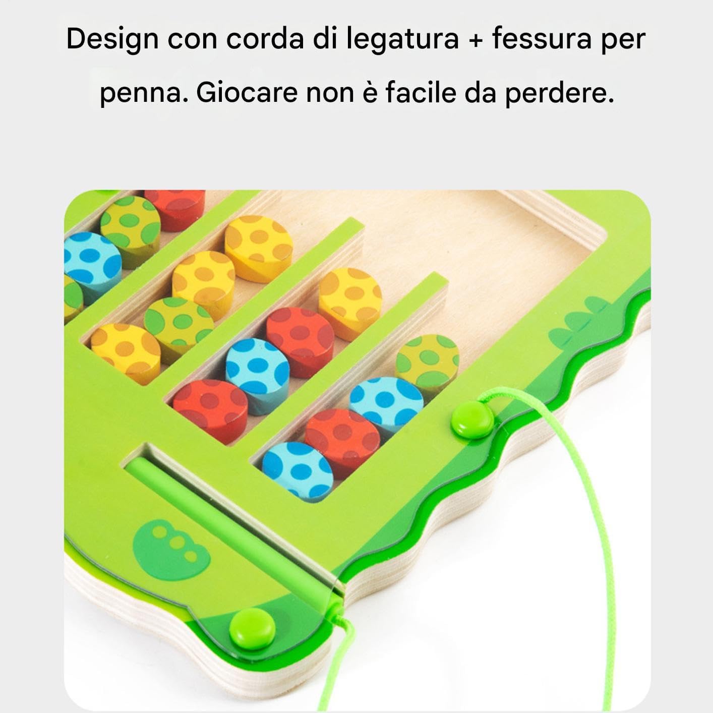 Sviluppo della Coordinazione: Padroneggiare questa magnetica implica movimenti precisi e scelte deliberate, potenziando le abilità motorie fini attraverso una navigazione attenta e decisioni intenzionali. Comodità Portatile: Concepito per la trasportabilità questo labirinto magnetico favorisce interazione familiare in aule o durante viaggi promuovendo e divertimento condiviso con la forma compatta Stimola Curiosità: Integra i fondamenti di paleontologia con il design a labirinto stratificato, incoraggiando il gioco creativo e stimolando naturalmente la curiosità con coinvolgenti sfide a tema dinosauri per ore di divertente scoperta. Abilità Problem Solving:Supporta lo sviluppo intellettuale precoce attraverso il miglioramento delle capacità spaziali, il perfezionamento della coordinazione motoria e l'allenamento del pensiero logico per affrontare sfide complesse Design Eco-Consapevole: Con struttura in legno, è concepito per essere sicuro ed ecologico garantendo divertimento duraturo per utenti di ogni età