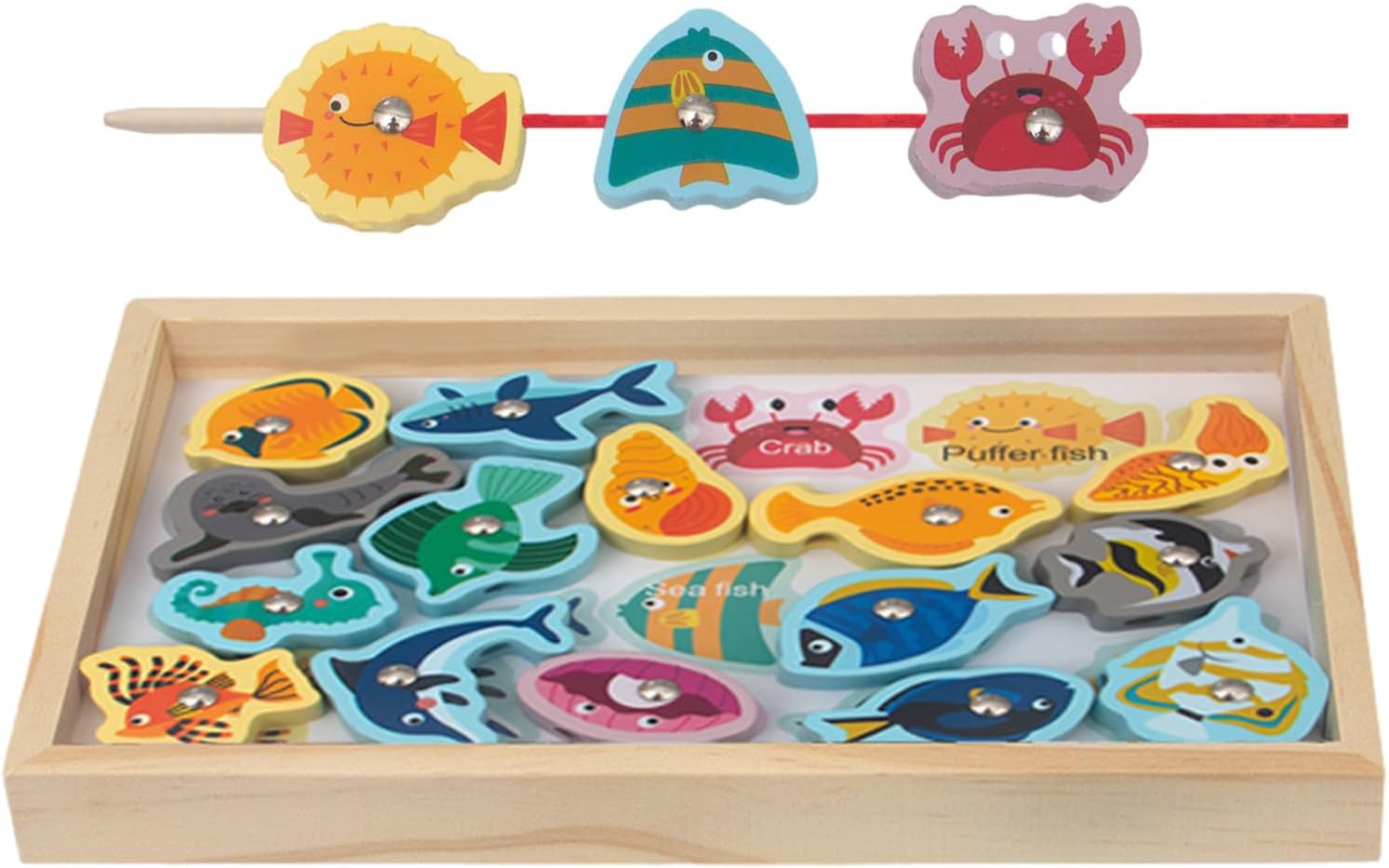 Sviluppa la capacità di pensiero: affina le capacità di sviluppo del tuo bambino con il nostro giocattolo da pesca in legno. I bambini imparano a migliorare la loro creatività, coordinazione occhio-mano, abilità pratiche, abilità motorie e capacità di pensiero. Materiale di legno: i nostri giocattoli da pesca in legno sono progettati senza bordi taglienti e sono realizzati con materiali sicuri, innocui ed ecologici. I genitori possono rilassarsi mentre i loro figli si godono infinite ore di divertimento e divertimento. Regalo creativo: scatena la curiosità e l'immaginazione del tuo bambino con questo giocattolo da pesca in legno. È un regalo perfetto per e le ragazze che amano pescare. Promuove le capacità motorie, la coordinazione occhio-mano e favorisce la creatività. Ideale per Pasqua, Natale o feste di compleanno. Colori vivaci: il design realistico e i colori vivaci del nostro giocattolo da pesca in legno stimolano l'immaginazione, incoraggiano il riconoscimento del colore e della forma nei bambini in età prescolare e allo stesso tempo rendono divertente l'apprendimento. Gioco di pesca: il nostro giocattolo da pesca offre un design unico 2 in 1 che combina giocattoli da pesca e perline in uno. Grazie al design magnetico, i bambini adoreranno catturare i pesci colorati e le perline migliorando così le loro capacità motorie e la coordinazione occhio-mano.