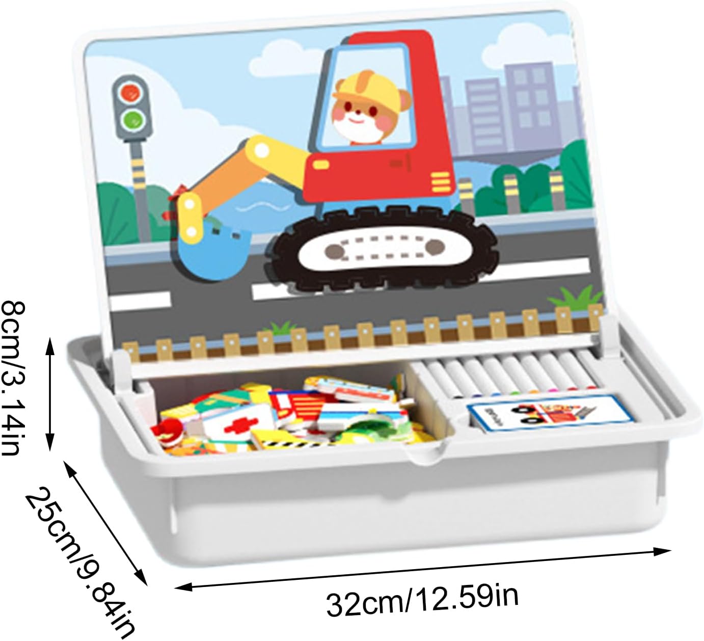 Gioco Imaginativo: Progettato per attirare i bambini, questo puzzle magnetico permette di combinare liberamente acconciature, outfit e , soddisfacendo i desideri creativi e assicurando divertimento duraturo sia in solitaria che condiviso con amici e familiari Attività prescolare coinvolgente: Questo gioco magnetico ispira il gioco di ruolo immaginativo per l'infanzia, offrendo strumento ideale per l'educazione prescolare e per occasioni festive, garantendo una scelta premurosa che delizia sia le bambine che i bambini durante i momenti speciali della crescita Puzzle Magnetico per Bambini: Realizzato con materiali ABS di alta qualità, questo gioco è robusto e difficile da rompere. I bordi levigati e arrotondati lo rendono sicuro durante il gioco, riducendo rischi di o . I bambini possono divertirsi con il puzzle mentre i genitori apprezzano la sicurezza offerta dal prodotto Strumento di Apprendimento Divertente: Il puzzle magnetico incoraggia la risoluzione creativa di problemi e migliora la coordinazione occhio-mano, offrendo ore di intrattenimento che unisce perfettamente educazione e divertimento durante il gioco singolo o di gruppo, aiutando i bambini a esplorare il proprio potenziale in un ambiente rilassato Tavola Puzzle Doppia Funzione: Caratterizzato da un lato stampato per assemblare progetti e un lato bianco per disegnare, questo gioco magnetico permette esplorazione creativa illimitata mentre potenzia le capacità di problem solving durante il gioco o attività educative per bambini di diverse età