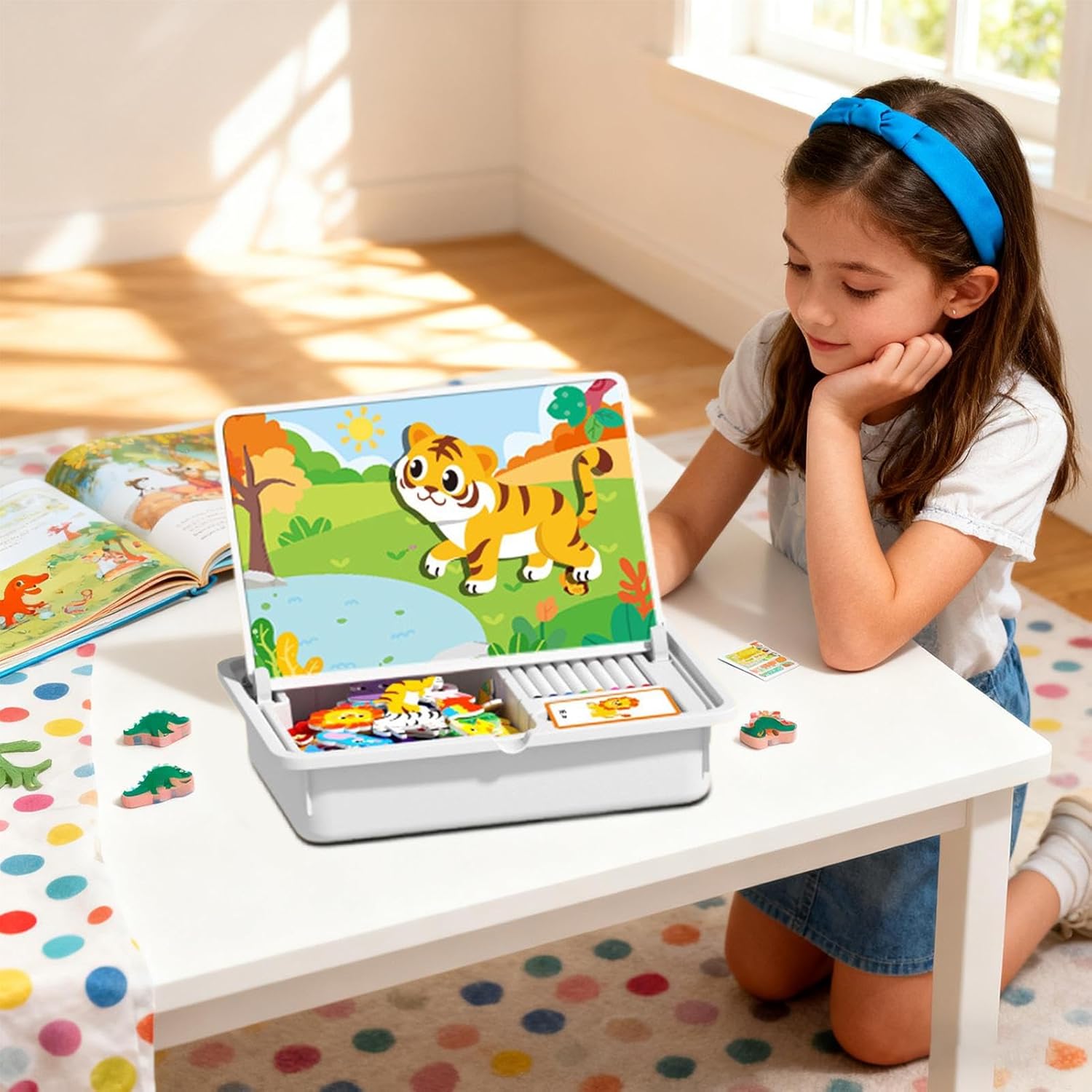 Sviluppo Artistico: Il puzzle magnetico di vestiti cattura l'interesse con opzioni di acconciature, abiti e per combinazioni infinite, stimolando il pensiero creativo e ideale per giochi di gruppo o esplorazione individuale Attività prescolare coinvolgente: Questo gioco magnetico ispira il gioco di ruolo immaginativo per l'infanzia, offrendo strumento ideale per l'educazione prescolare e per occasioni festive, garantendo una scelta premurosa che delizia sia le bambine che i bambini durante i momenti speciali della crescita Puzzle Magnetico per Bambini: Realizzato con materiali ABS di alta qualità, questo gioco è robusto e difficile da rompere. I bordi levigati e arrotondati lo rendono sicuro durante il gioco, riducendo rischi di o . I bambini possono divertirsi con il puzzle mentre i genitori apprezzano la sicurezza offerta dal prodotto Gioco Magnetico Divertente: Questo puzzle magnetico è progettato per migliorare la coordinazione occhio-mano e ispirare il pensiero creativo, offrendo un modo dinamico per introdurre opportunità di apprendimento interessanti durante il gioco, permettendo ai bambini di sviluppare competenze necessarie divertendosi in vari contesti come lezioni o riunioni familiari Strumento Creativo a Doppia Faccia: Questo puzzle magnetico offre un lato con pattern precostituiti per costruire disegni intricati e un lato bianco per disegnare liberamente, stimolando l'immaginazione e supportando l'apprendimento pratico sia in classe che a casa attraverso un gioco educativo e coinvolgente per bambini