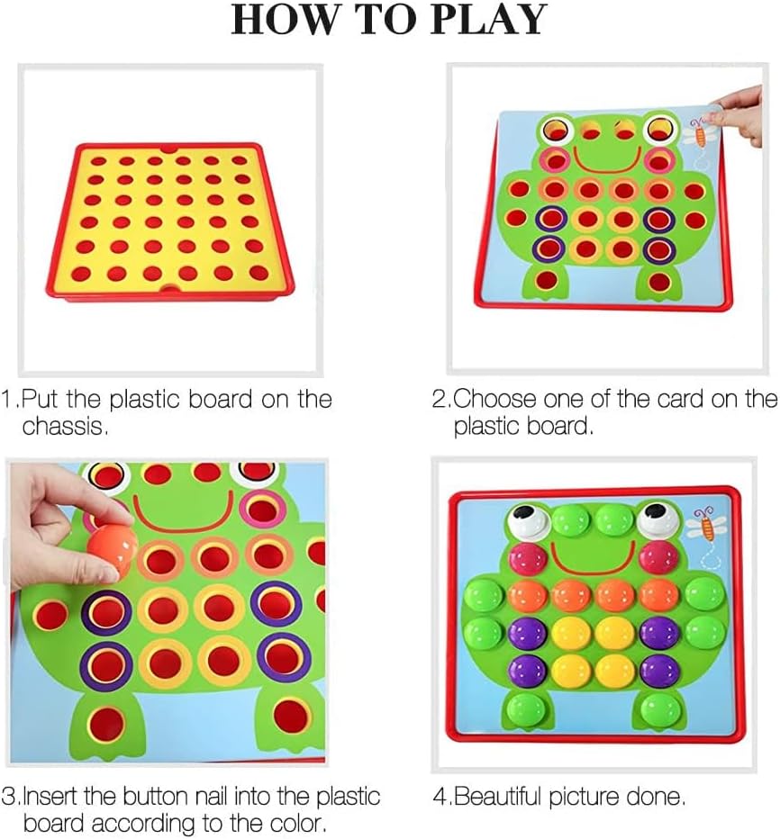 【Giocattolo educativo creativo】: gioco plug-in mosaico per bambini, giocattolo educativo, regalo per 2 anni, ragazza, ragazzo, i bambini imparano giocosamente e assegnano i colori; Premere e rilasciare i pulsanti promuove anche le capacità motorie e il pensiero logico. Migliora le capacità di progettazione di tuo figlio! 【Giocattoli educativi con materiali di alta qualità e sicurezza】:--- Realizzati in plastica ABS ecologica, atossica e insapore, hanno superato la certificazione CE. La superficie è rotonda e liscia e non fa male alla mano. Il design con pulsanti rotondi offre la massima sicurezza per il tuo bambino e gioca con sicurezza. Soddisfare le esigenze di bambini e genitori. 【Regalo ideale per i bambini】: il puzzle da appendere è la scelta ideale per i bambini in età prescolare di età compresa tra 2 e 3 anni per promuovere la cognizione e l'adattamento, l'immaginazione, la creatività, il senso artistico e l'abilità pratica dei bambini. Questo set di unghie a forma di fungo è ideale per bambini, neonati, ragazzi, ragazze, vacanze per bambini, compleanni, regali per bambini, Natale, Capodanno, feste e molto altro ancora. 【Set di giochi plug-in classico】: 45 pulsanti colorati, 12 immagini colorate e 1 vano portaoggetti, pulsanti colorati spessi per una facile gestione da parte di mani piccole, facili da inserire nel pannello a mosaico, l'immagine è molto interessante e colorata. 【Facile da pulire】: set di giocattoli educativi con un vano portaoggetti che può essere riposto alla fine del gioco. Insegna ai tuoi bambini fin dalla tenera età a pulire i propri giocattoli!