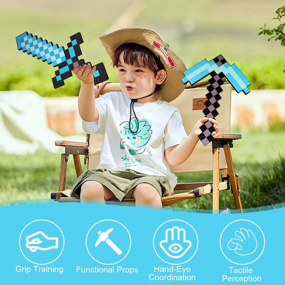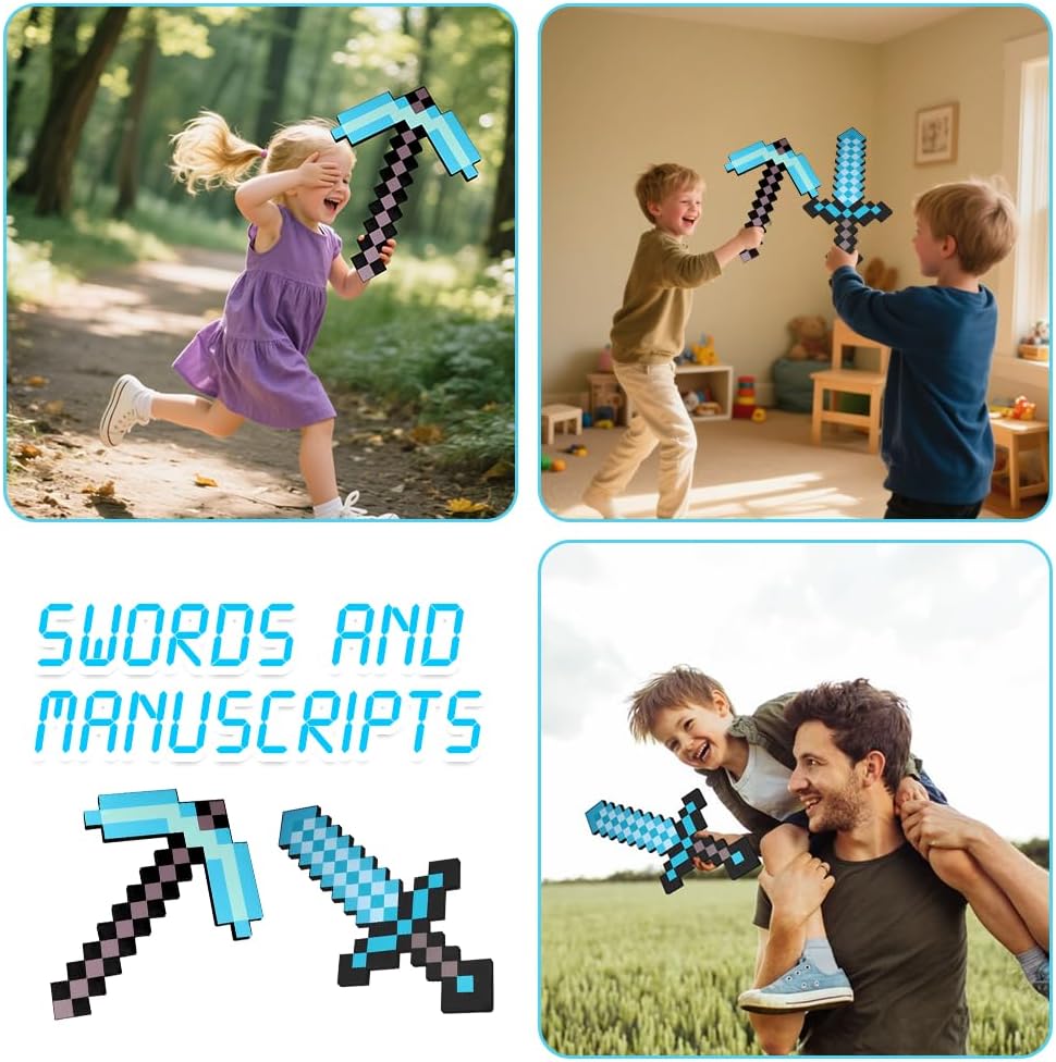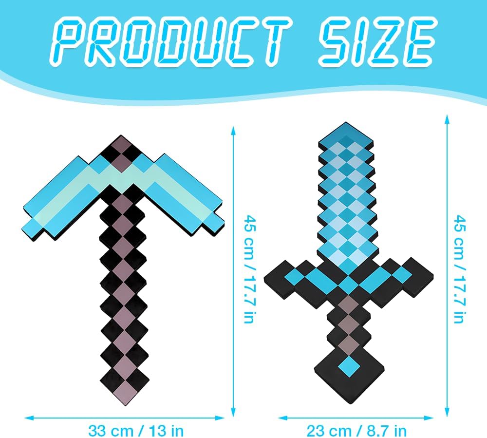 【Design Unico】Questo gioco spada e piccone adotta il design in stile pixel dei videogiochi più popolari con colori vivaci, perfetto per giocare con i tuoi personaggi dei videogiochi preferiti. Tienili in mano come se fossi nel mondo del gioco e crea scene di gioco esclusive con gli amici 【Materiale di Alta Qualità】Questo gioco spada e piccone è realizzato in schiuma EVA di alta qualità, sicura ed ecologica, leggera e resistente, liscia al tatto, dalla consistenza morbida, non facile da strappare e dall'aspetto realistico che impressionerà i veri appassionati di giochi 【Dimensioni Adatte】Questo set di giocattoli include: 1 spada e 1 piccone. La spada è lunga circa 45 cm e il piccone è lungo circa 45 cm, il che offre ai una buona presa, consentendo loro di vivere un'esperienza di gioco piacevole, stimolando creatività e immaginazione 【Regalo Perfetto】Questo set di giocattoli con spada e piccone è un regalo ideale, un premio e un omaggio, perfetto per gli amanti dei giochi, anche i piccoli giocatori e gli amanti dei giochi da collezione 【Decorazione Perfetta per Feste】Questo set di giocattoli con spada e piccone non è solo adatto per giocare, ma anche per feste a tema. Feste, premi in classe, feste di cosplay, feste in piscina, feste di compleanno, Halloween, carnevali, giochi di compleanno ecc