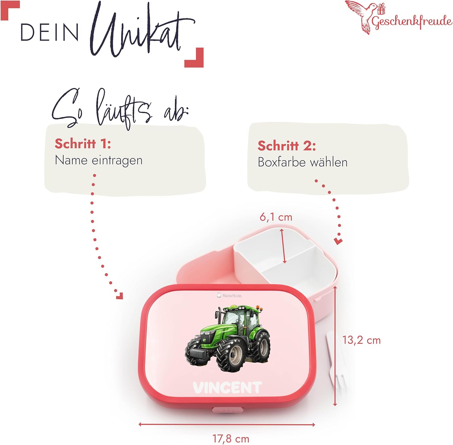 IL TUO PORTAPRANZO MARCHIATO TI ASPETTA: perfetto per i bambini, con divisori per bento e personalizzabile. Rendi unico il portapranzo del campus con un nome o un motivo. Versatile e durevole: per ogni spuntino. BENTO: gli scomparti ben studiati della scatola per snack Bento assicurano che il cibo per ragazzi e ragazze possa essere trasportato in modo altrettanto sicuro. La scatola degli snack è personalizzata secondo i vostri desideri. REGALO: Il portapane personalizzato è ideale come regalo per l'inizio della scuola del bambino in età scolare o come regalo per l'inizio dell'asilo. Il portapranzo è adatto anche come portapranzo per l'asilo nido. LAVABILE IN LAVASTOVIGLIE: Grazie alle nostre stampanti più moderne, i motivi personalizzati sono lavabili in lavastoviglie. Ciò rende il contenitore per il pranzo personalizzato particolarmente resistente e garantisce una gioia duratura. TROVATO: Probabilmente hai cercato "portapranzo casual con trattore", "portapranzo con trattore", "portapranzo per asilo con trattore", "portapranzo con trattore", "portapranzo per bambini con trattore" o "portapranzo per bambini con trattore" e ora hai trovato il regalo perfetto.