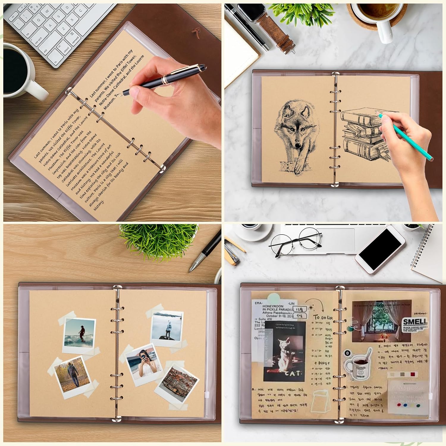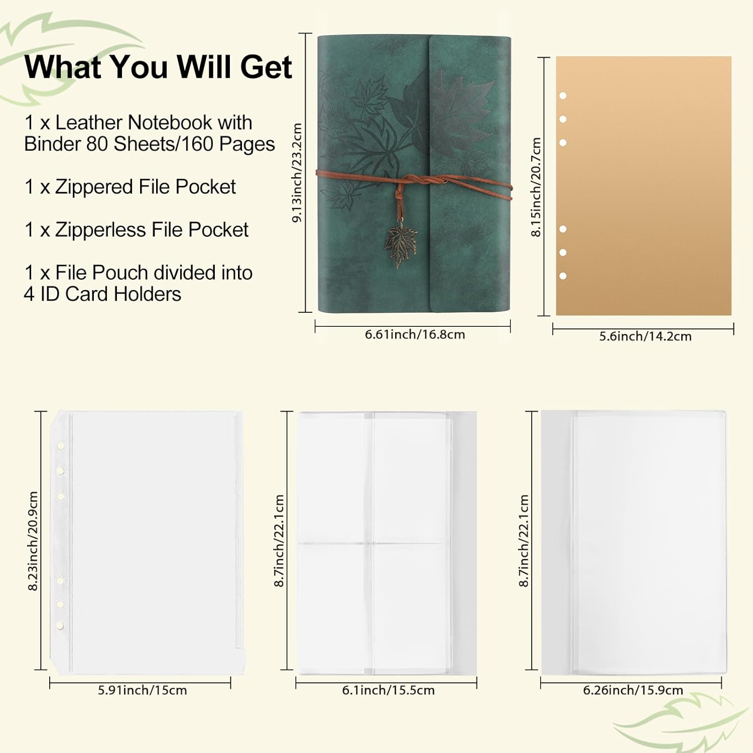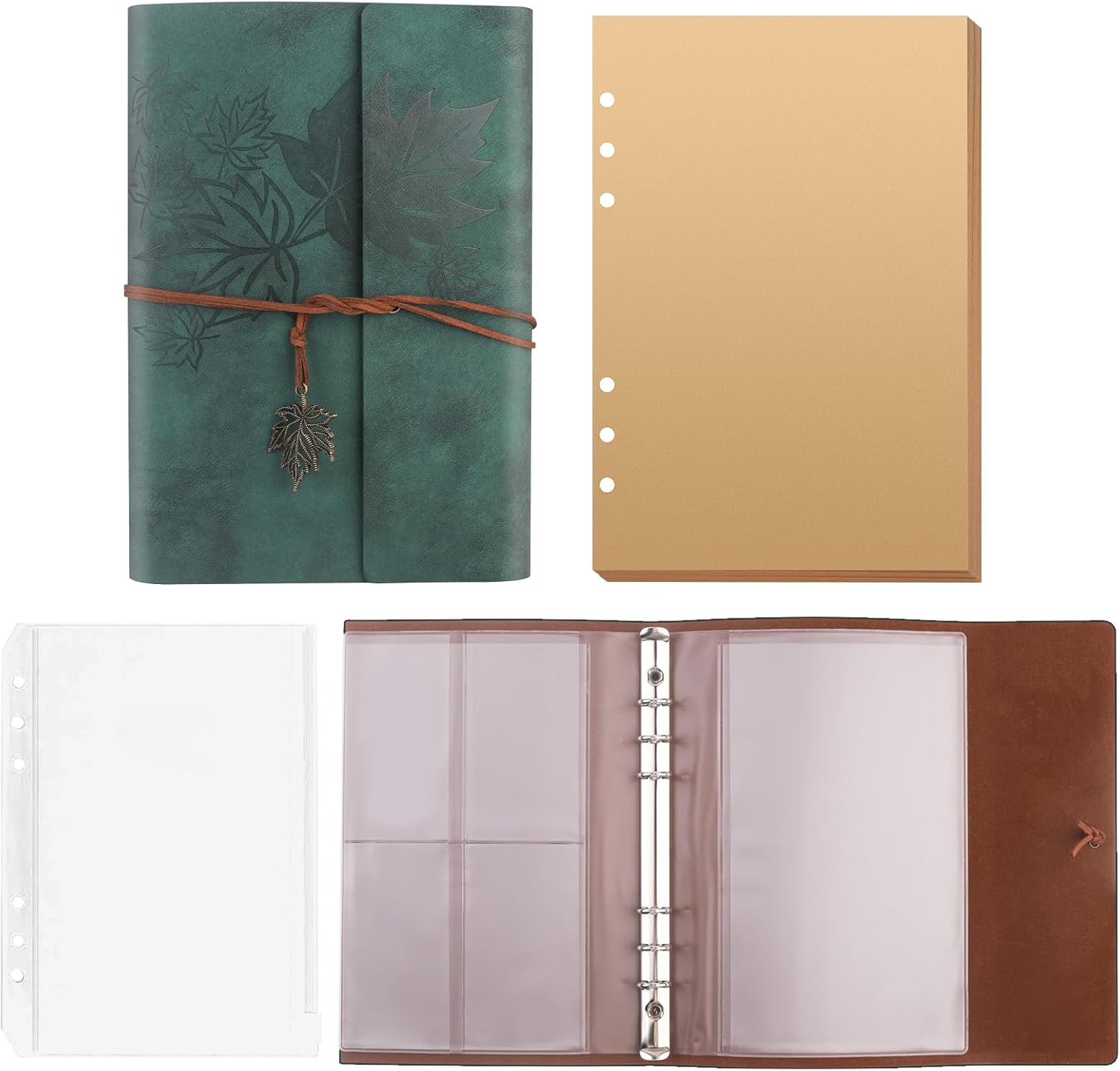 Custodia extra: il raccoglitore a 6 anelli A5 ha 2 tasche per documenti, una tasca interna trasparente per carte d'identità/carte di credito/biglietti e un raccoglitore in acciaio inossidabile a 6 anelli. Può essere utilizzato come libretto di carte, custodia per cellulare, portafoglio per tenere documenti, fatture, passaporti, carte d'identità, carte bancarie, biglietti, ecc. Diario vintage di alta qualità ordinato e organizzato: i nostri diari sono realizzati in pelle sintetica di alta qualità, comoda e resistente per viaggi, avventure all'aria aperta, attività all'aperto e college. La piccola lavagna integrata consente di aggiungere facilmente ulteriori pagine di pianificazione o calendario (prestare attenzione alle dimensioni e alla spaziatura al momento dell'acquisto della lavagna). Spessa e resistente all'inchiostro: la carta ricaricabile A5 (80 fogli/160 pagine) è realizzata con carta spessa 100 g/m². Adatto per penne stilografiche, penne gel, penne a sfera, evidenziatori, matite, matite colorate e altro ancora. La carta bianca, che non ha linee che distraggono dal tuo disegno, ti consente di descrivere o disegnare facilmente ciò che desideri. Design portatile e ampia gamma di usi: questo taccuino in pelle può contenere carta standard A5 ed è della dimensione ideale per borse, zaini e borse per libri. È ideale per i quaderni da viaggio e può essere utilizzato come quaderno, libro dei ricordi, libro da disegno, album da disegno, quaderno da viaggio, diario, album fotografico, ecc. Un'ottima scelta regalo: questo popolare prodotto per uso quotidiano combina il classico stile vintage e la pratica versatilità. È un fantastico regalo di Natale, San Valentino, anniversario, festa della mamma, compleanno per la famiglia, gli amanti e gli amici. Un regalo di laurea per adulti e studenti