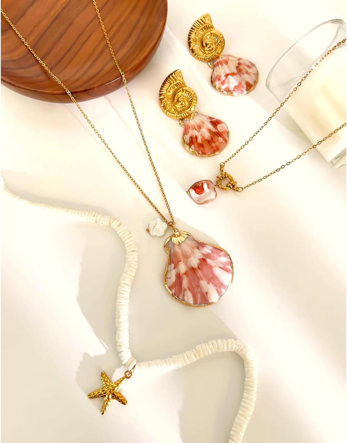 Set gioielli a tema spiaggia Set Collana e orecchini in acciaio inossidabile Combo Accessori in pietra corallo naturale Caratteristiche: Set gioielli ispirati alla con ciondoli naturali e collana orecchini in pietra corallo, realizzati in acciaio inossidabile per durata e un'esperienza usura leggera e allergia. Questa combinazione accessori per la spiaggia combina autentica accento marino con design contemporaneo, offrendo lunghezze collana regolabili e supporti per orecchini sicuri per comfort per tutto giorno. Perfetto per appassionati costiera e amanti della che cercano gioielli estati eleganti che completano abiti casuali e l'abbigliamento del resort. Ideale per le vacanze sul mare, le estati o l'aggiunta fascino marino a abiti quotidiani come prendisole e camicie lino. La miscela armoniosa trame biologiche e finiture metalliche crea gioielli versatili che passano senza sforzo dalle avventure diurne alle riunioni Specifiche Materiali: acciaio inossidabile, conchiglie naturali, pietra corallo naturale Tipo: orecchini a guscio conchiglia/corano stelle stelle pietra crale/collana guscio irregolare/collana capesante lunghe (opzionale) Orecchini conchiglie conchiglia Dimensione: 32,5x32 mm/1.28x1.26 pollici Coral Stone Starfishes Necklace Dimensione: 37+5 cm/14,57+1,97 pollici NACCHLACA Irregolare SCHEDA SHCLE: 45 cm/17,72 pollici Dimensione della collana capesante lunghe: 51+5 cm/20,08+1,97 pollici pacchetto include: Orecchini a ciondolo con fiocchi marini marini da 1 pc Nota: 1. Assicurare errori 1-2 cm dovuti alla misurazione manuale, assicurati non essere preoccupato prima ordinare. 2. Adrire alle differenze tra diversi monitor, l'immagine potrebbe non riflettere colore effettivo sull'elemento.
