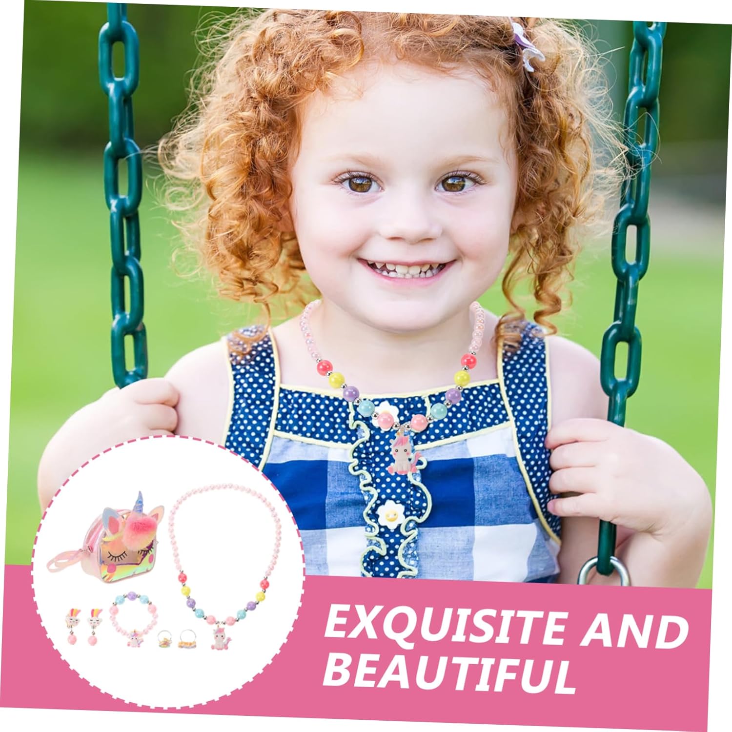 Set di gioielli per bambini: comodo e comodo da indossare, questo set di gioielli per bambini non danneggerà la pelle sensibile dei bambini, gioielli per bambini. Gioielli da gioco per bambini: il nostro set di gioielli chic e unico è progettato con cura per le tue bambine per renderle più alla moda e attraenti. Gioielli alla moda per bambini Gioielli da vestire per i più piccoli: possono facilmente attirare l'attenzione di tutti, mostrare ai tuoi bambini il tuo fascino unico alle feste o in mezzo alla folla, gioielli per ragazze Collana di gioielli per ragazze: questo set di gioielli per bambini presenta bellissimi colori e lucentezza duratura, che li fanno brillare tutto il giorno. Gioielli per ragazze, catene da gioco per bambini: questo bellissimo ed elegante set di gioielli è meraviglioso per le vostre bambine o altri bambini, braccialetto per ragazze