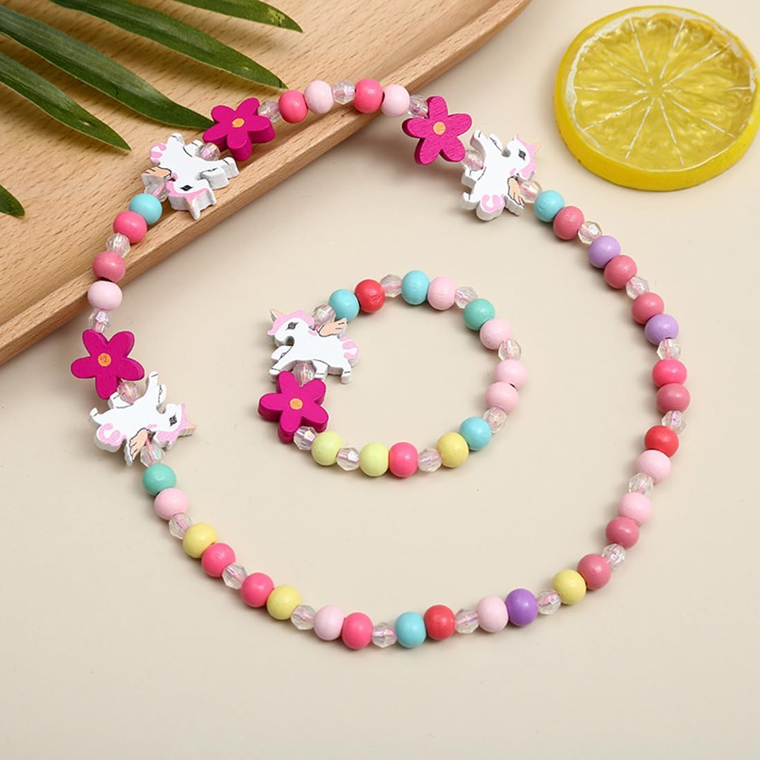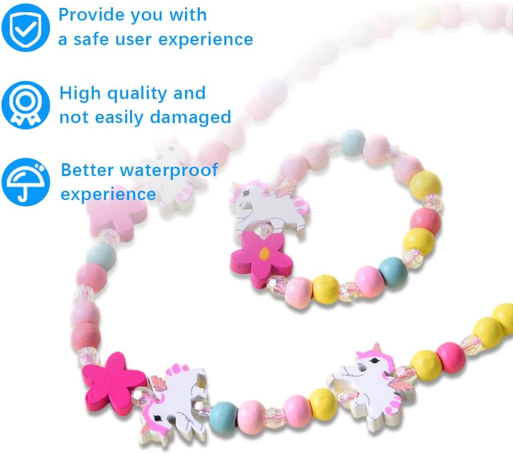 🦄MATERIALE: realizzato con perline e legno di alta qualità, comodo e sicuro. 🦄Ogni set include 1 collana e 1 braccialetto coordinato. 🦄La taglia si adatta al polso della maggior parte delle persone. Inoltre, non è facile da rompere ed è facile da indossare e da togliere, comodo da indossare e da togliere. 🦄Il design arcobaleno dell'unicorno è colorato e affascinante e si abbina a diversi abiti. 🦄I braccialetti colorati possono essere utilizzati in diverse occasioni e sono perfetti come regalo per i bambini. Può anche essere usato come casa, strada, spiaggia estiva, look da indossare tutti i giorni e altro ancora.