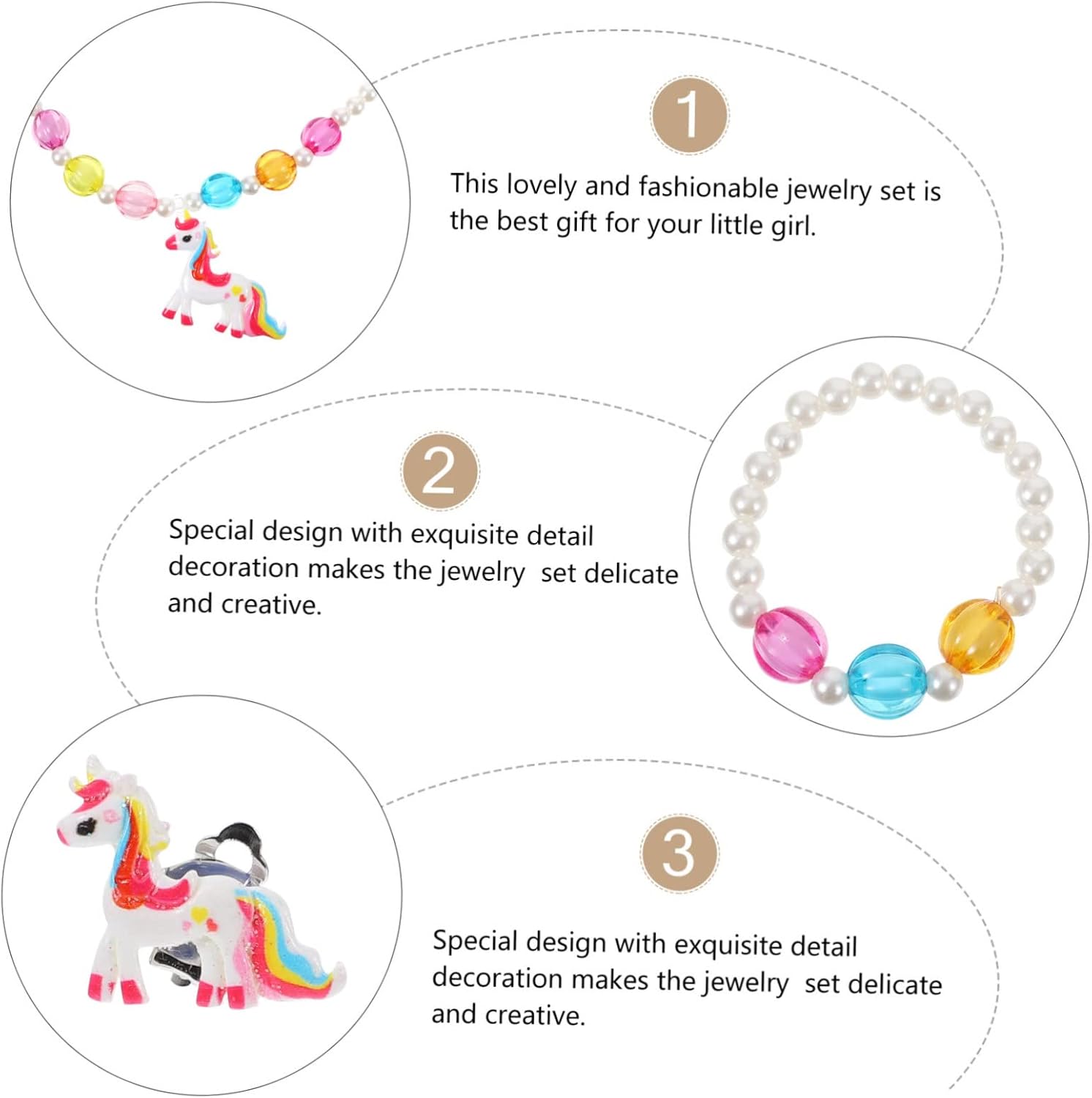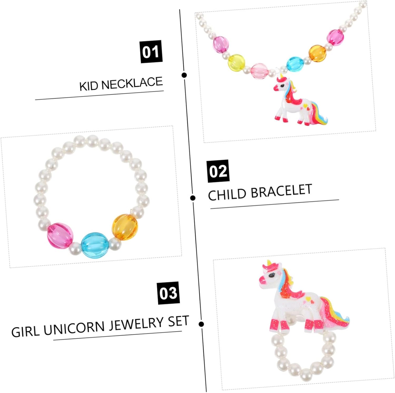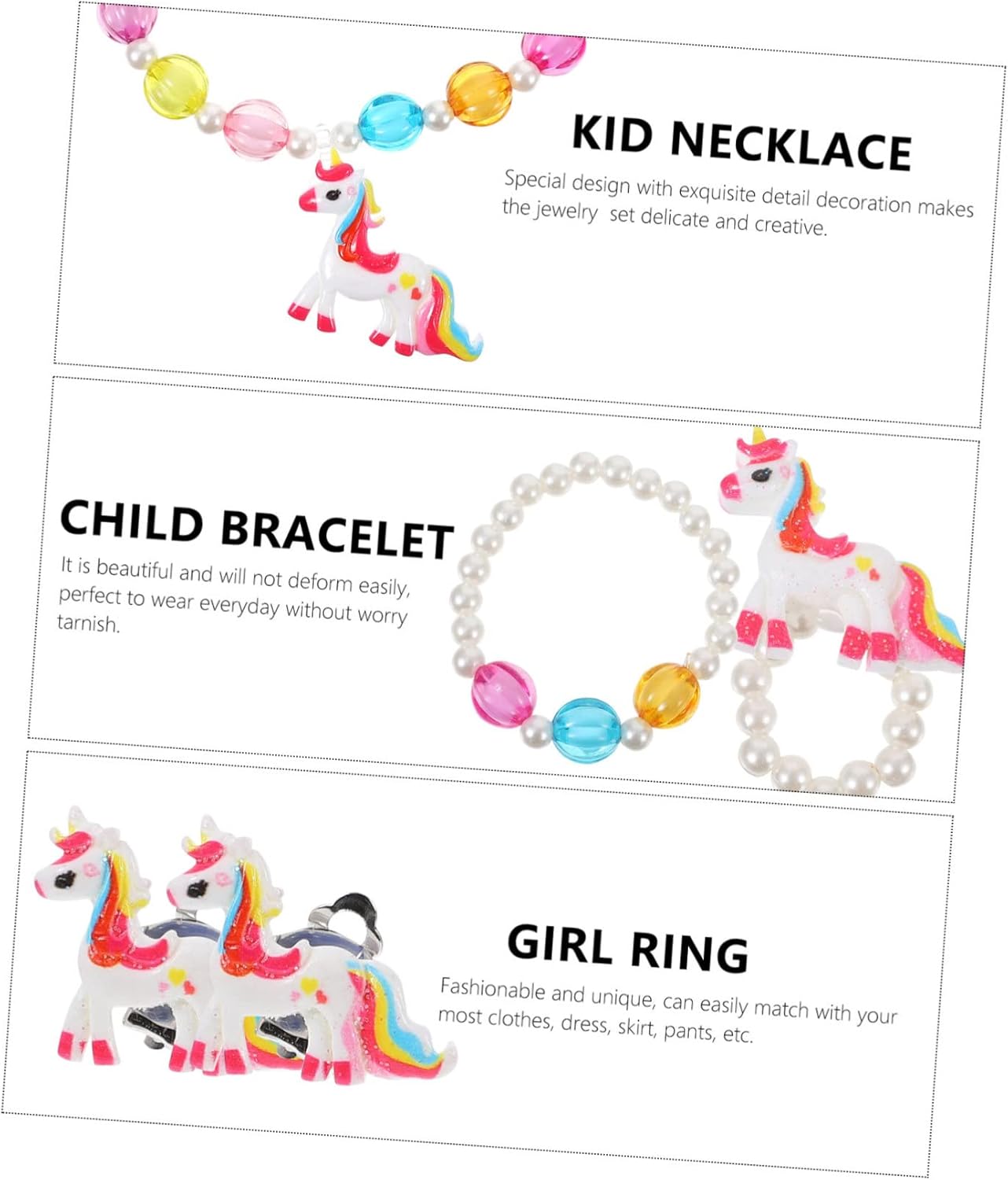 dei pacchetti 1 x collana 1 paio x orecchini 1 x braccialetto 1 Caratteristiche - Materiale: Collana in acrilico per bambine. - Adatto come premio scolastico, festa in maschera, accessorio per foto, costume quotidiano, spettacolo teatrale, festa a tema, ecc., gioiello per bambine. - È realizzato con materiali resistenti e durevoli, ideale per le collane delle bambine. - Il nostro set di gioielli chic e unico è perfetto per la tua bambina, rendi la sua collana più alla moda per bambina piccola. - I vivaci possono attirare l'attenzione di tutti, donando un fascino unico alla collana per bambine durante le feste. - Presenta un design elegante e una lavorazione raffinata, un gioiello per bambine molto carino e affascinante. Descrizione della merce Collane per bambine perfette per l'uso quotidiano o per feste e così via. Gioielli per bambine: rendi felici i tuoi piccoli e rendili più divertenti. Gioielli per bambine: il design leggero e compatto fa sentire i tuoi bambini a loro agio quando li indossano. Anelli per bambine: con vivaci e uno stile creativo per ragazze, abbinano alla maggior dei vestiti per bambini e li rendono più adorabili.