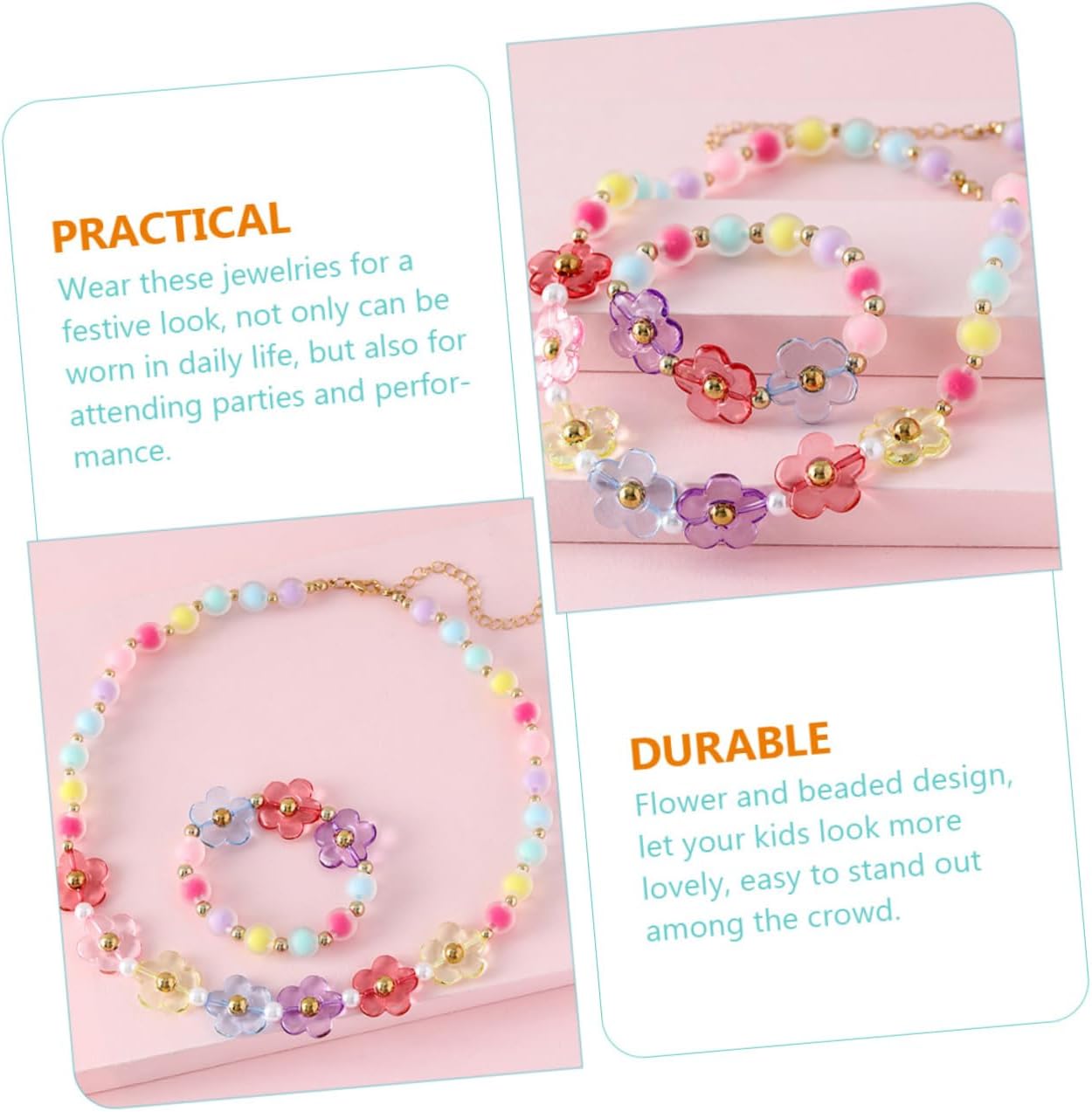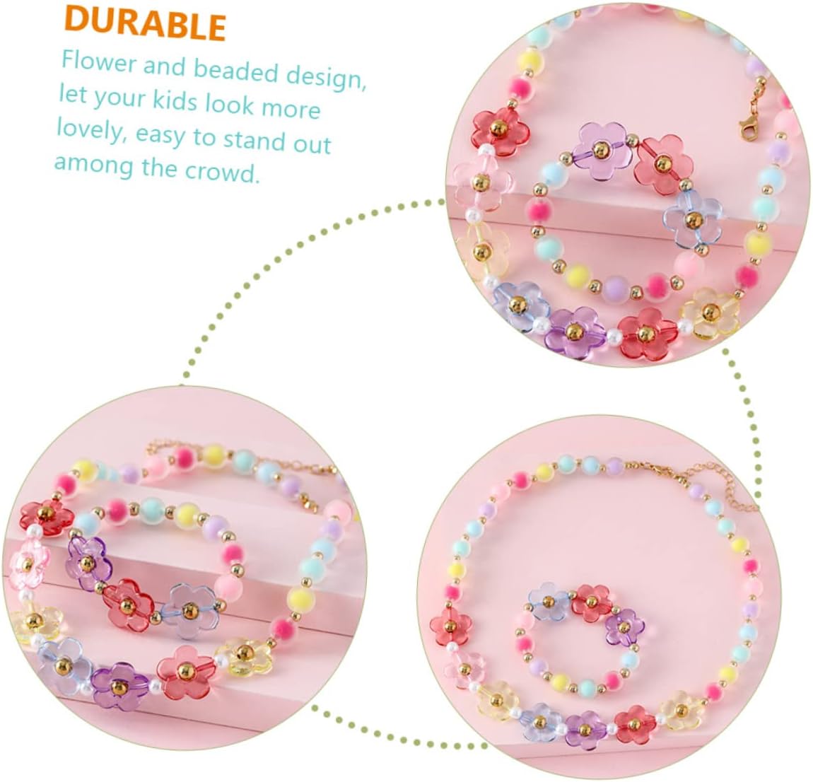 Il pacchetto include 1 x braccialetto 1 x collana Caratteristiche - Colore: Braccialetto con fiori per bambine in colori assortiti. - Materiale: Braccialetto per bambine in acrilico e perle. - Dimensioni: braccialetto per bambini 45,00X0,80X0,80cm/17,68X0,31X0,31 pollici. - Indossa questi gioielli per un look festoso, non solo possono essere indossati nella vita di tutti i giorni, ma anche per partecipare a feste e spettacoli di gioielli per ragazze. - Collana da bambina con design a fiori e perline, per far sembrare i tuoi bambini più adorabili e distinguersi facilmente tra la . - Sono graziose, leggere e compatte, facili da indossare e da togliere collane per bambini. - Con colori delicati, mostra appieno la tenerezza dei tuoi bambini, la collana può essere regolata in base alle tue esigenze collana di perline per bambini. - Realizzati con perle e acrilico, i gioielli per ragazze sono sicuri, robusti e durano a lungo. Collana di fiori. Descrizione della merce gioielli per ragazze Questi articoli sono collane e braccialetti decorativi per ragazze, realizzati in acrilico e perle con lavorazione dettagliata. Braccialetto per bambini Colore delicato, può sicuramente rendere i tuoi bambini più adorabili. Collana di fiori Design con fiori e perline, sono accessori decorativi quando esibiscono a feste e balli