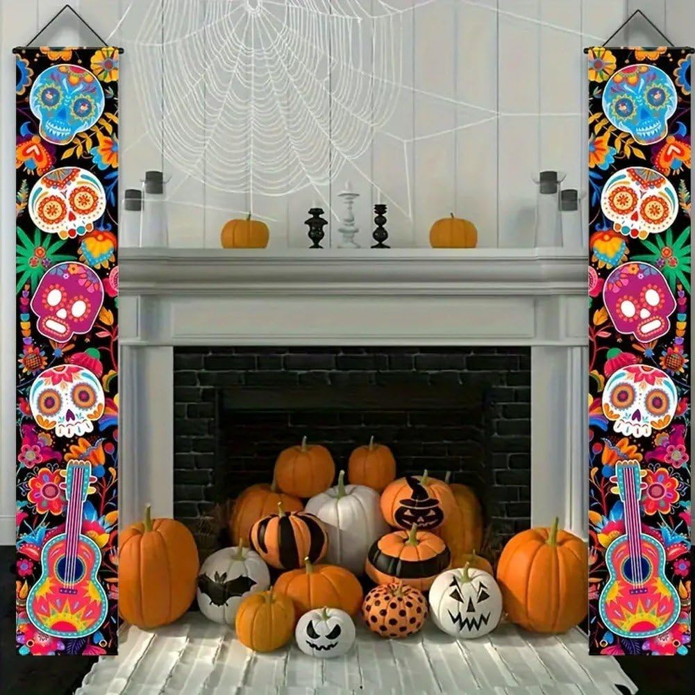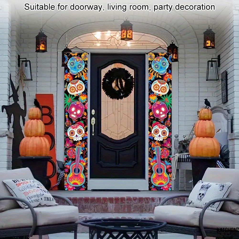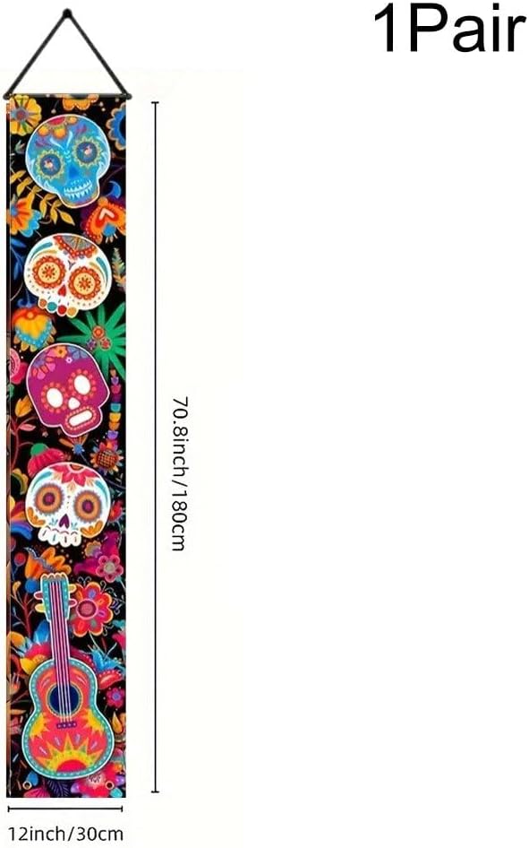 Per feste, cerimonie o decorazione della porta d'ingresso, garantisce una lunga durata. Perfetto per la decorazione interna o esterna per feste ed eventi del Giorno del Giorno, portici, ingressi, ecc. Che venga utilizzato come sfondo per un'aula interna o come sfondo per una festa all'aperto, questo striscione aggiunge fascino festivo e funge da regalo di laurea. Misurando 30 cm di larghezza e 180 cm di altezza, questo colorato striscione con stampa di teschio floreale e chitarra si adatta perfettamente a vari ambienti come interni, pareti esterne, giardini e portici. Questo colorato striscione di laurea con stampa floreale e teschio di chitarra è realizzato in tessuto Oxford ed è resistente, lavabile e riutilizzabile. Questo banner Day of the Porch può essere appeso ovunque all'interno o all'esterno senza sforzo e senza complicati assemblaggi. Può essere ripiegato in modo compatto e riposto facilmente dopo la celebrazione.