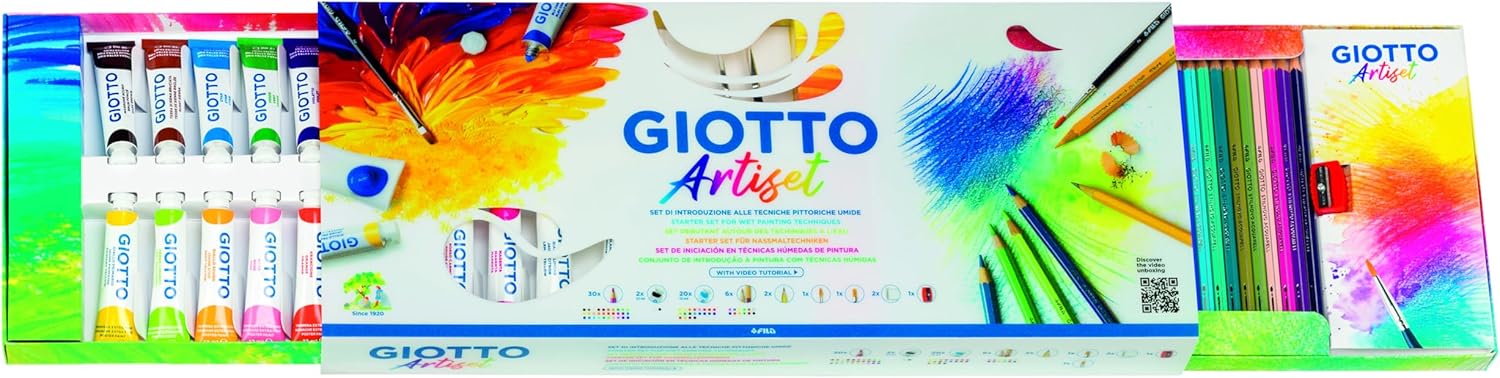 Kit super creativo per giocare con carte e colori Per realizzare cartoline 3D da colorare e assemblare e divertirsi con la guida creativa imparando l'arte del Quilling Contiene: 12 cera Giotto bicolor = 24 colori, 4 pastelli Giotto Nature colori neon (giallo neon, rosa neon, verde neon, arancione neon), 1 flacone di colla Giotto Collage 120 g, 1 paio di forbici, 20 fogli - Album di carta qualità Canson A4 in 4 colori neon assortiti: giallo neon, arancio neon, verde neon, 1 guida creativa Design creativo
