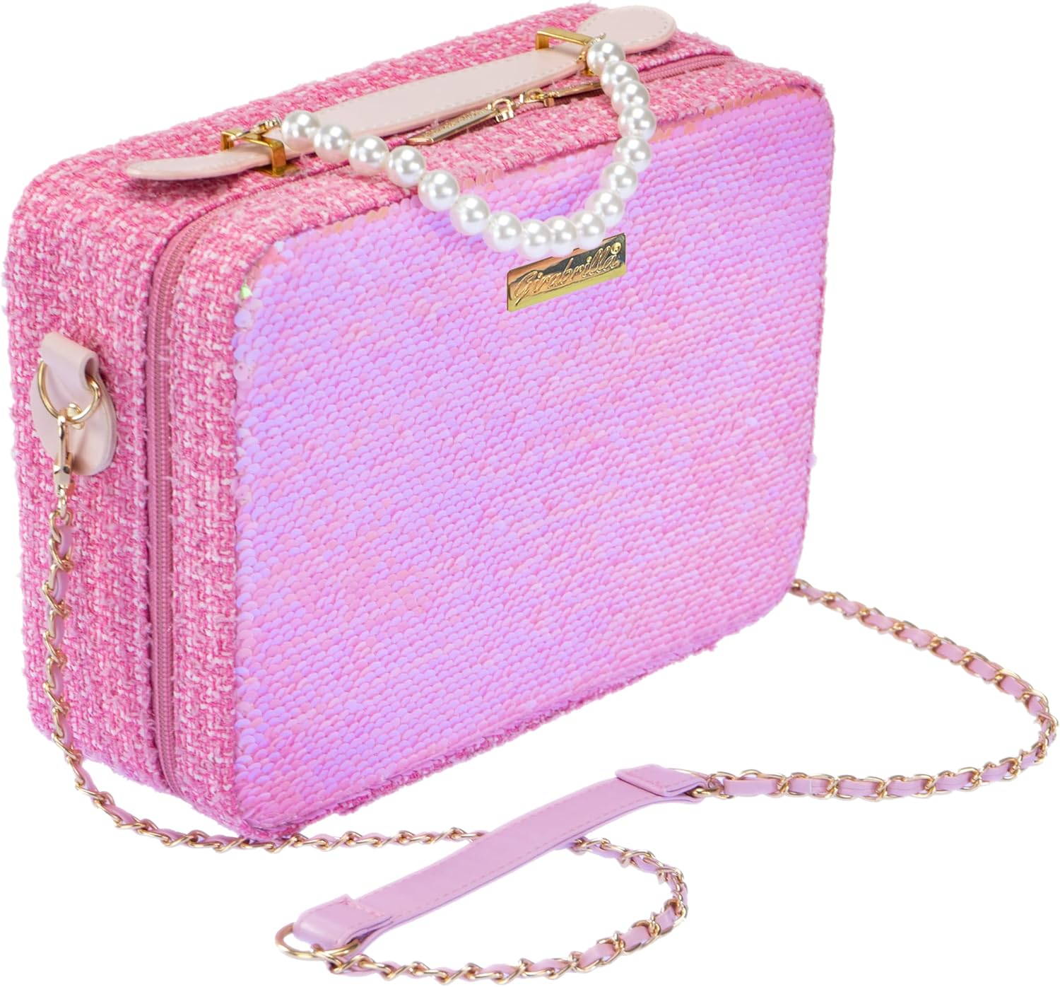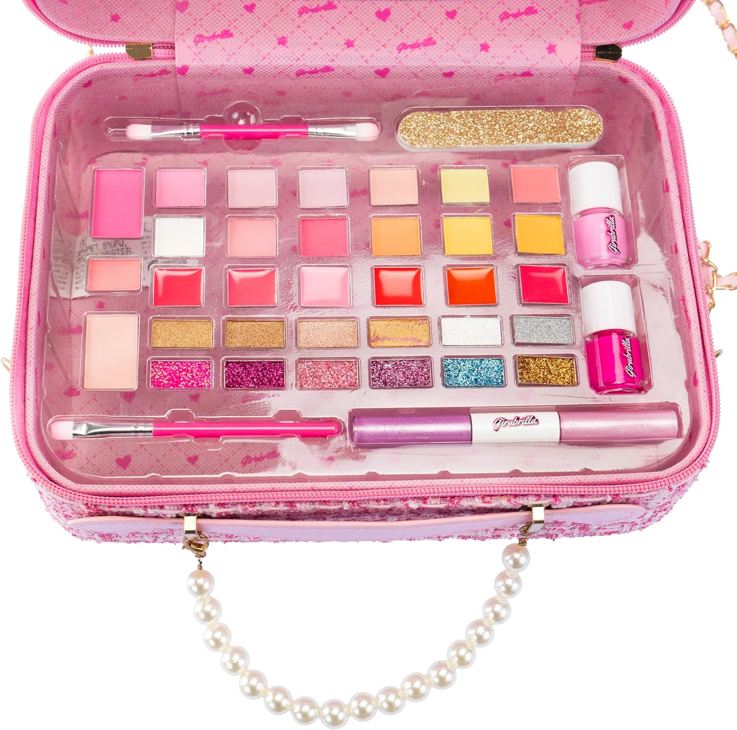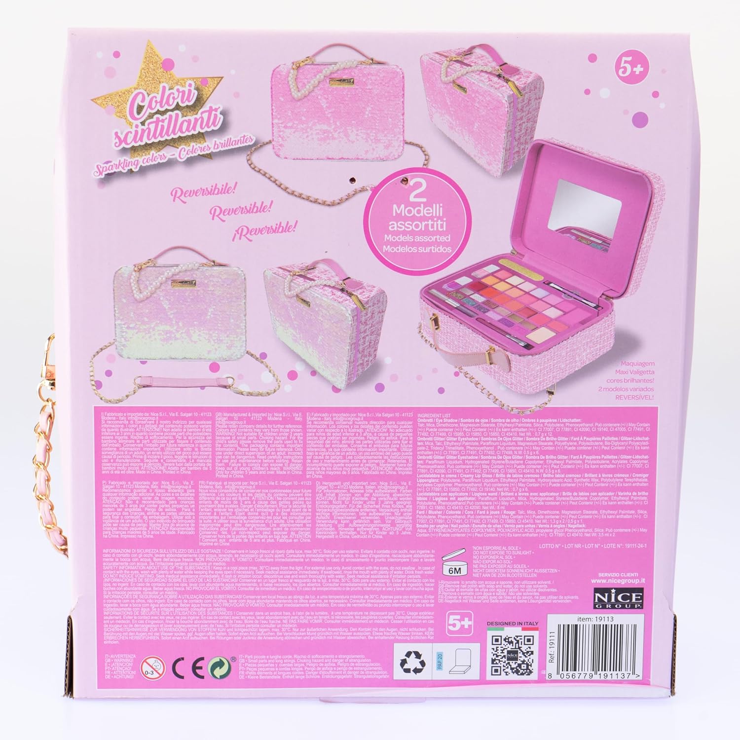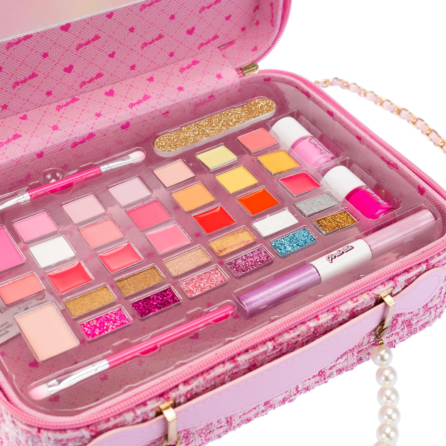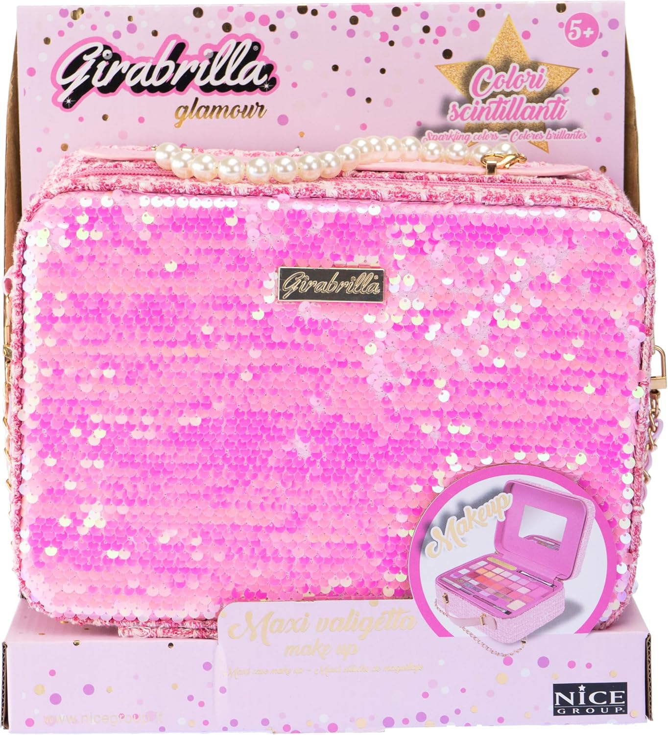 Descrizione prodotto GIRABRILLA TWEED MAXI CASE è una maxi valigia rosa, decorata con paillettes reversibili e tweed, dotata di maniglia superiore e tracolla per un facile trasporto. L'esterno è rivestito in tessuto ed è dotato di cerniera per chiudere la trousse mentre l'interno è dotato di specchio. Utilizzo: La maxi borsa per il trucco aiuta a stimolare la destrezza, la coordinazione e la fantasia di ogni ragazzo e ragazza che vuole truccarsi e sentirsi come in una favola senza limitare la fantasia. Sicurezza: il kit per il trucco è realizzato con materiali testati, sicuri, privi di parabeni e non tossici, che possono essere facilmente rimossi dalla pelle con acqua e detergente delicato. Dimensioni (L x P x A): 26 x 19,4 x 9,30 cm. Prodotto originale Girabrilla. Contenuto: 1 maxi valigia rosa con 1 specchio, ombretto, lucidalabbra, smalto, lima e applicatori. Età consigliata: 5 anni Avviso di sicurezza Non adatto a bambini di età inferiore a 36 mesi