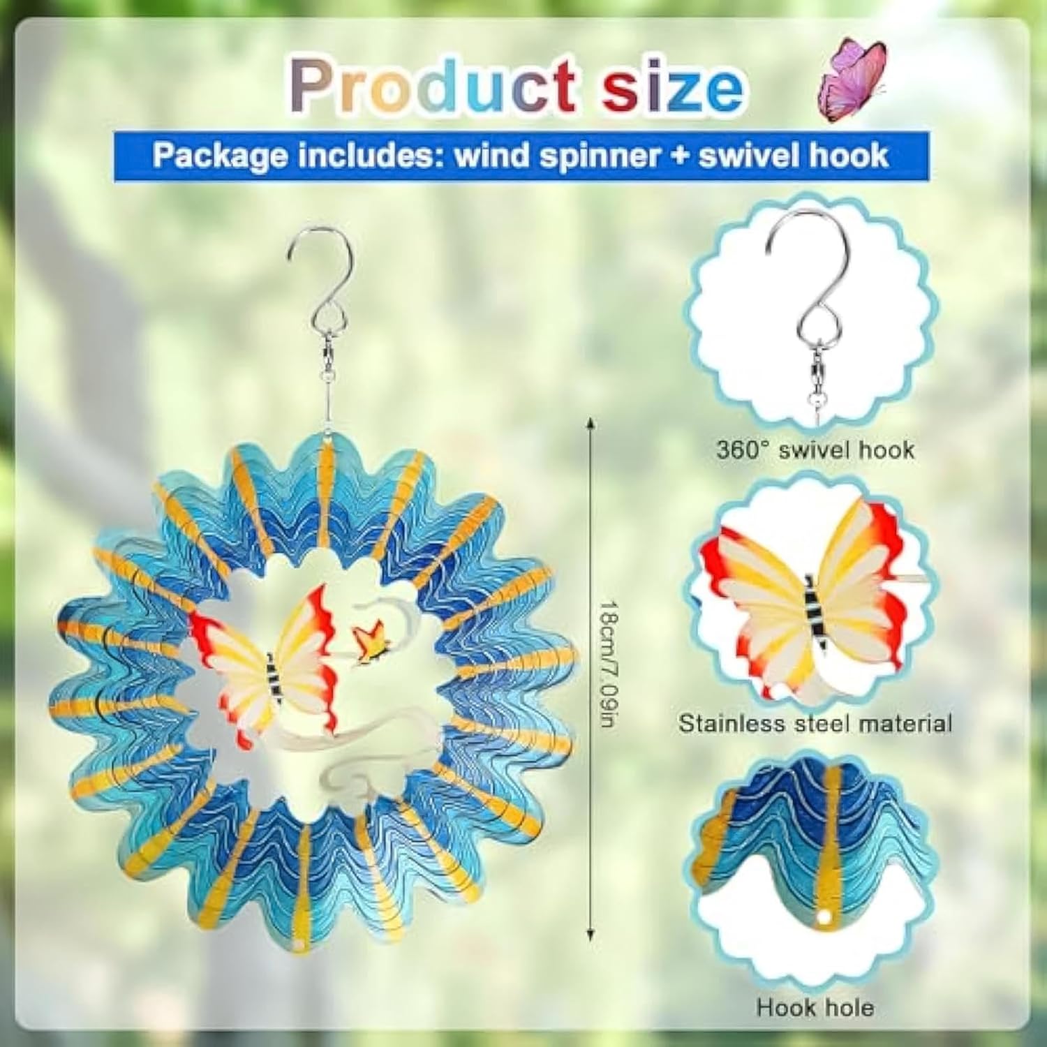 Effetto visivo 3D: Con grazia svolazzante nella brezza, questa girandola a vento a farfalla conferisce un'atmosfera rilassante al tuo spazio esterno. Il suo design rotante a 360 gradi crea uno splendido piacere visivo. Funzione decorativa: trasforma il tuo spazio abitativo con l'incantevole girandola a farfalla! Lascia che il suo affascinante design a farfalla riempia il tuo ambiente interno o esterno con un'atmosfera romantica e affascinante. Migliora l'arredamento della tua casa con grazia ed eleganza. Materiale resistente: realizzato con materiali di alta qualità, questo girandola a vento a farfalla è resistente alla deformazione e può resistere a un uso esterno prolungato, garantendo un fascino a lungo termine e usabilità nel tuo giardino. Facile da usare: fissare saldamente il nostro girandola a farfalla tenendo l'interno con la mano sinistra, mentre ruotando la parte anteriore con la mano destra per 60-90 gradi. Quindi, premi verso il basso con la mano sinistra e tieni lo spinner con la mano destra. Ampia gamma di applicazioni: migliora qualsiasi area, dagli accoglienti angoli della camera da letto agli ampi patii e giardini, con la straordinaria eleganza della girandola a vento.