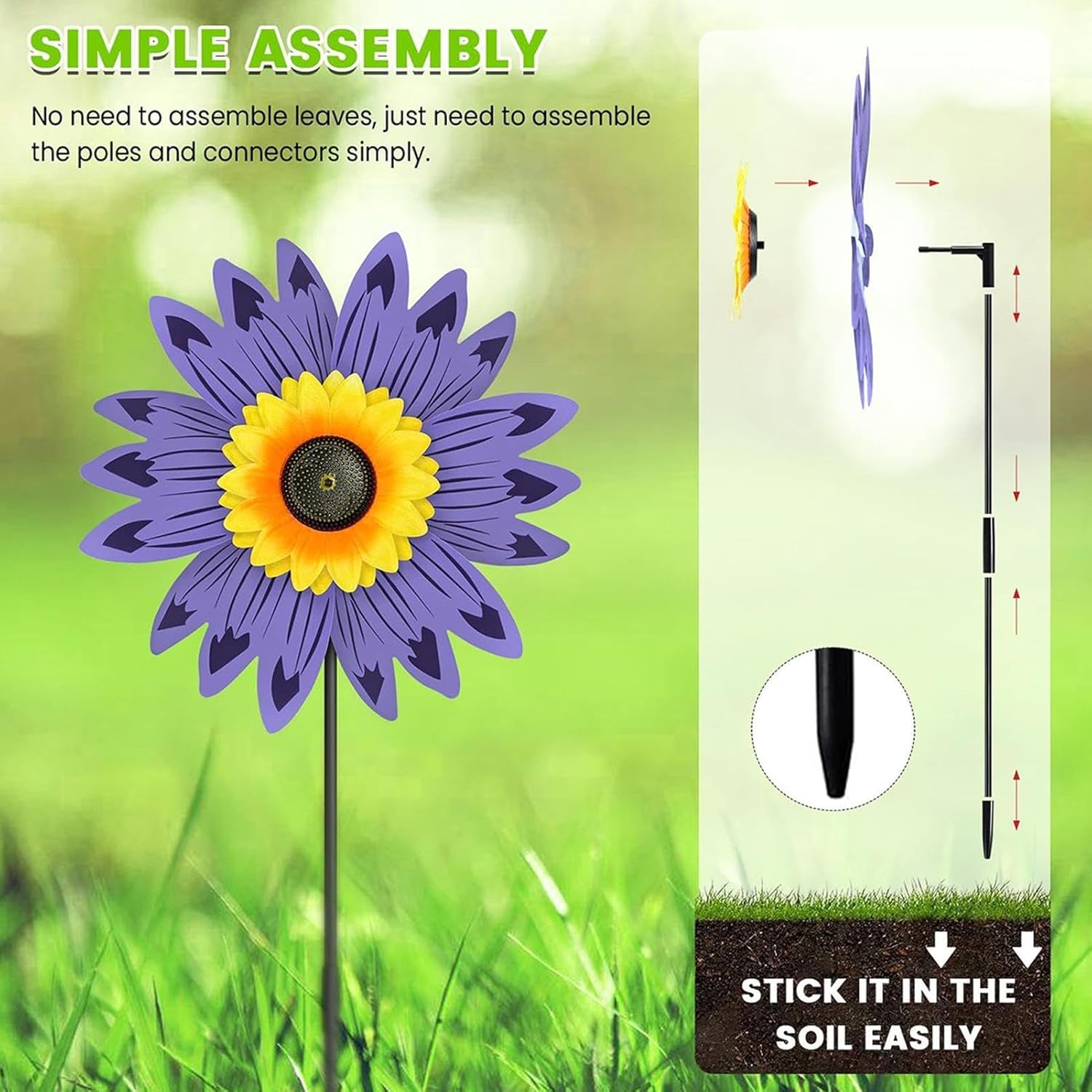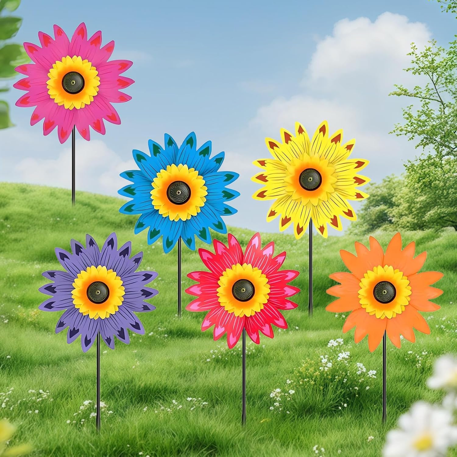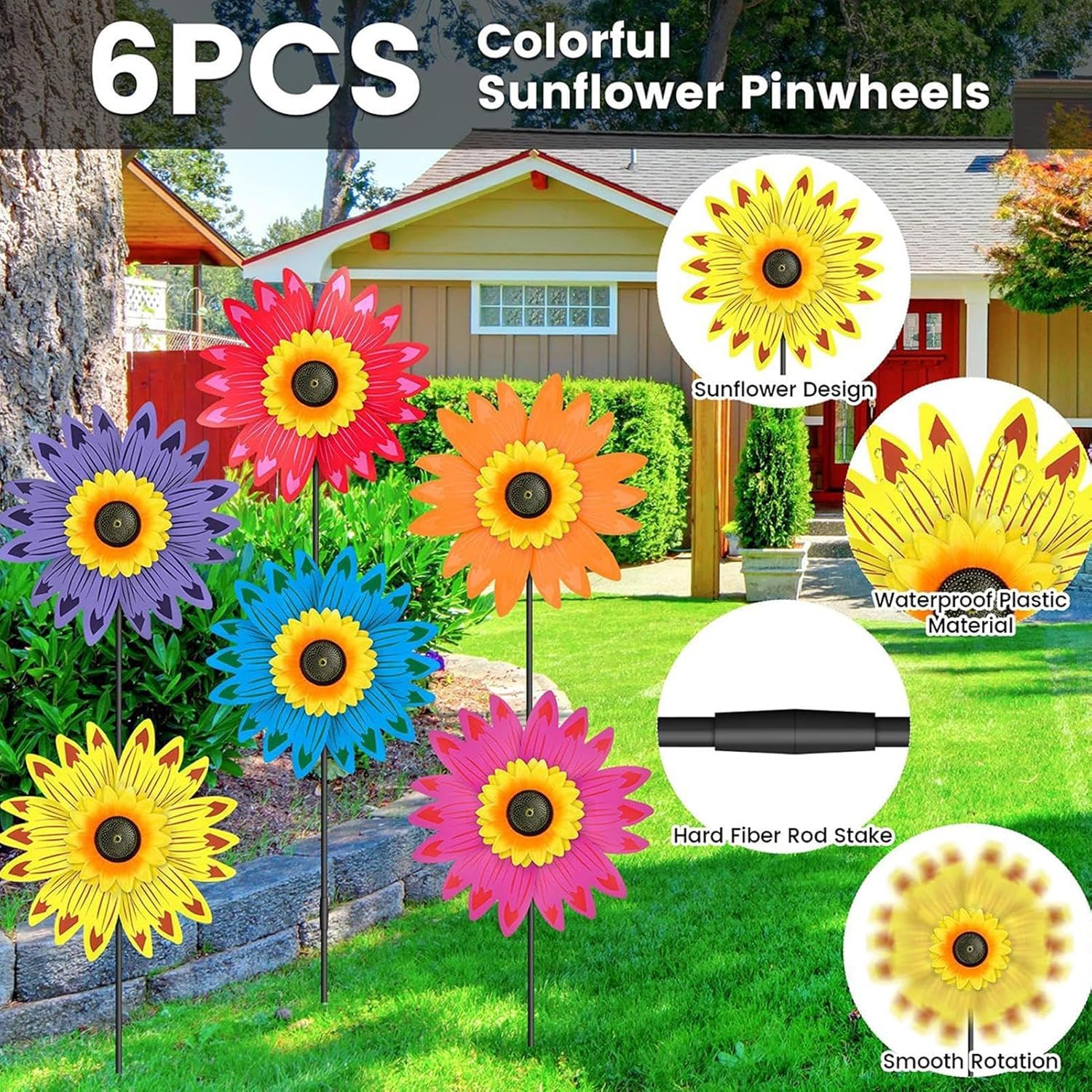Fascino decorativo: caratterizzato da una forma e dai colori ispirati al girasole, questo girandola a vento offre un effetto decorativo sorprendente, si fonde perfettamente in giardini o cortili come un punto focale alla moda e attraente Installazione rapida: la girandola a vento con girasole è progettata per; il prodotto richiede solo il fissaggio dell'albero del mulino al palo, garantendo una facile esperienza di installazione Leggero e portatile: dotato di due robusti pali in fibra di vetro, è progettato per una facile portabilità e facilità di tenuta, rendendolo una scelta pratica per qualsiasi luogo Ottimo materiale: il materiale resistente ed eccellente della girandola a vento assicura che rimanga impermeabile e robusto, promettendo prestazioni costanti e una durata impressionante all'aperto Uso versatile: perfetto per terrazza, prato all'aperto o cortile, questo girandola a vento aggiunge fascino a qualsiasi ambiente con il suo design versatile e il suo fascino naturale, migliorando il tuo spazio senza sforzo