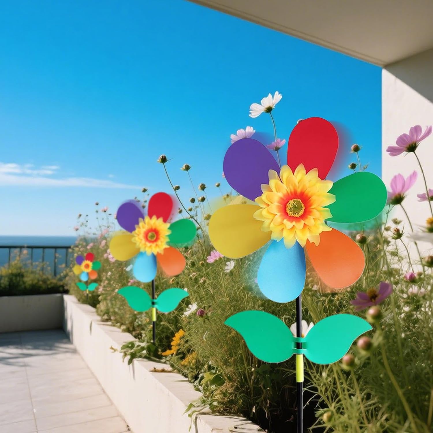 Centrotavola decorativo accattivante: la girandola a vento con girasole presenta colori vivaci e un design sorprendente, fungendo da centrotavola accattivante per giardini o decorazioni per la casa, mentre si fonde perfettamente in varie impostazioni con il suo fascino vivace Movimento di rotazione vivace: con rotazione fluida supportata dai cuscinetti, questo girandola crea un movimento ritmico coinvolgente, catturando efficacemente il vento da tutti i lati per un accattivante effetto dinamico a 360 gradi Materiali durevoli: realizzato in metallo di lunga durata, questo girandola a vento resistente alla ruggine prospera in varie condizioni atmosferiche, fornendo prestazioni durature senza sbiadire o danneggiare Miglioramento della profondità visiva: con petali arcobaleno sfumati che ruotano e cambiano i colori, creando contrasto e profondità, combinando bellezza naturale con abilità creative nel tuo spazio esterno Ampia gamma di usi: con un design semplice della base, questa girandola a vento si adatta a più superfici, migliorando giardini, ingressi o aree interne e si fondono perfettamente con estetica statica e dinamica
