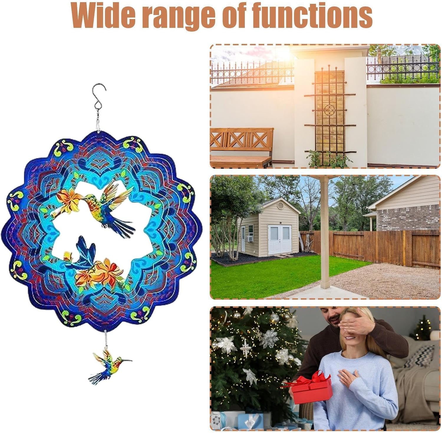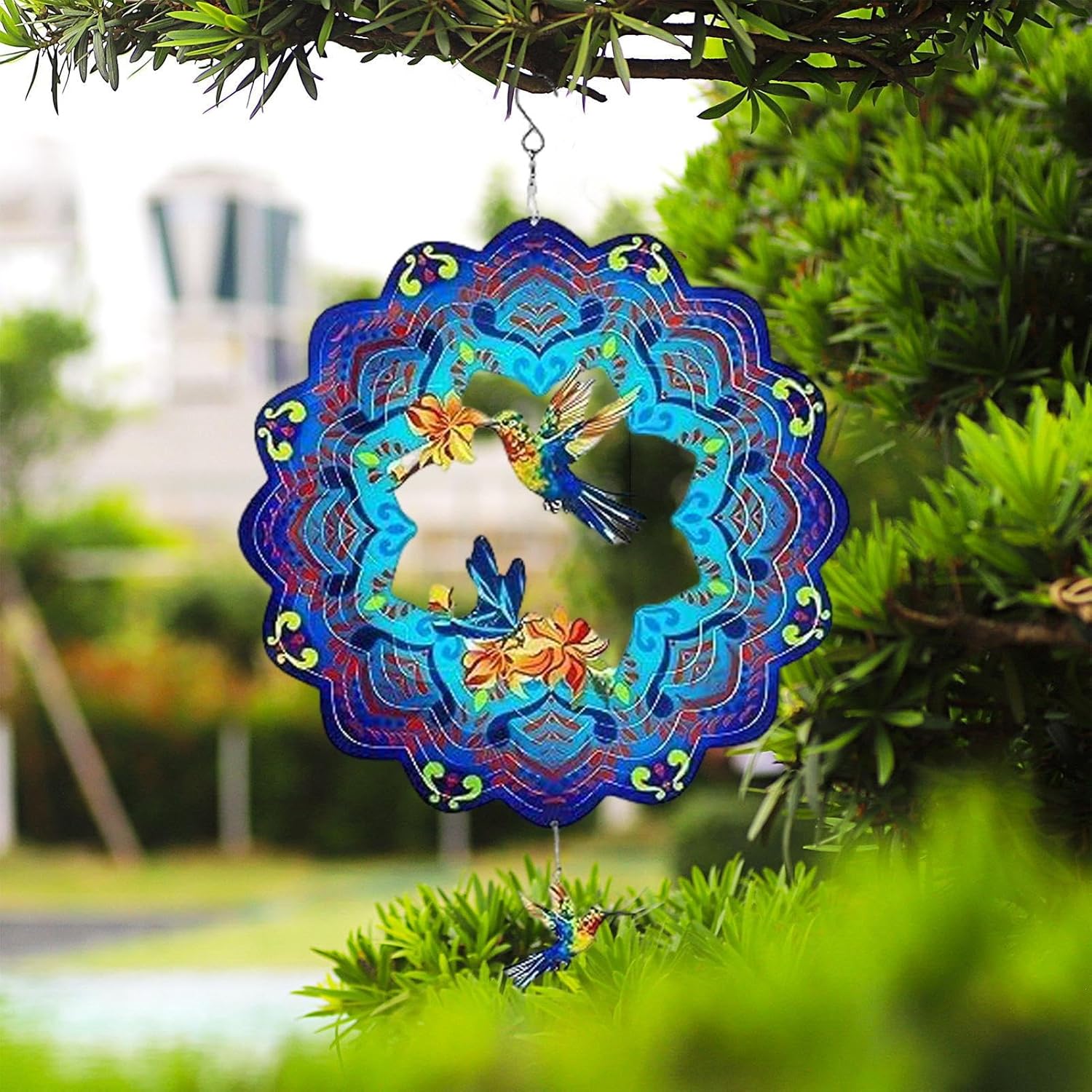Design affascinante: offre un movimento di rotazione senza interruzioni guidato da brezze delicate, amplificando il fascino estetico mentre la struttura a strati produce un sorprendente fascino visivo in qualsiasi ambiente Armonia artistica dei colori: porta un'atmosfera vibrante nel tuo cortile utilizzando ricche combinazioni di colori e finiture riflettenti, producendo un bagliore colorato radioso quando la luce interagisce con le superfici per un effetto accattivante Materiale eccellente: realizzate in metallo di alta qualità, queste girandole a vento sono resistenti alle intemperie, garantendo un uso a lungo termine senza sbiadire facilmente e mantenendo il loro fascino all'aperto Sospensione senza sforzo: l'inclusione di un gancio sulla parte superiore assicura che la sospensione di queste girandole a vento in metallo sia comoda e veloce, non richiedendo strumenti aggiuntivi e rendendo la decorazione esterna più accessibile che mai Ampie applicazioni: migliora il tuo balcone, veranda, patio, giardino, cortile o cortile con queste girandole, progettate per ampie applicazioni e fascino all'aperto