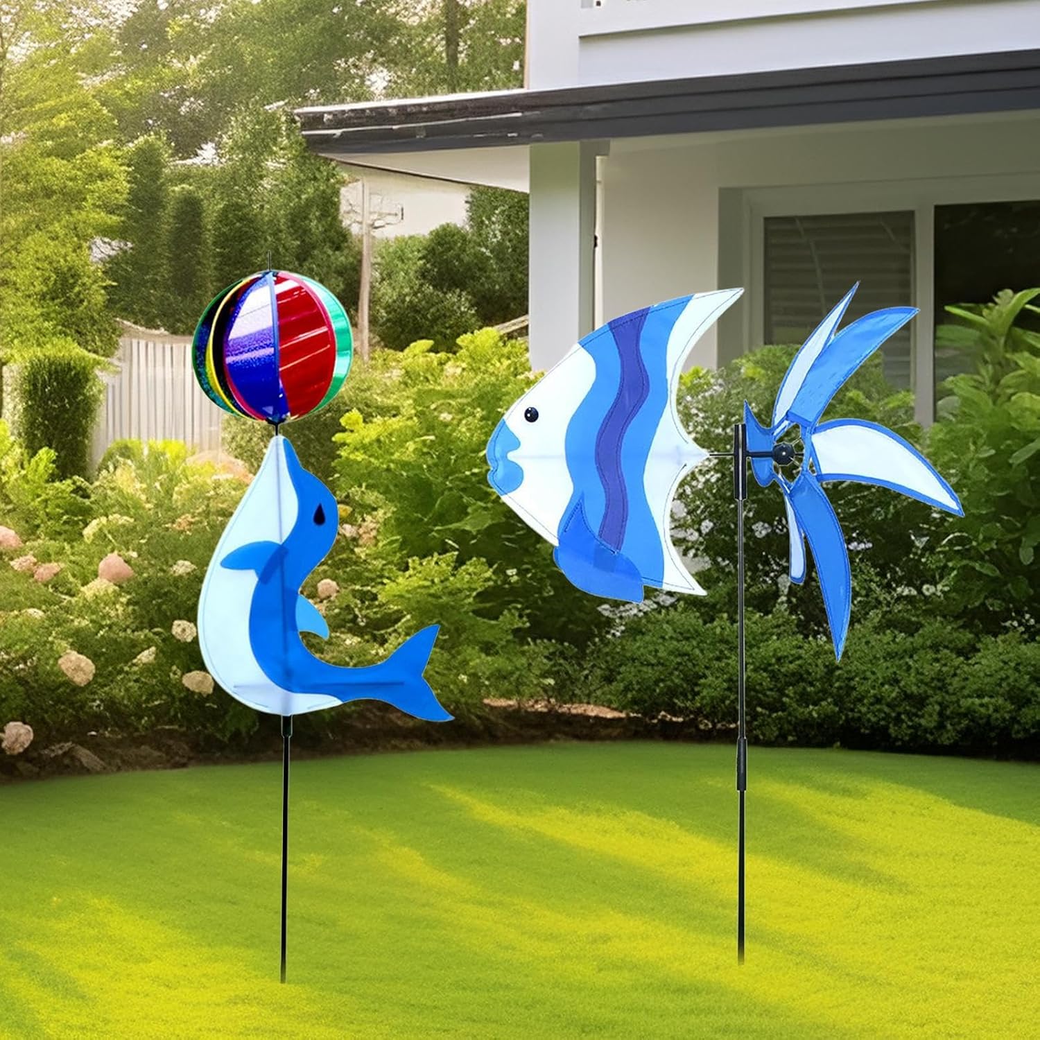 Gioco Rotante da Giardino: Questo mulino a rotante con un accattivante motivo di delfini crea un'atmosfera rilassante all'aperto, catturando l'attenzione dei bambini per ore di gioco immaginativo e divertente. Il design vivace del mulino a attira i giovani esploratori, rendendo il giardino un luogo magico per il divertimento e la scoperta creativa, per famiglie che cercano decorazioni funzionali e coinvolgenti. Decorazione da Giardino Resistente: Realizzato con materiali specifici per uso esterno, resiste efficacemente all'umidità e alla corrosione, garantendo un'eccellente resistenza alle intemperie e preservando il suo aspetto vivace nel senza sbiadire o deteriorarsi, per decorare il tuo giardino con un mulino a durevole e affidabile Regalo Creativo: Questo mulino da giardino è un modo ideale per esprimere calore e pensiero durante compleanni, feste, Natale o altre occasioni speciali. per mostrare affetto a familiari, amici e partner romantici, diventa un regalo memorabile che unisce bellezza e significato. Un'idea originale per rendere ogni momento speciale ancora più indimenticabile con un tocco di stile e cura Facile da Installare: Grazie al design del tappo a terra, questa girandola da giardino assicura un montaggio semplice inserendosi direttamente nel suolo o nei vasi, offrendo una vivacità istantanea mantenendo un processo di installazione intuitivo e rapido per soddisfare le esigenze di decorazione esterna Adatto a Ogni Occasione: Ideale per matrimoni compleanni e uso quotidiano questo mulino da giardino aggiunge fascino a qualsiasi spazio esterno inclusi corridoi e terrazze migliorando il paesaggio in modo naturale e raffinato diventando un elemento essenziale per decorare con semplicità
