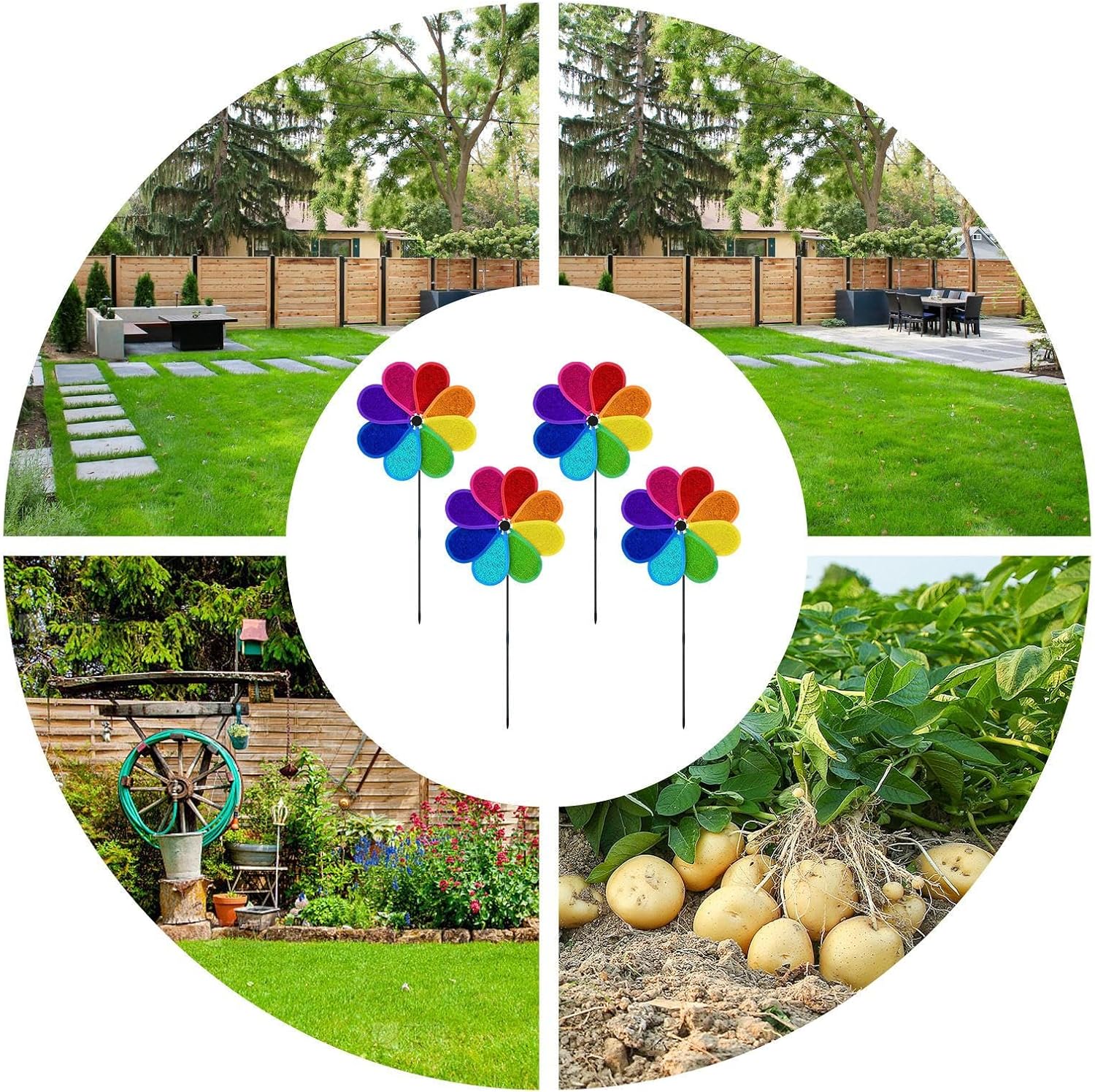 Adattabilità Multipla: Girandola eolica per esterni idonea per cortili, giardini, fattorie e prati, valorizzando vasi e balconi con utilizzo flessibile in molteplici ambienti Protezione Anti Uccelli: Tiene lontani gli uccelli da piante e coltivazioni grazie a punti luce altamente riflettenti che riflettono la luce, fornendo una protezione efficace senza effetti nocivi per l'ambiente esterno Posizionamento Pratico: Design leggero e portatile con installazione immediata e montaggio intuitivo, garantisce stabilità su qualsiasi superficie esterna senza fissaggi aggiuntivi per un divertimento continuo Elemento Decorativo: Queste girandole da esterno portano appeal estetico al tuo spazio verde mostrando un design vivace che esalta la bellezza 'area esterna attraverso movimento e colori dinamici Protezione dalle Intemperie: Progettato con materiale PVC resistente, assicura una struttura impermeabile affidabile che previene lo scolorimento e rimane intatta in varie condizioni atmosferiche