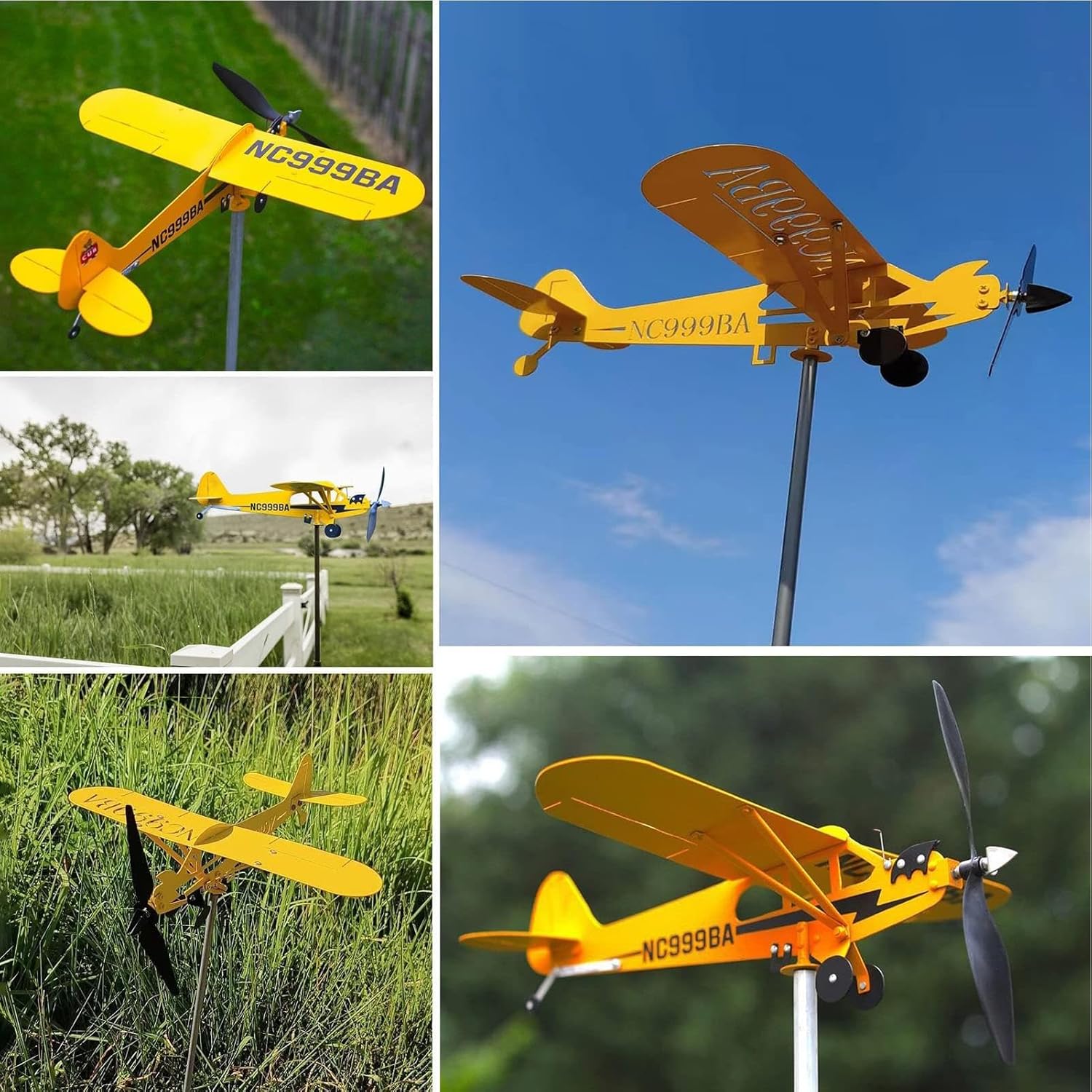 Iconica: L'aeroplano tridimensionale in metallo resistente cattura la luce e il da ogni angolazione, offrendo spettacolo visivo sempre diverso. La vernice anticorrosione mantiene intatti i dettagli del design per anni Manutenzione zero: La superficie trattata respinge polvere e sporco, richiedendo pulizia occasionale con panno umido per mantenere brillantezza senza necessità di trattamenti speciali Installazione Senza Sforzo: di fissaggio immediato senza attrezzi. Inserisci direttamente nel terreno per decorare giardini, cortili o aree esterne in pochi secondi. Ideale per aggiungere movimento e fascino con minimo impegno. Applicazioni Versatili: Questo girandola aereo trasforma giardini, terrazze, tetti, cortili e spazi esterni con un design dinamico. La struttura resistente si integra perfettamente in ogni ambiente, aggiungendo movimento armonioso e un tocco decorativo unico senza richiedere installazione complessa Stile Accattivante: Attira sguardi con forme aerodinamiche e riflessi luminosi. Regalo per appassionati di design d'esterni, facile da installare senza bisogno di attrezzi speciali, resistente a e pioggia