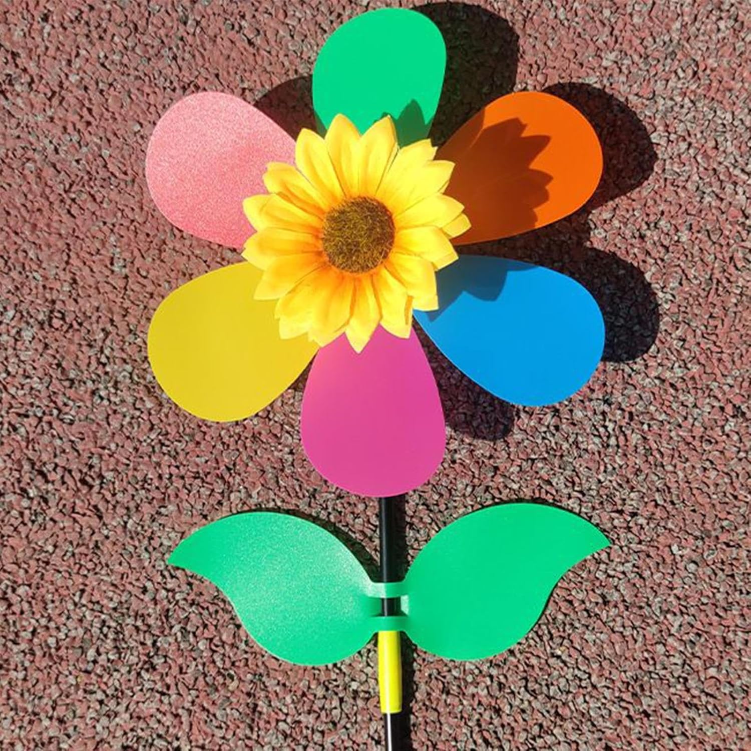 Design Cromatico Artistico: I vivaci colori su ogni petalo si fondono armoniosamente durante la rotazione, creando contrasti migliorati e unendo fascino realistico ad abilità decorativa per un effetto ipnotico Elemento Decorativo Accattivante: Giragirasole con colori vivaci e design elegante, crea un punto focale dinamico per giardini o interni, integrandosi armoniosamente in ogni ambiente grazie al suo fascino vibrante. Costruzione : Grazie al robusto telaio metallico, questa girandola resiste agli agenti atmosferici, non arrugginisce e preserva l'aspetto originale nonostante prolungata esposizione agli elementi Integrazione Armonica:Si fonde con qualsiasi ambiente grazie alla base universale. Ottimo accessorio decorativo per finestre, gazebo e zone pranzo all'aperto. Le pale in movimento generano giochi di e riflessi bilanciando stili contemporanei e classici. Movimento Naturale: I cuscinetti a sfera garantiscono una rotazione e continua, generando un movimento ritmico vivace mentre cattura il da tutte le direzioni in spettacolo dinamico a 360 gradi.
