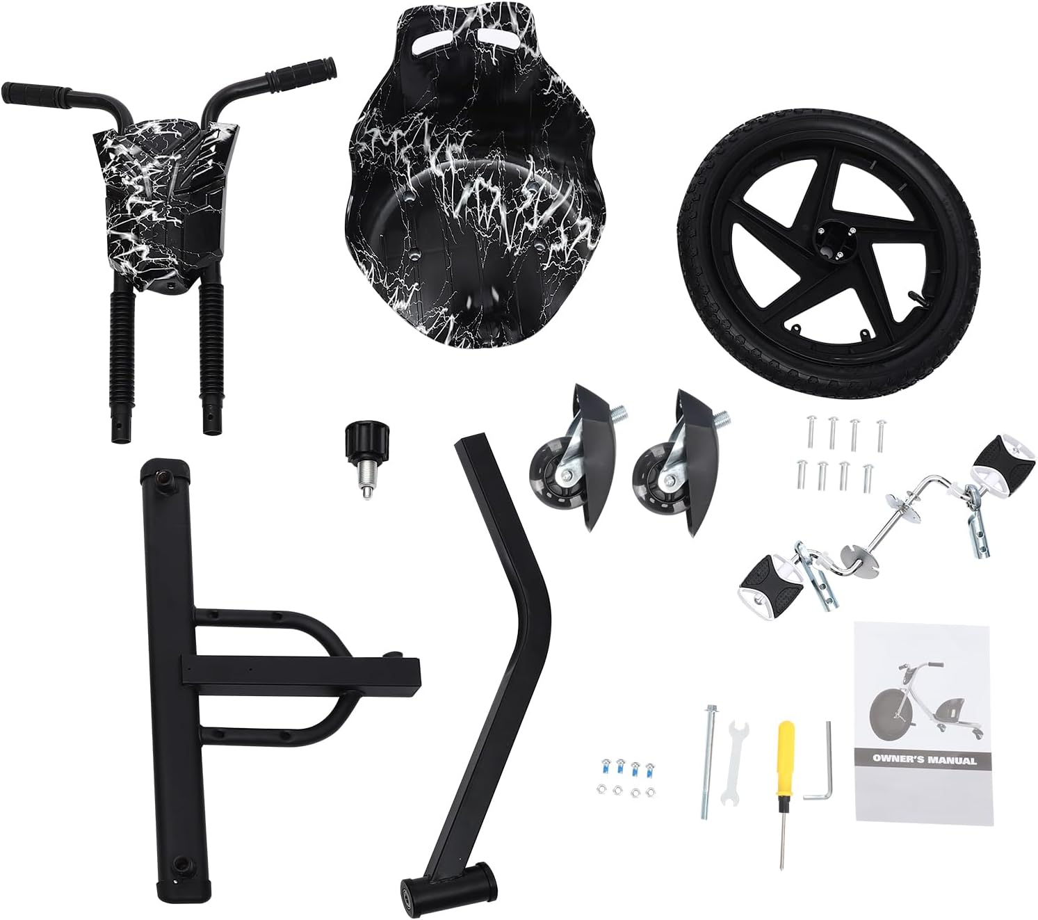 Buoni materiali: il prodotto è realizzato in ferro, polipropilene, gomma e nylon di alta qualità, che non rilascia sostanze nocive, non è facile da corrodere o rompere e può essere utilizzato in sicurezza per lungo tempo. Eccellente capacità di carico: il materiale robusto e la robusta struttura triangolare consentono al prodotto di sopportare un peso massimo di 80 kg/176,37 libbre, consentendo alla maggior parte dei bambini di utilizzarlo in tutta tranquillità. Flessibile ed emozionante: le ruote posteriori utilizzano due ruote universali, che possono formare una modalità di deriva più flessibile, in modo che i bambini possano provare più eccitazione. Gioco sano: il metodo di utilizzo dei pedali a propulsione umana non è solo più sicuro, ma consente anche ai bambini di esercitare i muscoli delle gambe, favorire la circolazione sanguigna e vivere un'esperienza di gioco più sana. Design regolabile: il prodotto ha 4 lunghezze regolabili, in modo che i bambini di diverse dimensioni possano vivere un'esperienza di gioco comoda e felice.